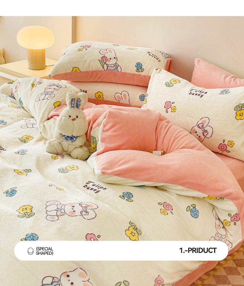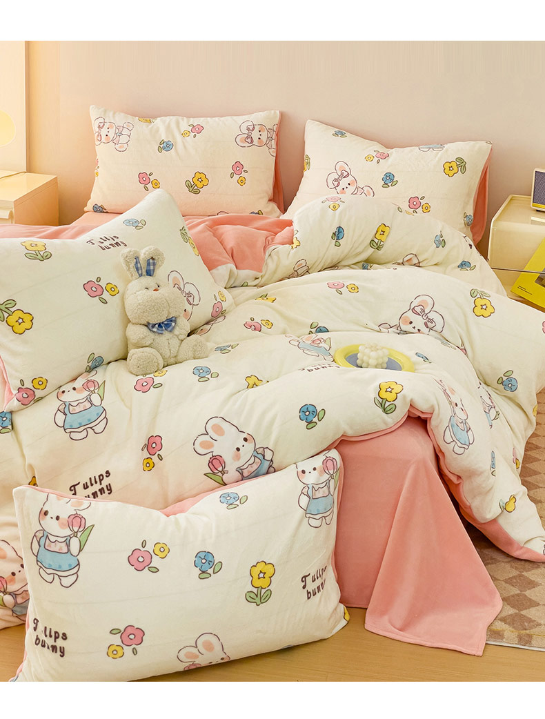 木堇 2023新款牛奶绒印花单被套 花朵兔兔