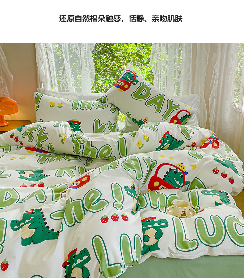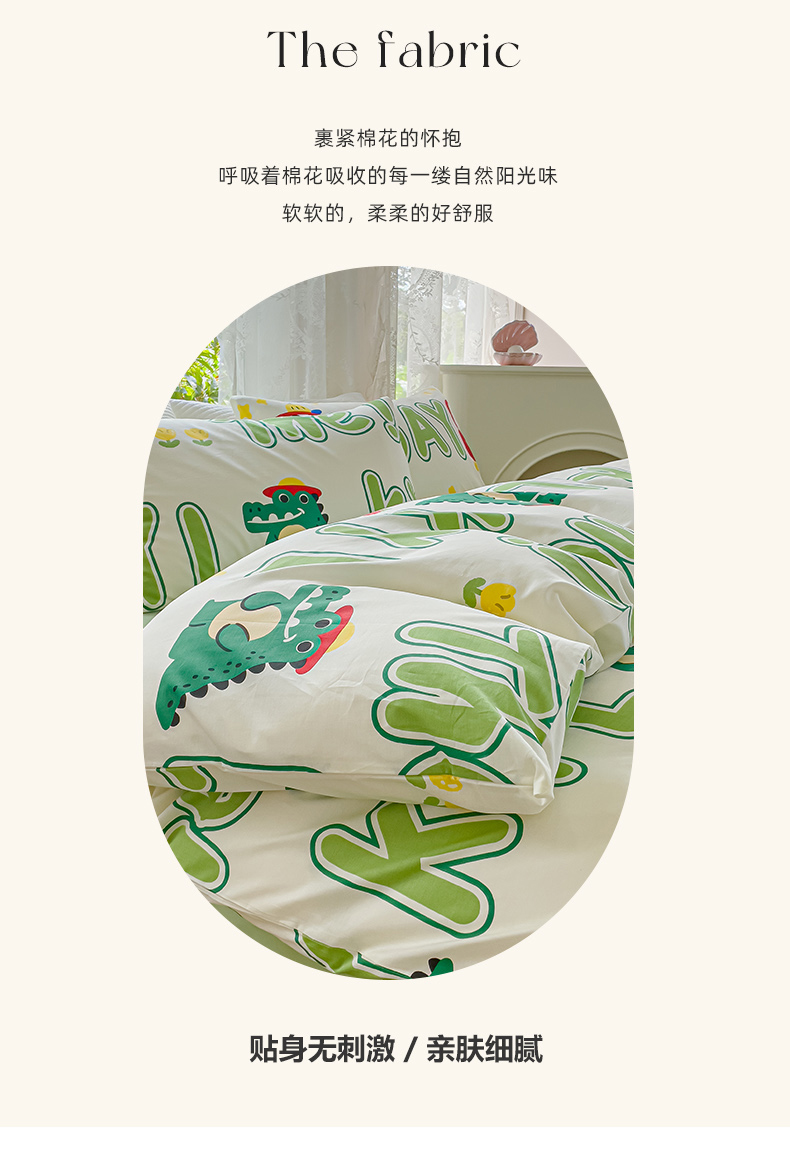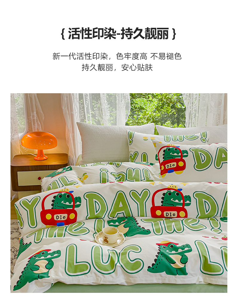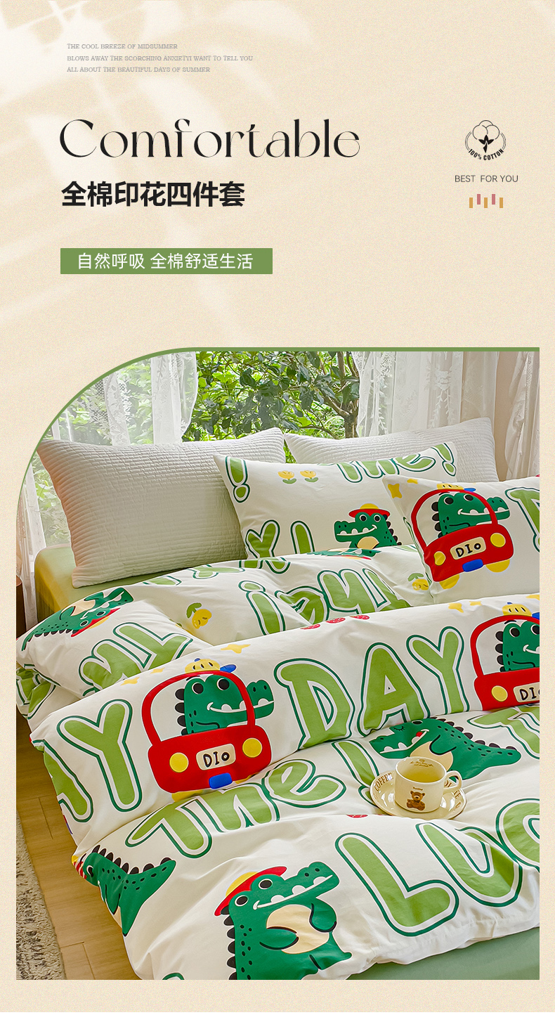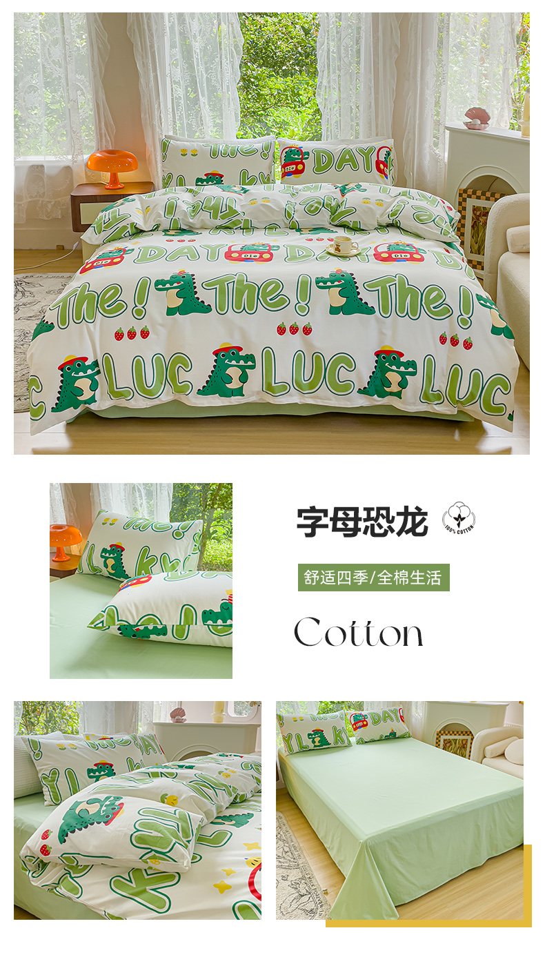 感遇家纺 2023新款全棉印花四件套 字母恐龙