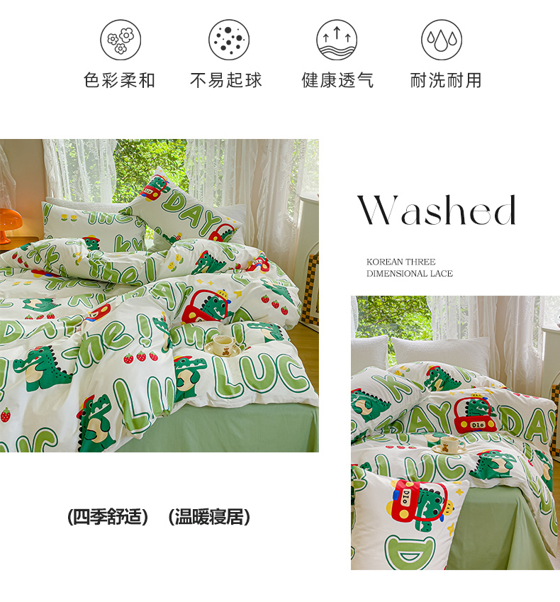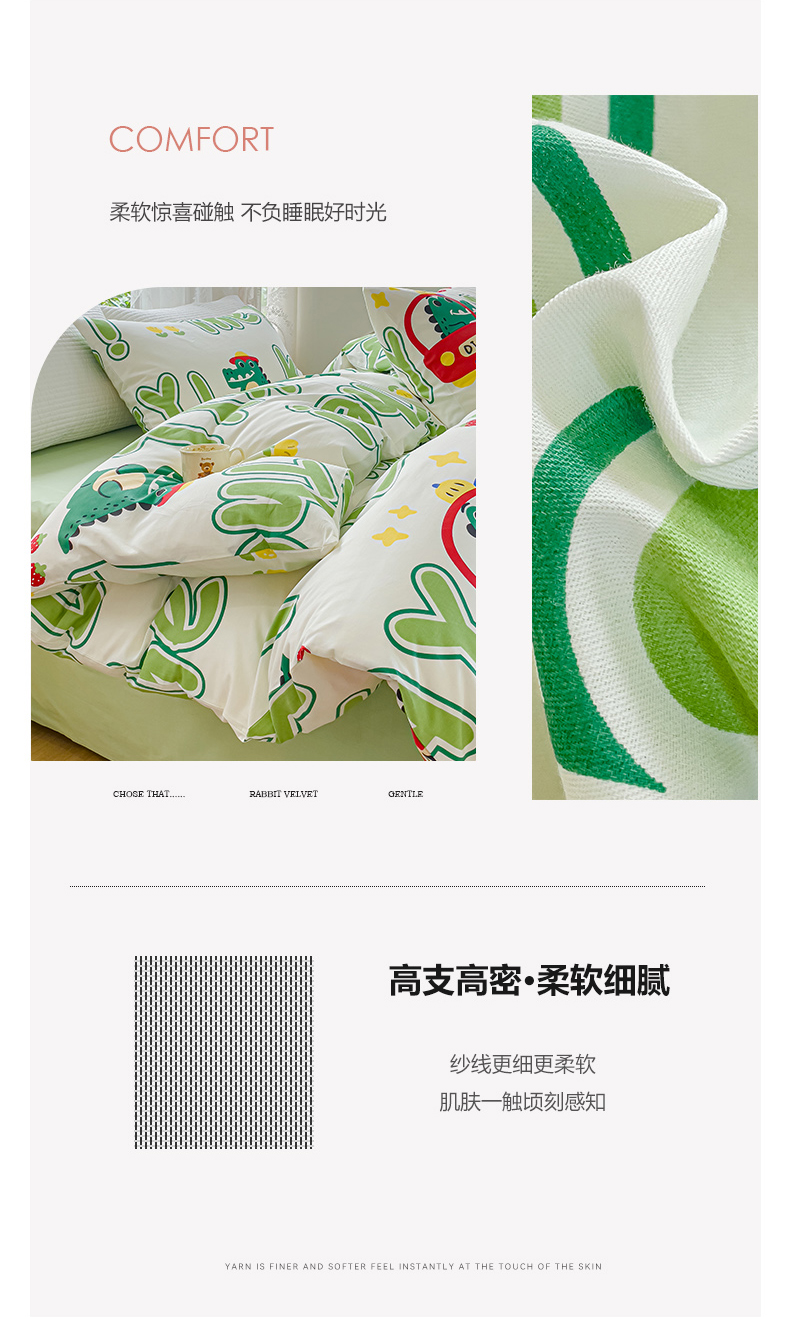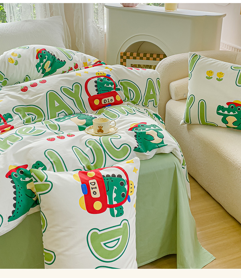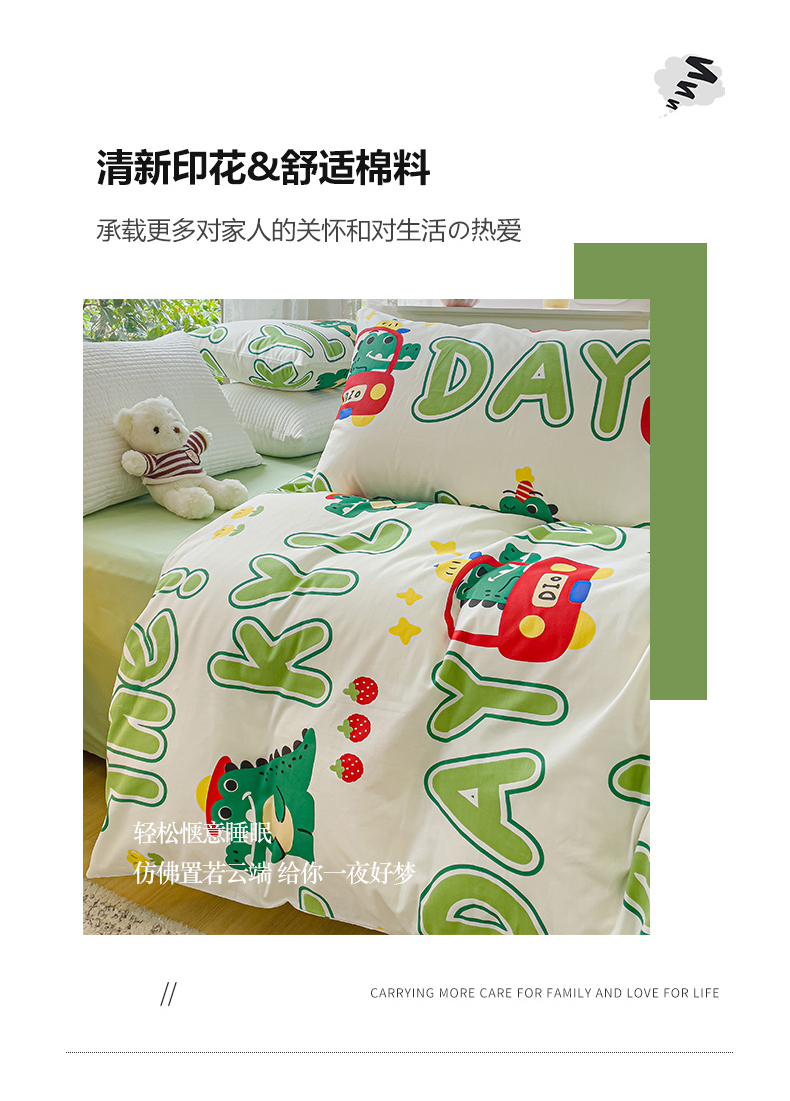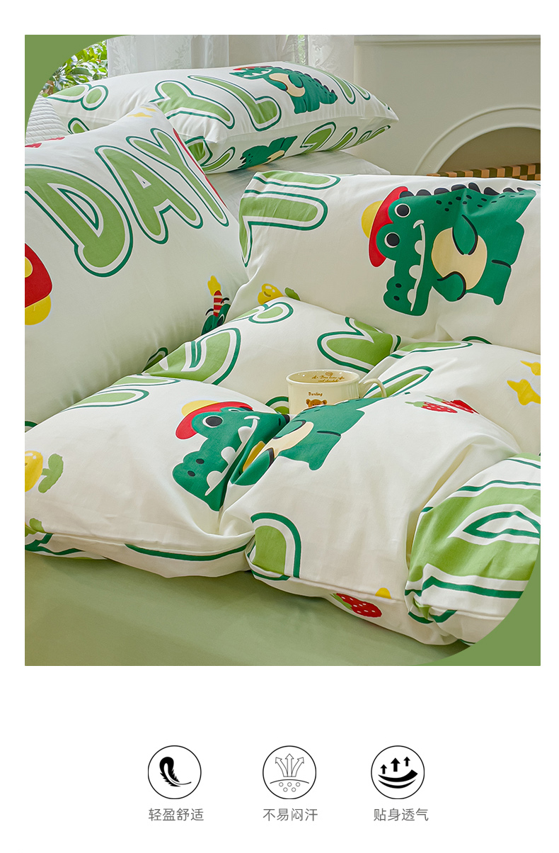 感遇家纺 2023新款全棉印花四件套 字母恐龙