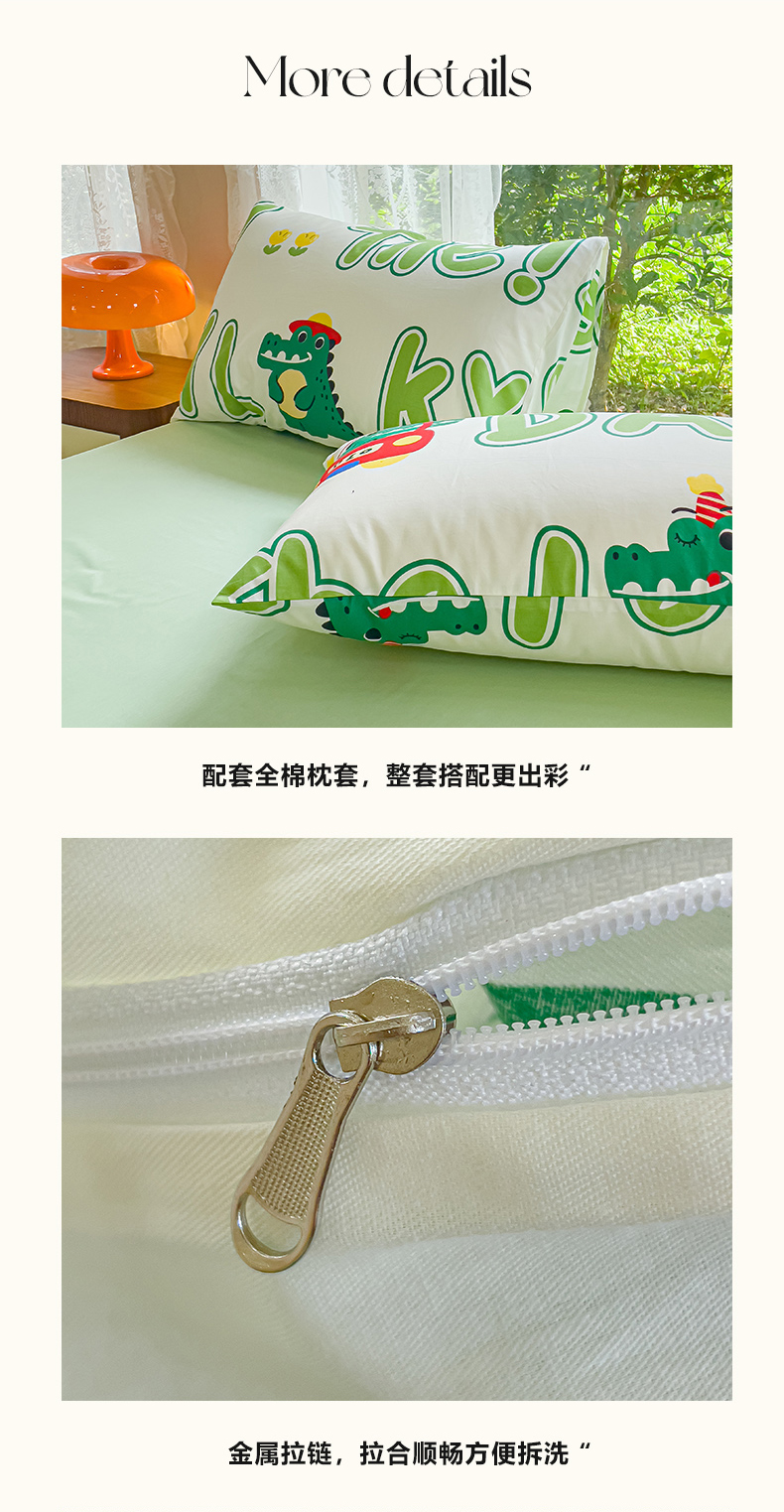 商品名称:感遇家纺 2023新款全棉印花四件套 字母恐龙