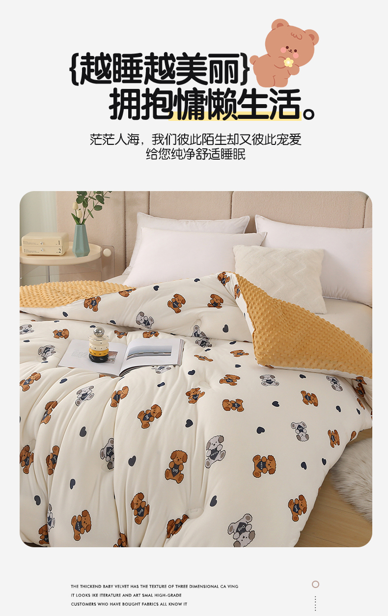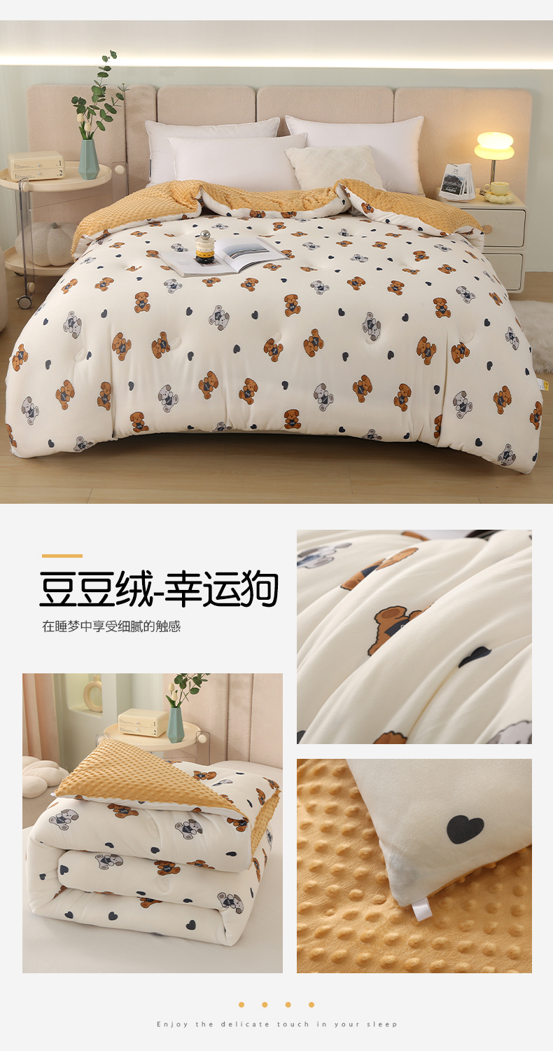 • 91家纺网 家纺一手货源 找家纺 薇玛仕 2023新款A类针织棉3D豆豆绒大豆被 豆豆绒-幸运狗