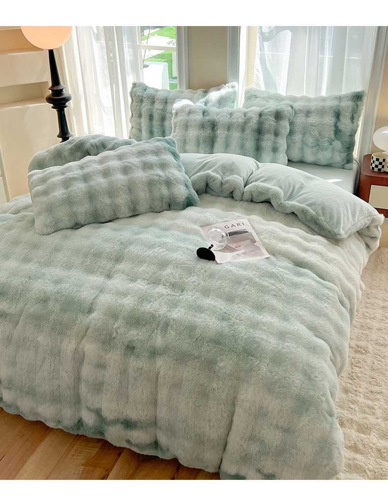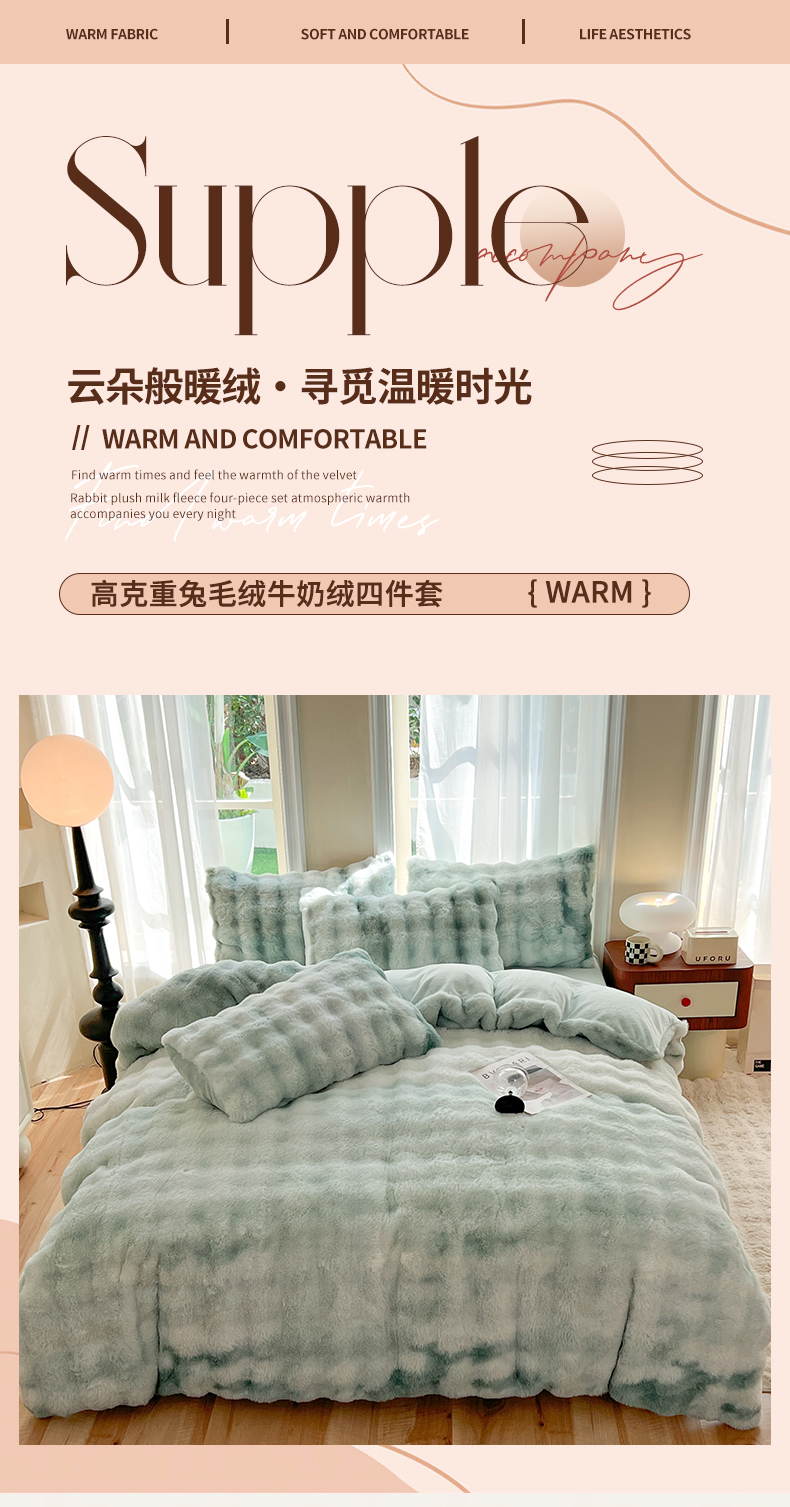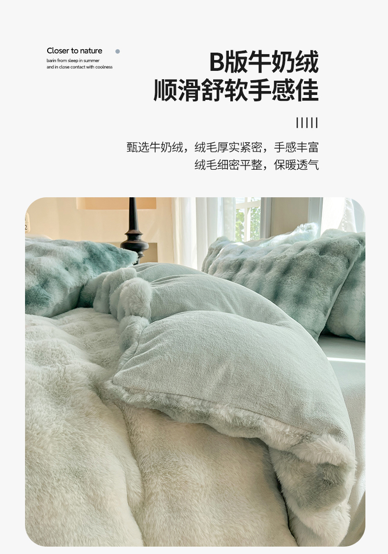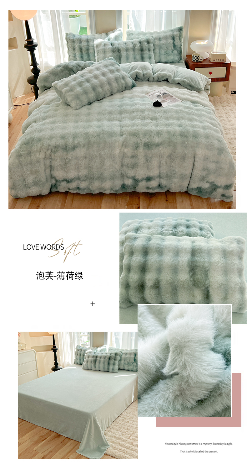 商品名称:妖妖 2023新款兔毛牛奶绒四件套-泡芙 泡芙-薄荷绿