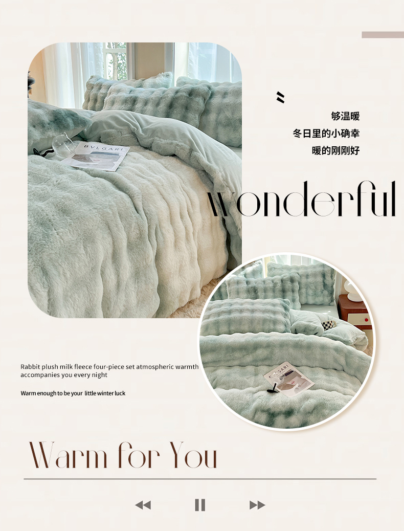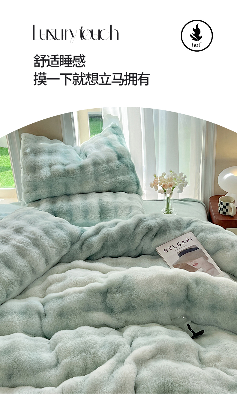 妖妖 2023新款兔毛牛奶绒四件套-泡芙 泡芙-薄荷绿