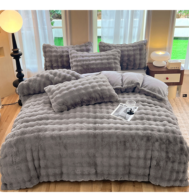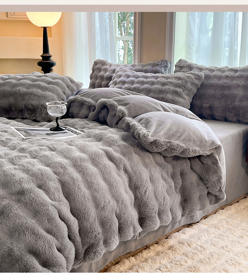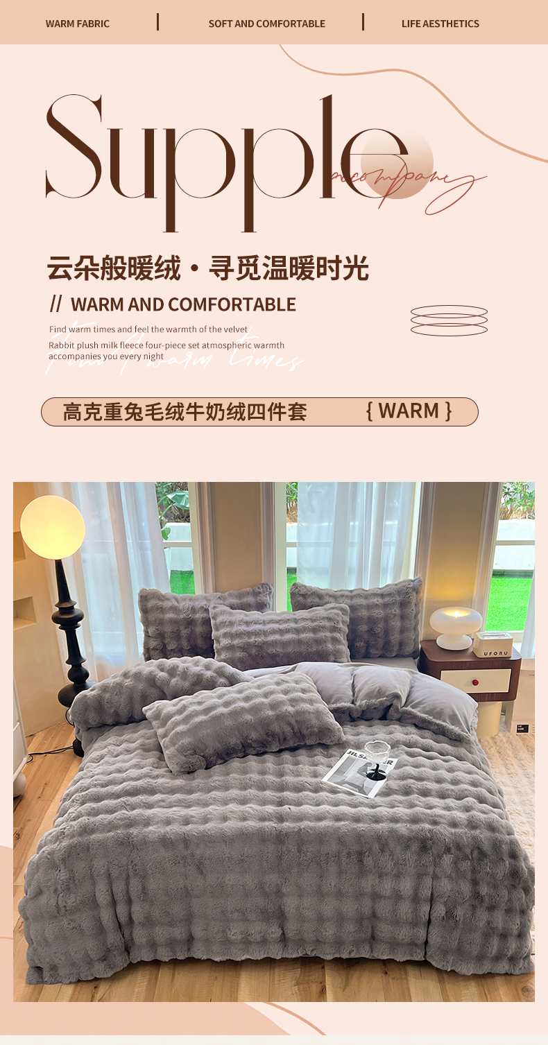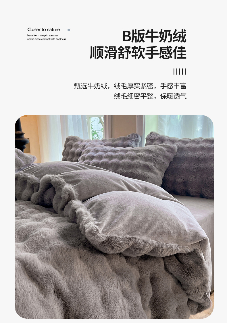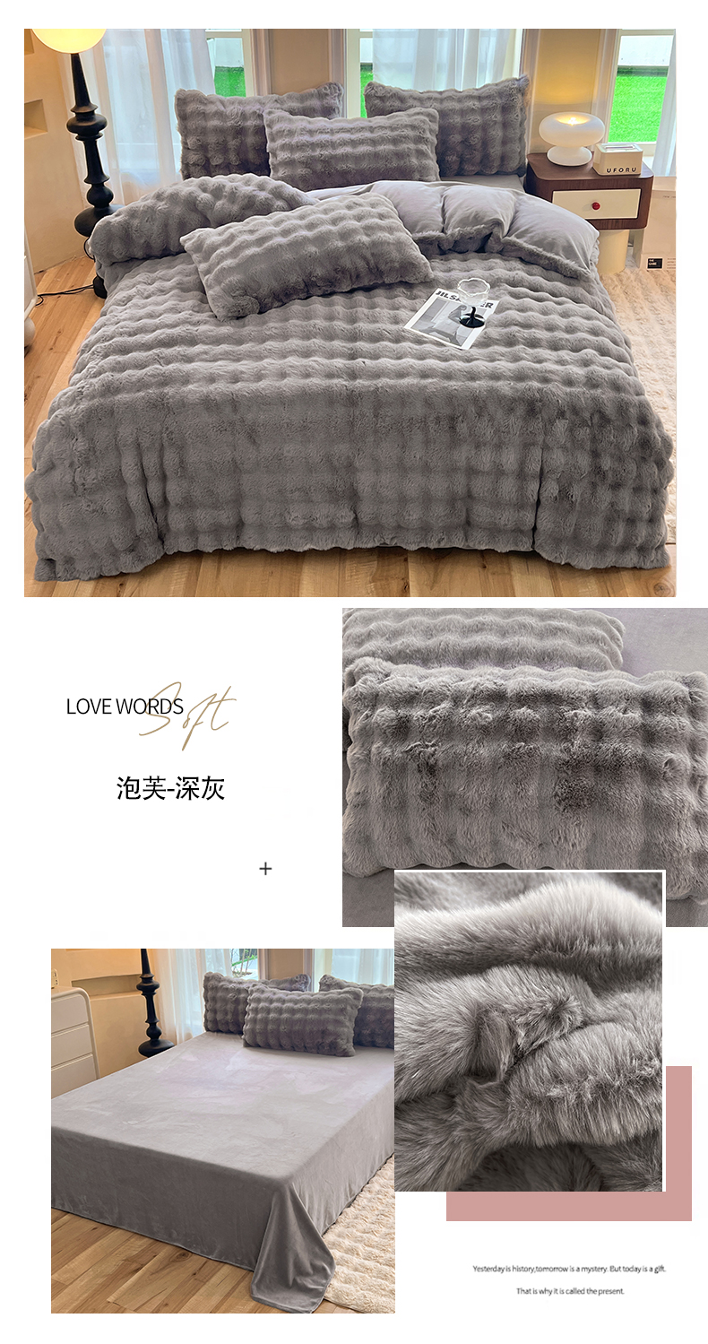 商品名称:妖妖 2023新款兔毛牛奶绒四件套-泡芙 泡芙-深灰