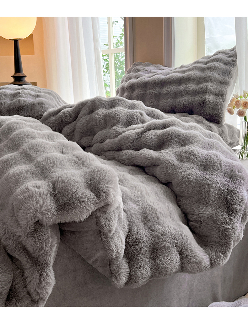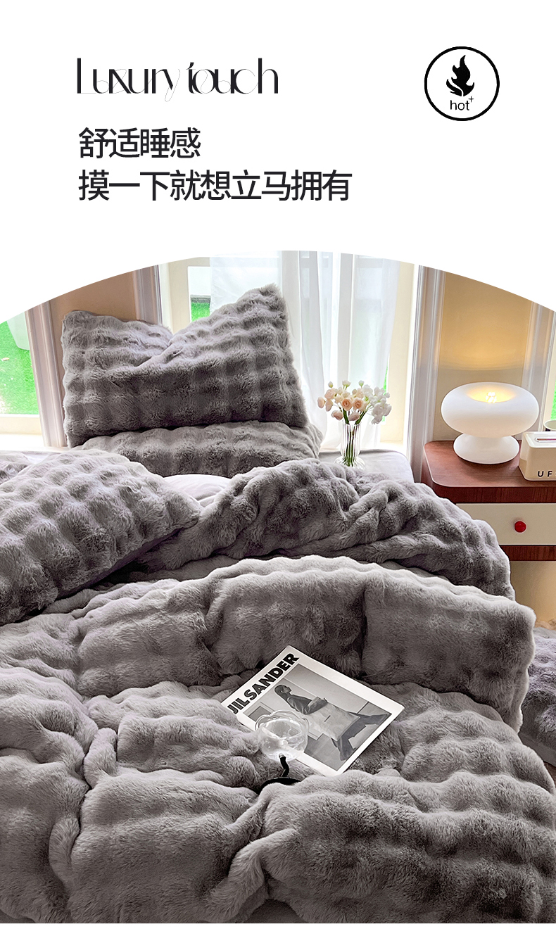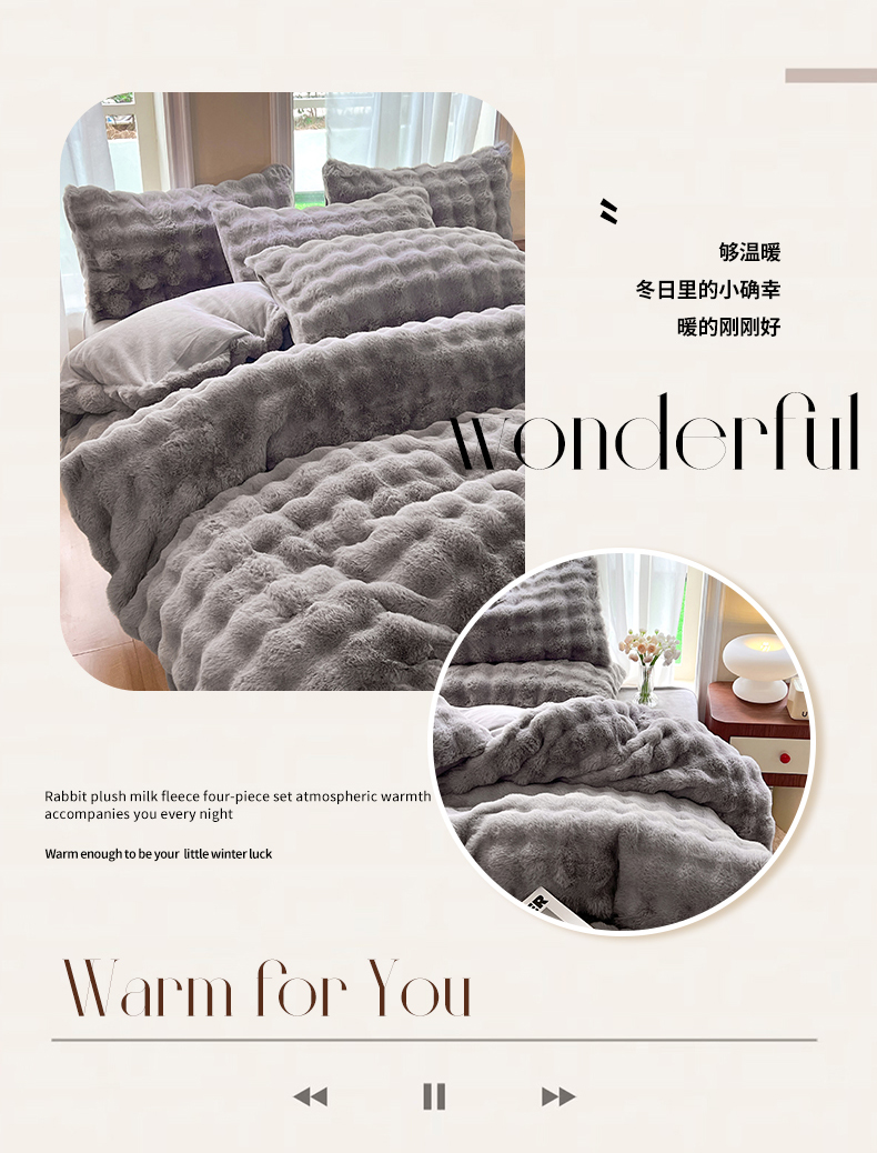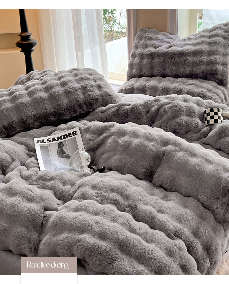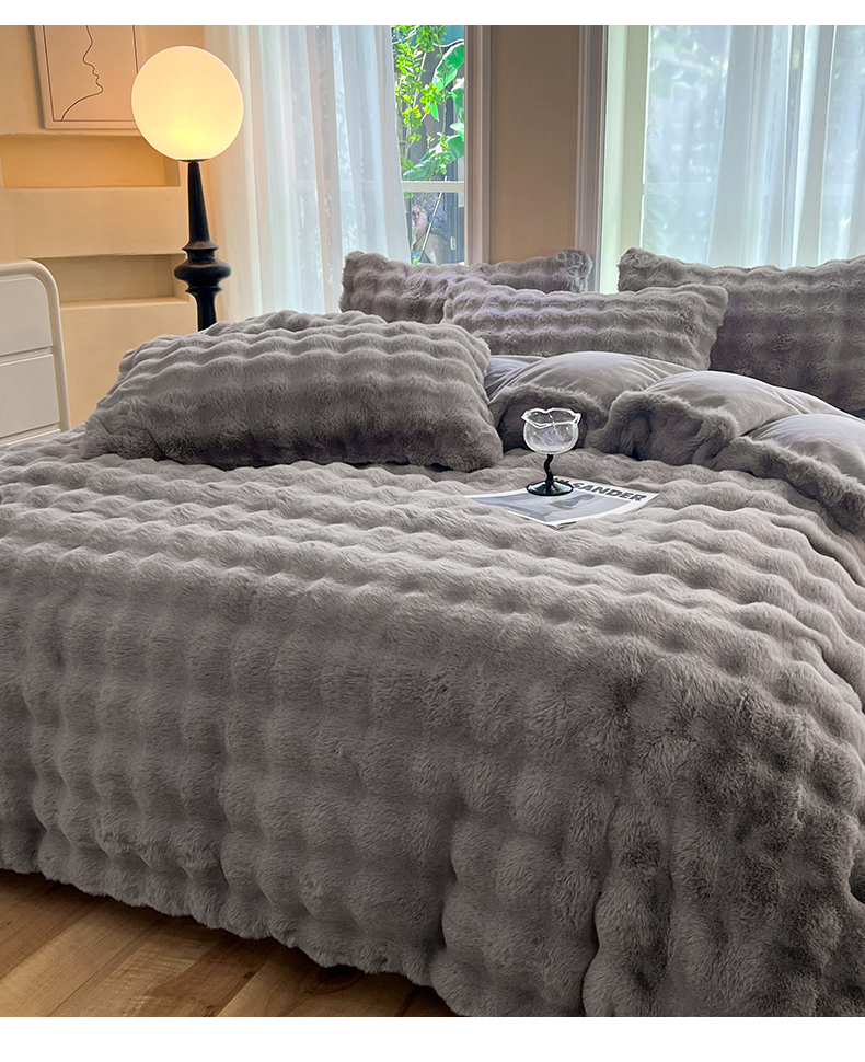 商品名称:妖妖 2023新款兔毛牛奶绒四件套-泡芙 泡芙-深灰