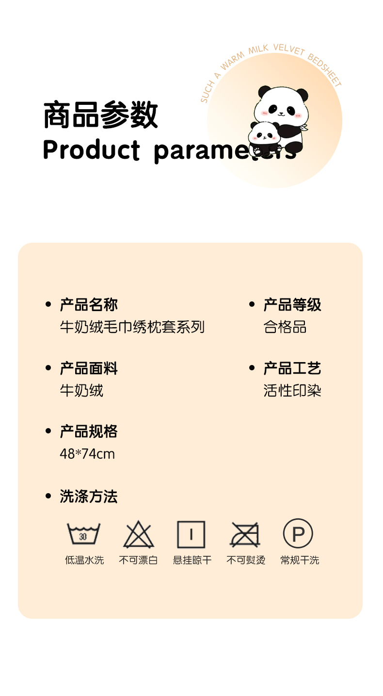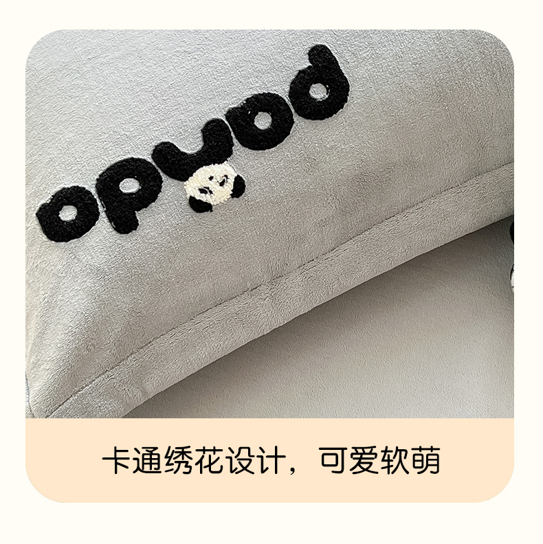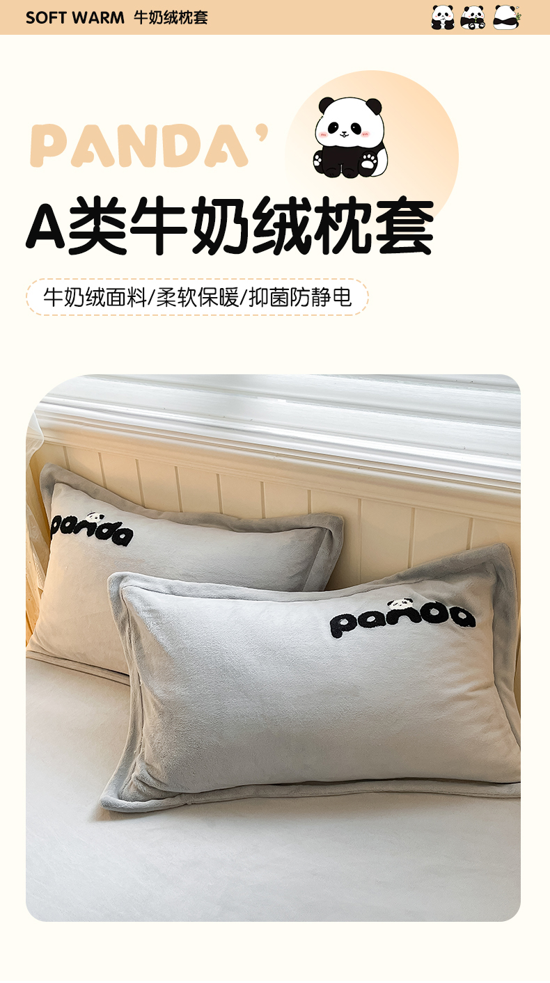 商品名称:丽美人家纺 2023新款熊猫牛奶绒毛巾绣单枕套 熊猫-雅致灰