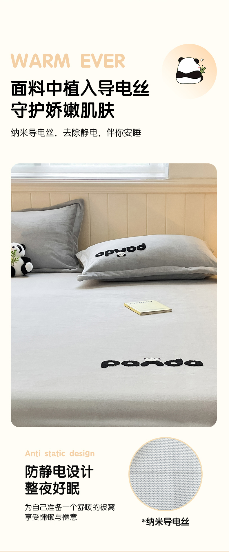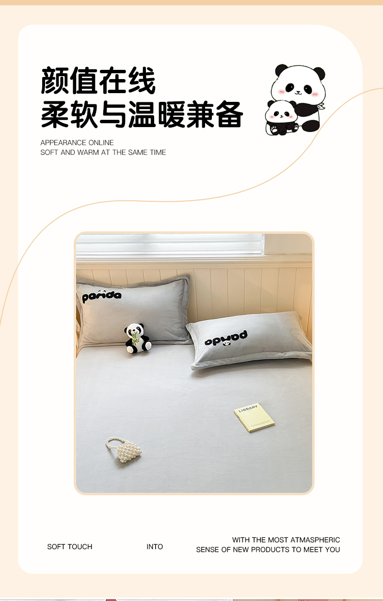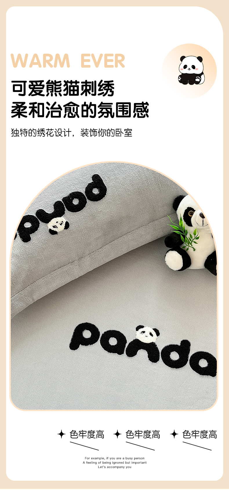 商品名称:丽美人家纺 2023新款熊猫牛奶绒毛巾绣单枕套 熊猫-雅致灰