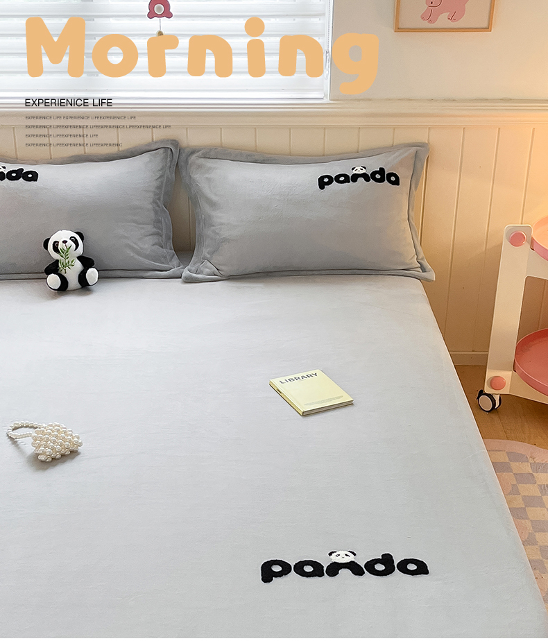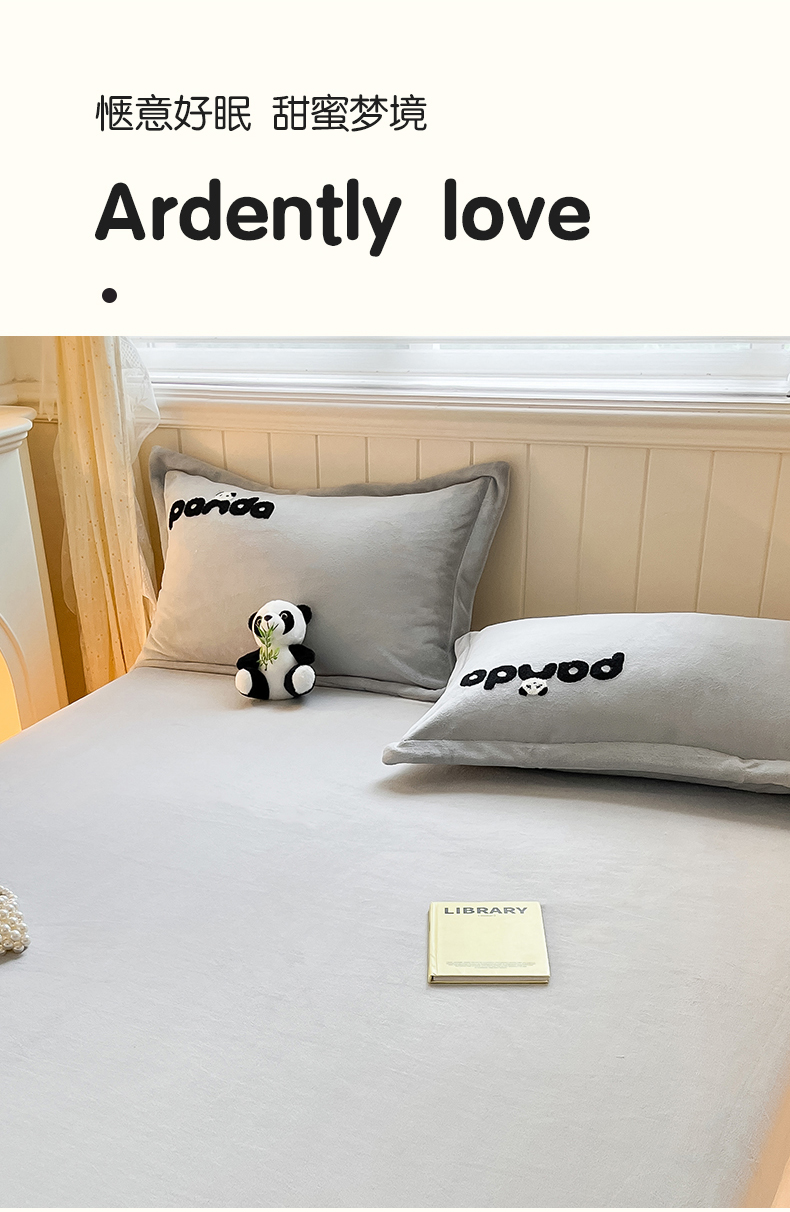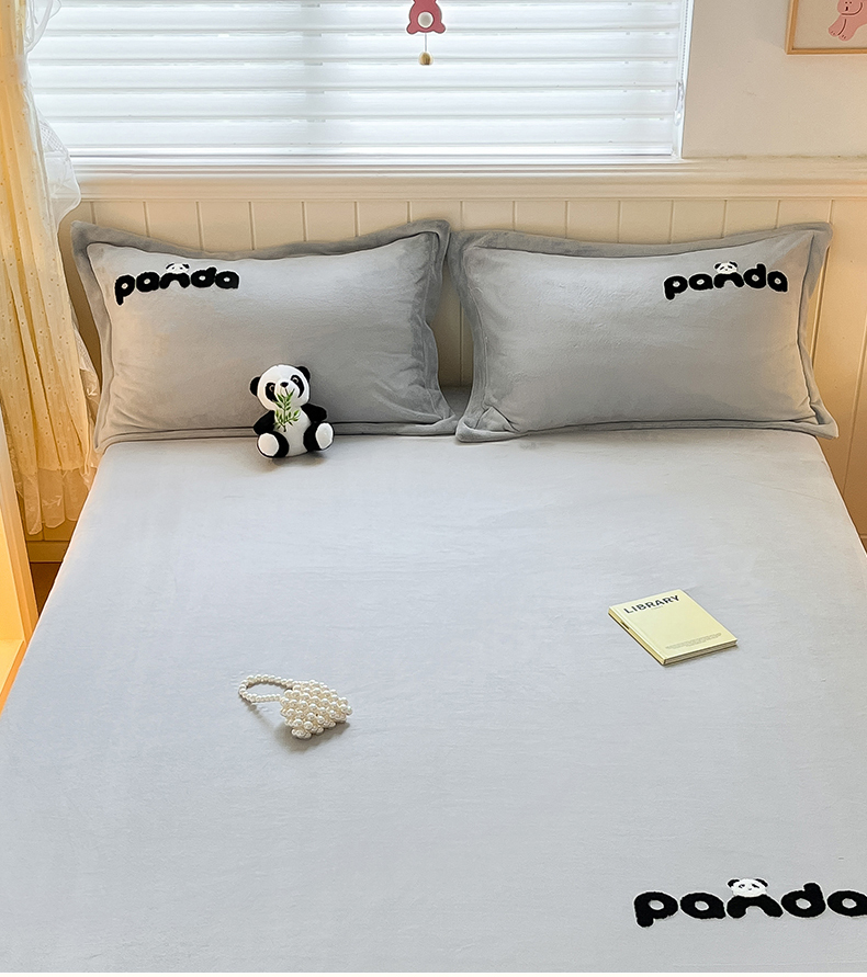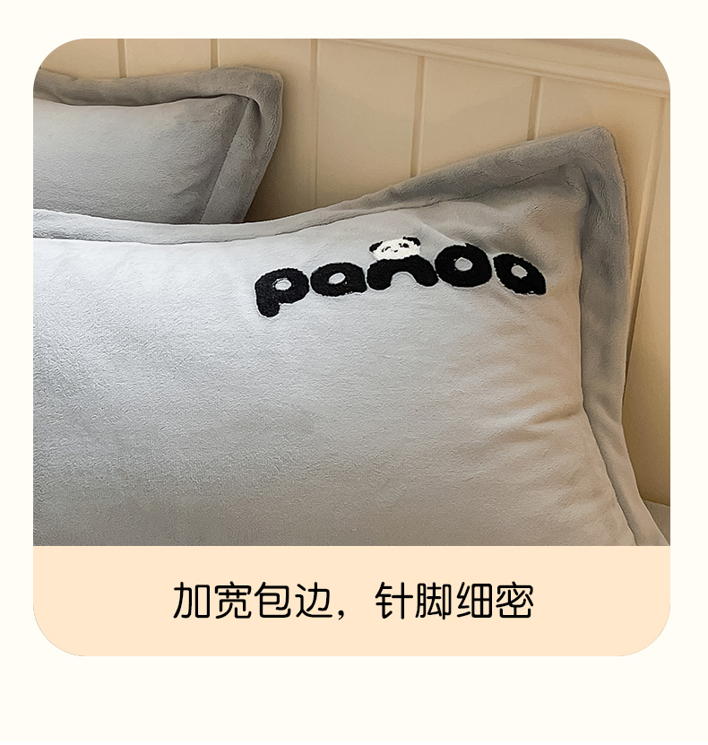 丽美人家纺 2023新款熊猫牛奶绒毛巾绣单枕套 熊猫-雅致灰