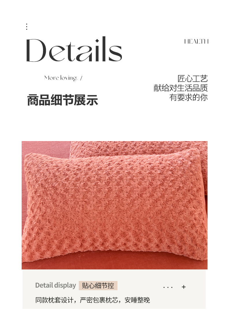 商品名称:妖妖家纺 2023兔毛四件套-小玫瑰小格子 玫瑰-橘红