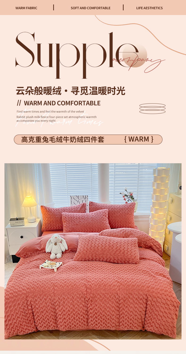(总)妖妖 2023新款兔毛牛奶绒四件套-泡芙,泡芙-薄荷绿,泡芙-花艺,泡芙-灰紫,泡芙-橘红,泡芙-米白,泡芙-浅灰,泡芙-浅卡其,泡芙-浅紫,泡芙-山茶,泡芙-珊瑚粉,泡芙-深灰,泡芙-水绿,泡芙-字母