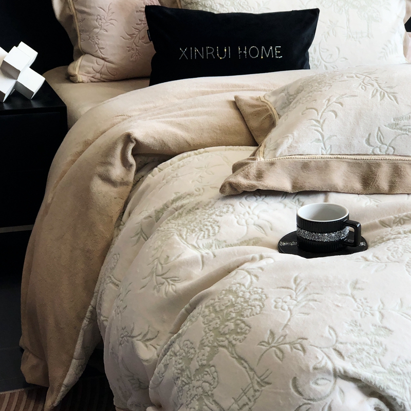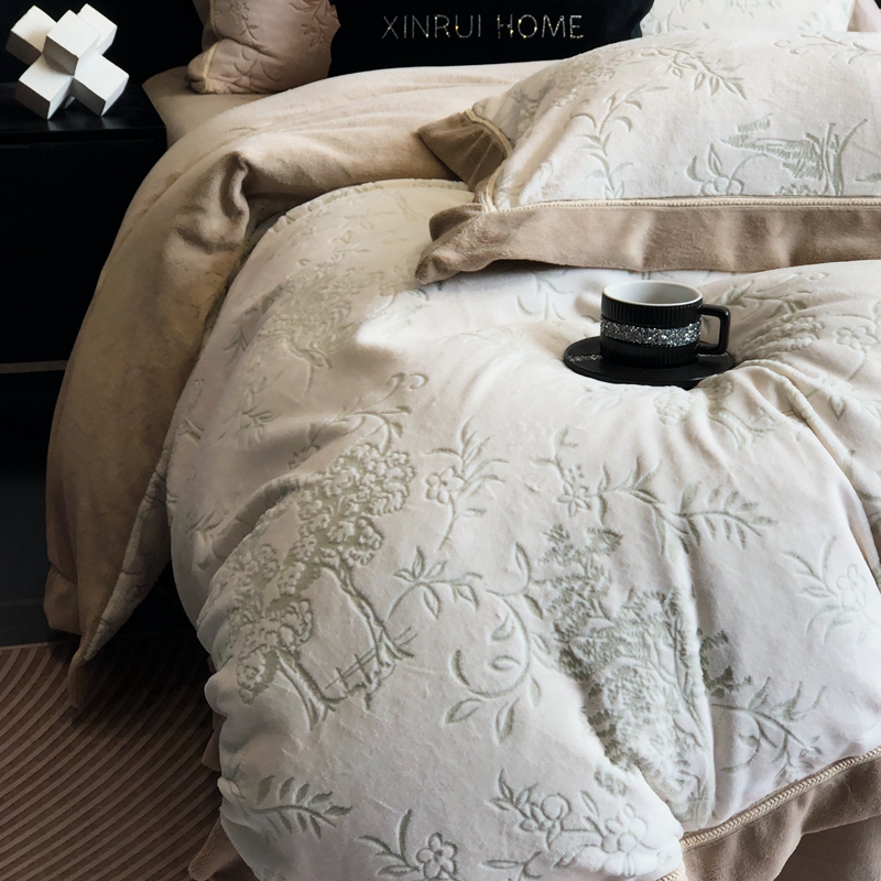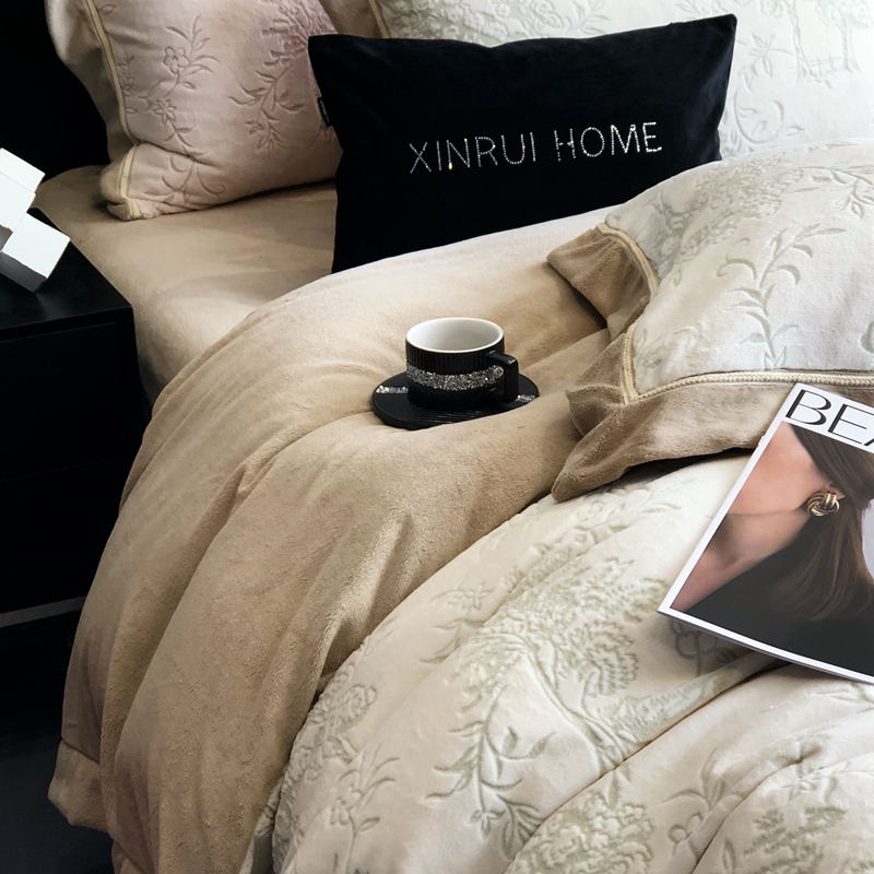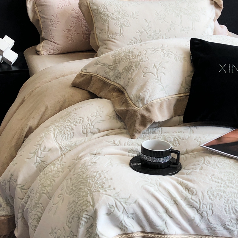 (总)馨蕊家居 2025新款意大利进口高精密刺绣拼角工艺秋冬法式高奢雪貂绒系列-绒雪芙 会员-10【券后控价358/378】,绒雪芙-奶咖,绒雪芙-蔷薇粉,绒雪芙-婉若紫,绒雪芙-月光白