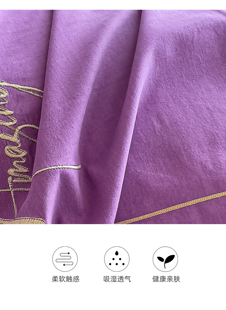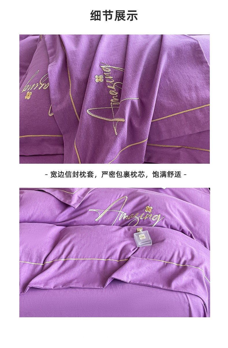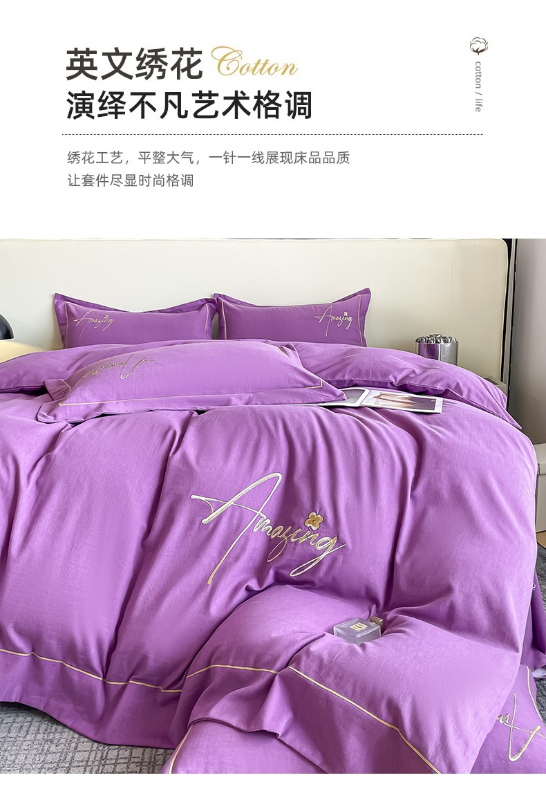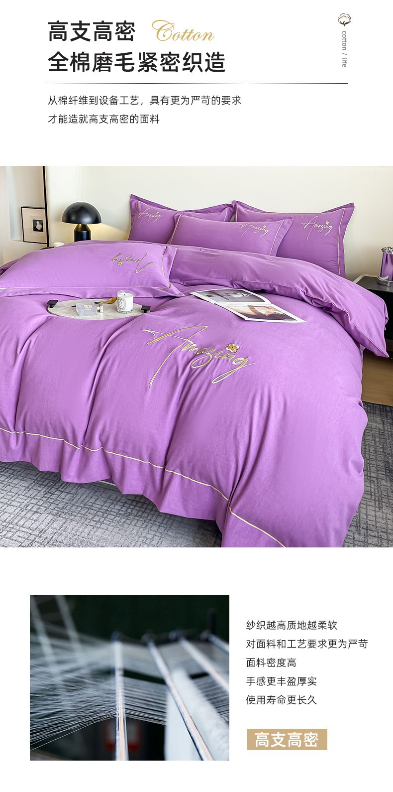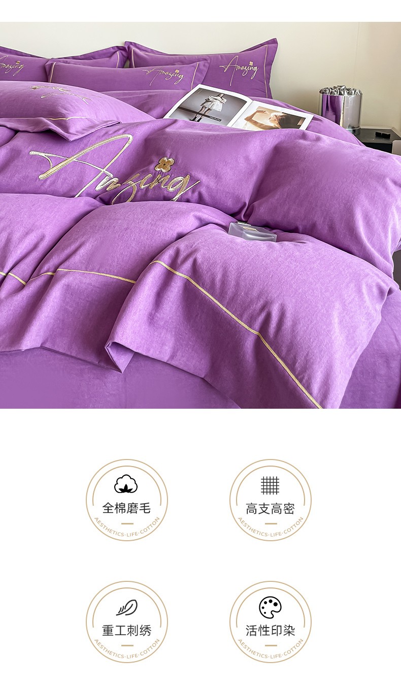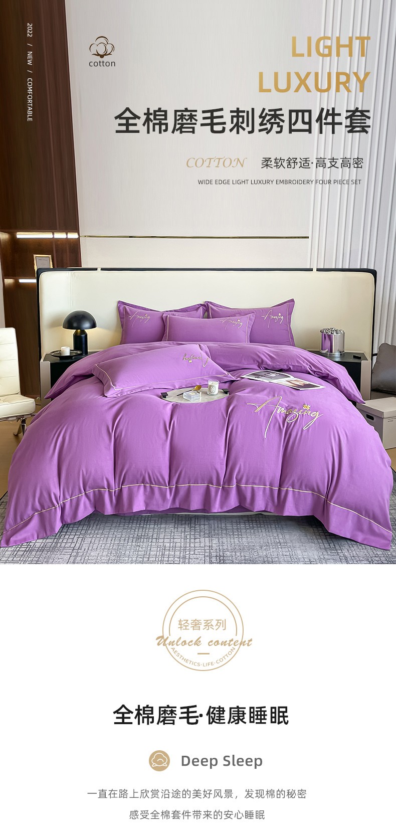 梧桐家居 2023新款全棉磨毛刺绣四件套 紫色