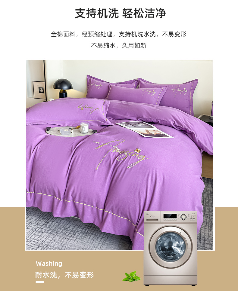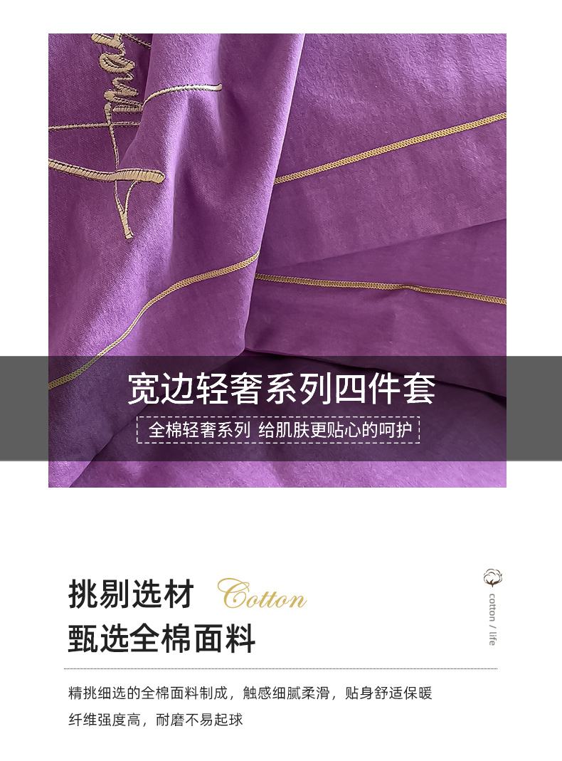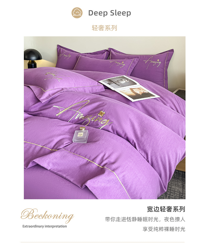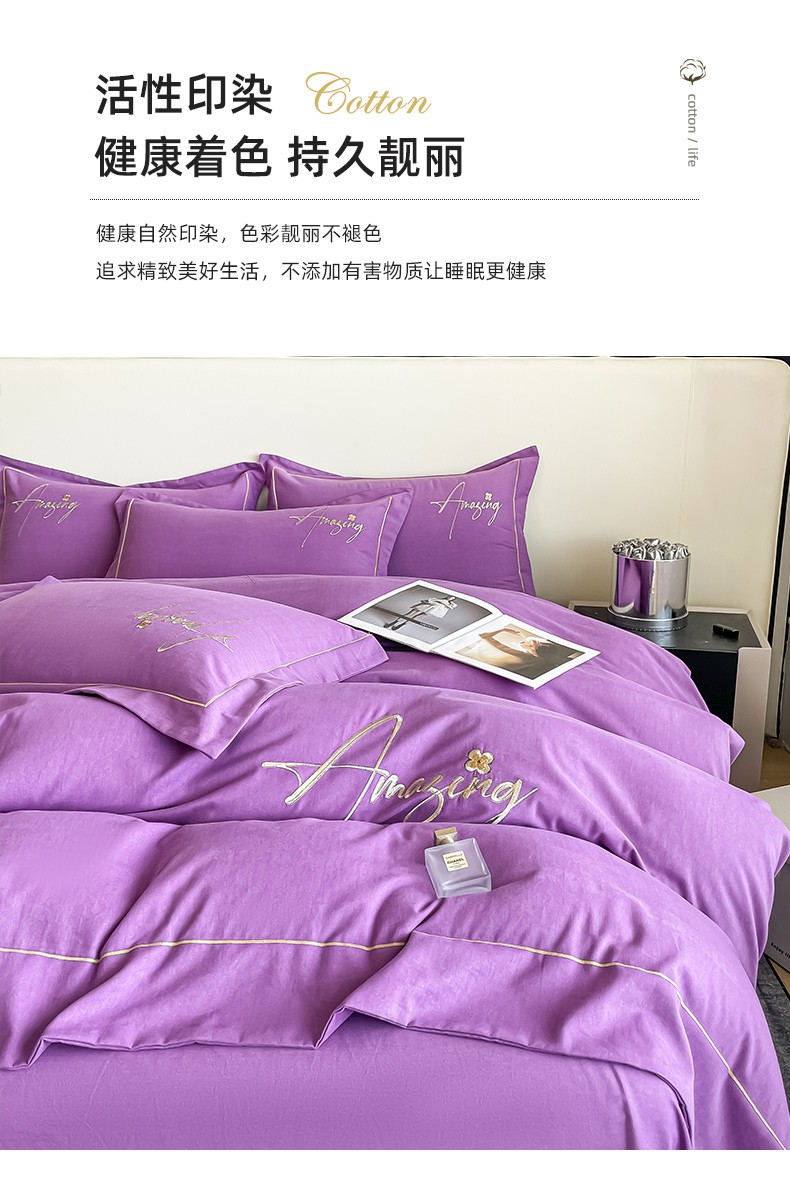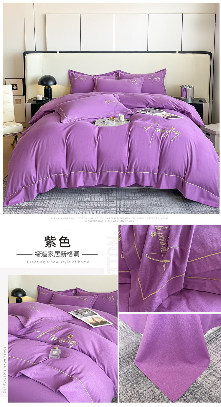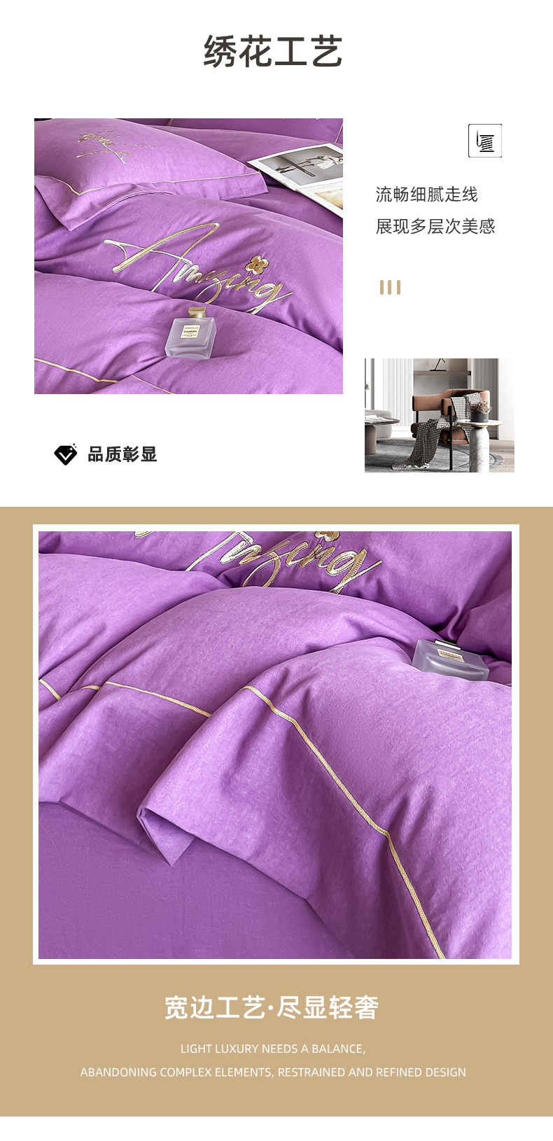 梧桐家居 2023新款全棉磨毛刺绣四件套 紫色