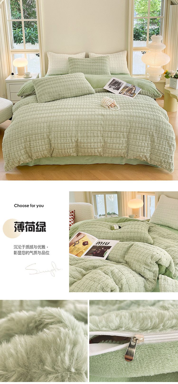 当前位置: 91家纺网 > 商品网购 > 床品套件 > 四件套 > 兔毛绒四件套 > 安哆啦加厚9斤獭兔毛绒兔兔绒剪花牛奶绒四件套纯色双拼系列 薄荷绿
