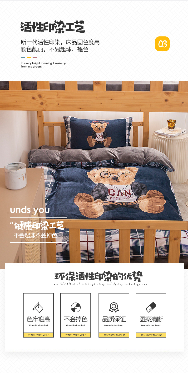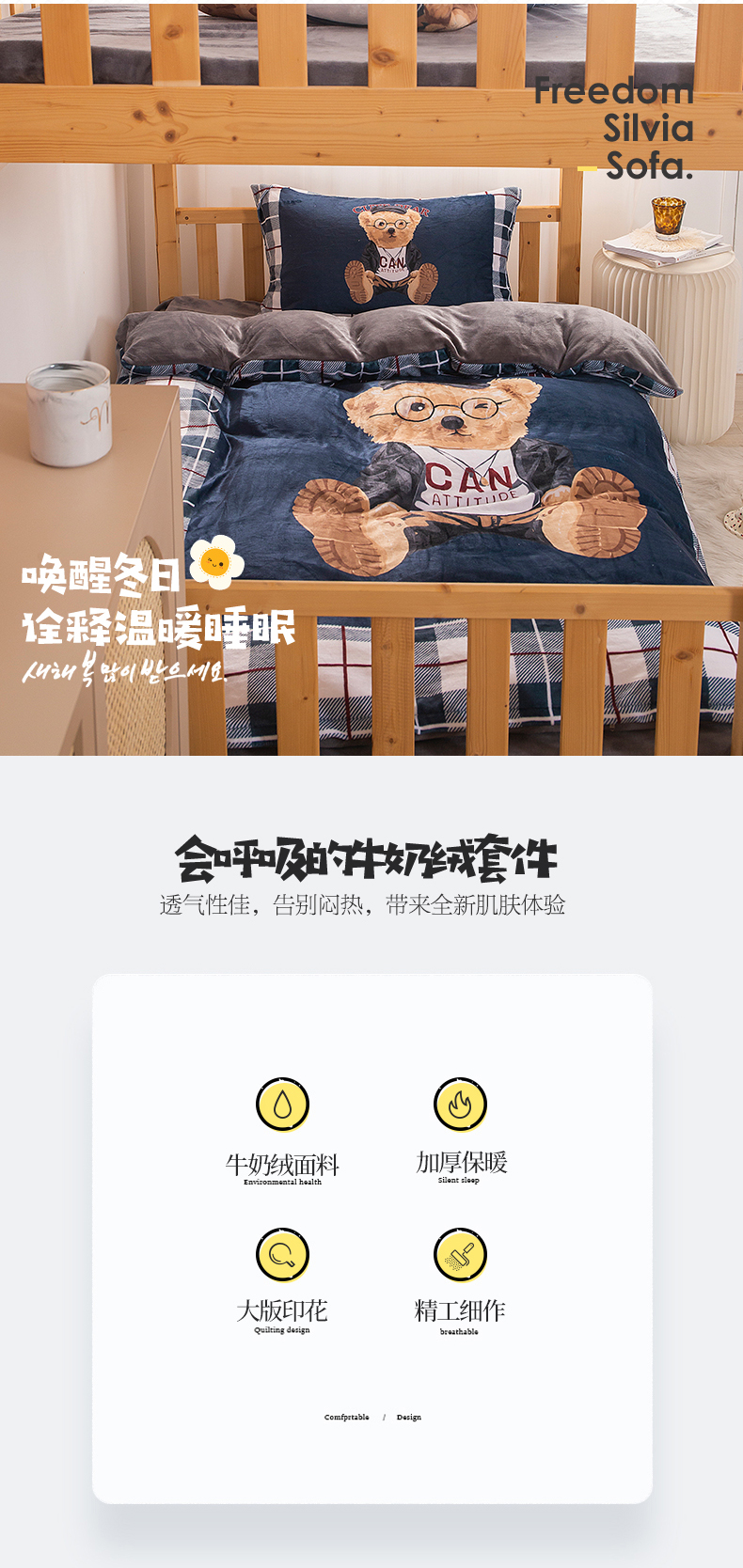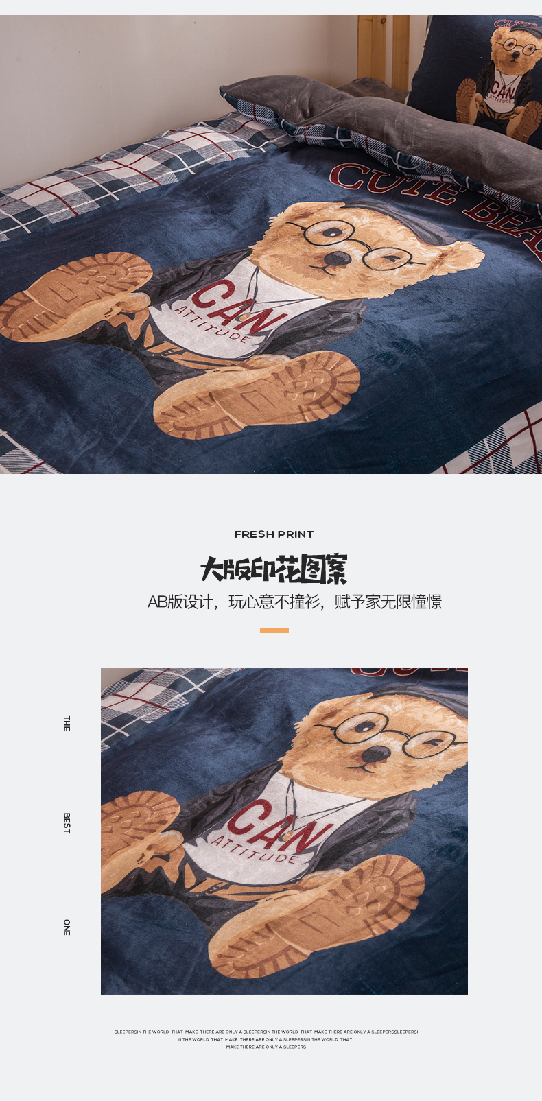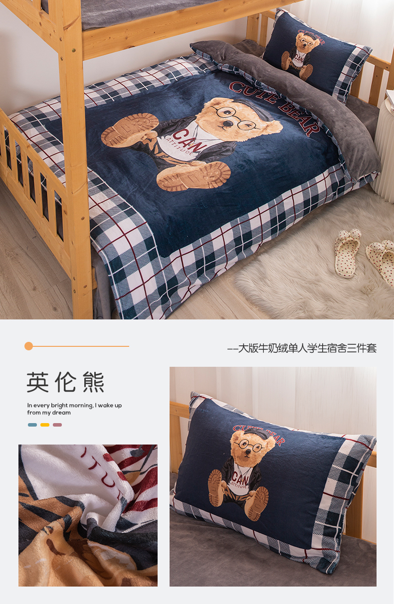 当前位置: 91家纺网 > 商品网购 > 床品套件 > 三件套 > 宅部落 2023新款大版卡通牛奶绒三件套 9.英伦熊