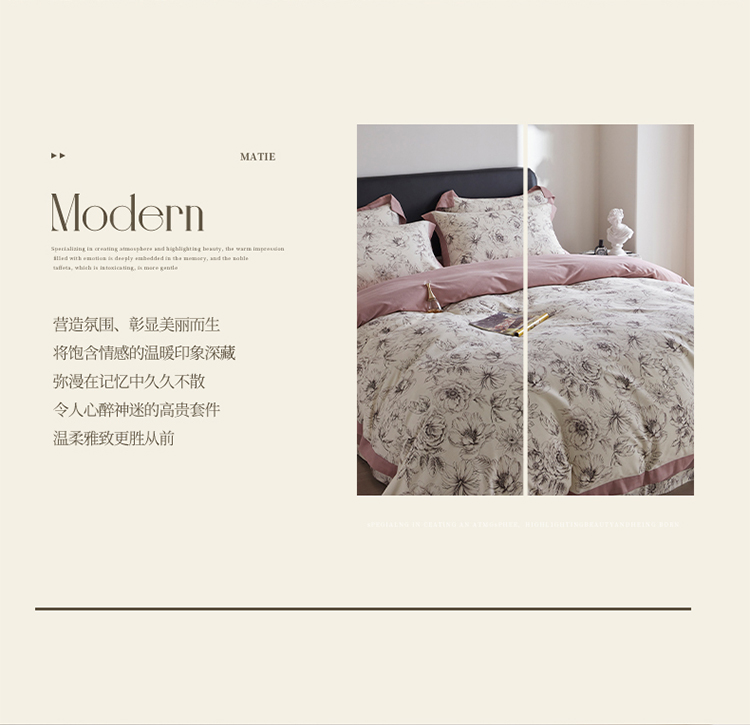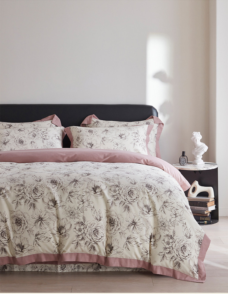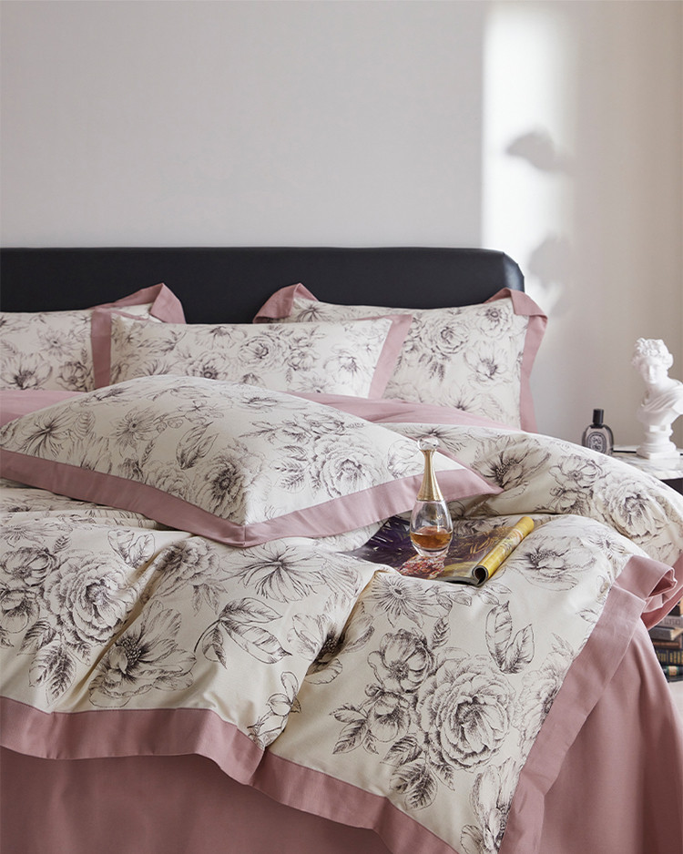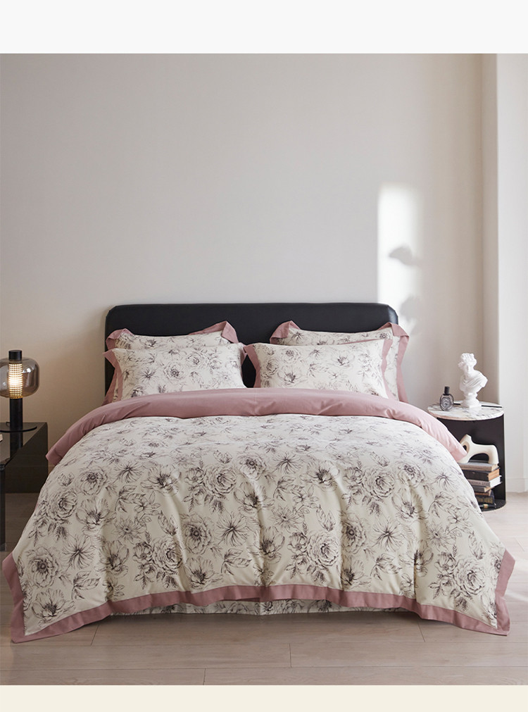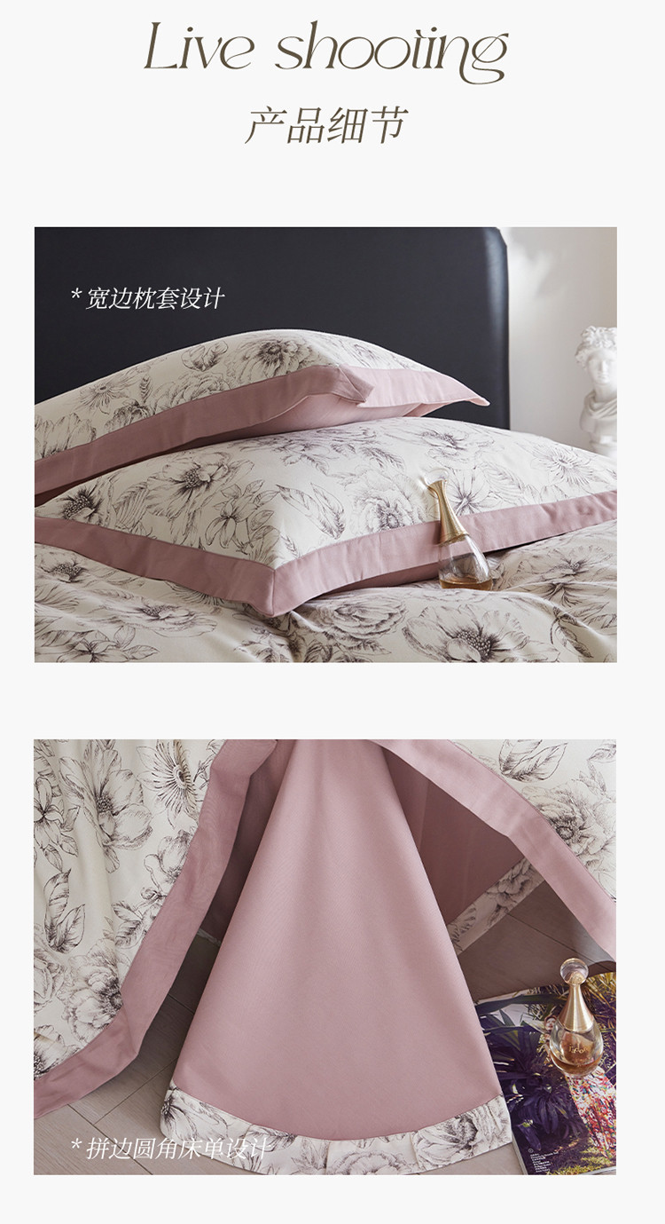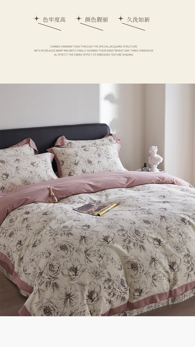 (总)嘉汀兰 2023新款60支全棉磨毛绣花撞色轻奢四件套—暮里,粉色,红灰色,芥绿色,浅灰色,深青色