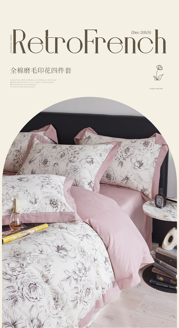 (总)嘉汀兰家居 2025新款长绒棉磨毛四件套—蔓莎,豆沙,灰色,桔色,绿色,香槟,紫色