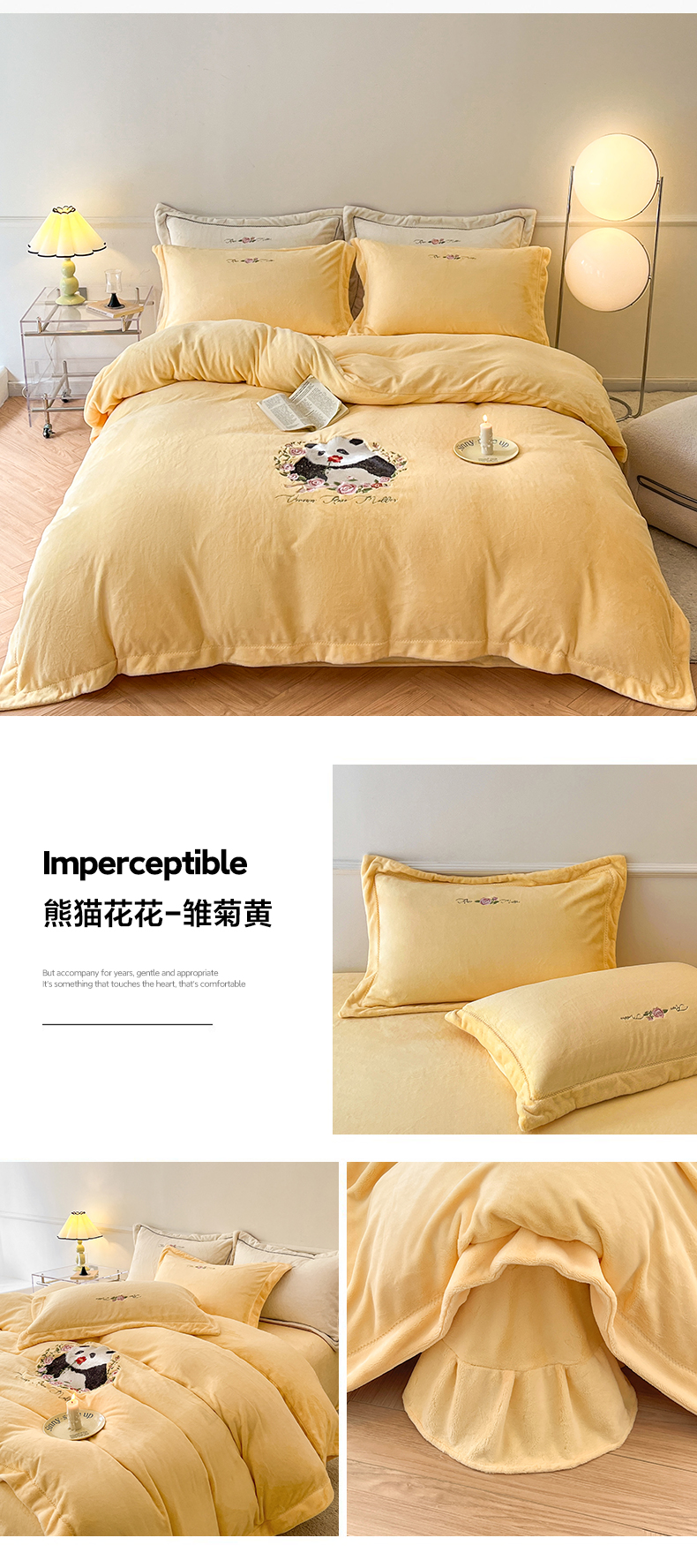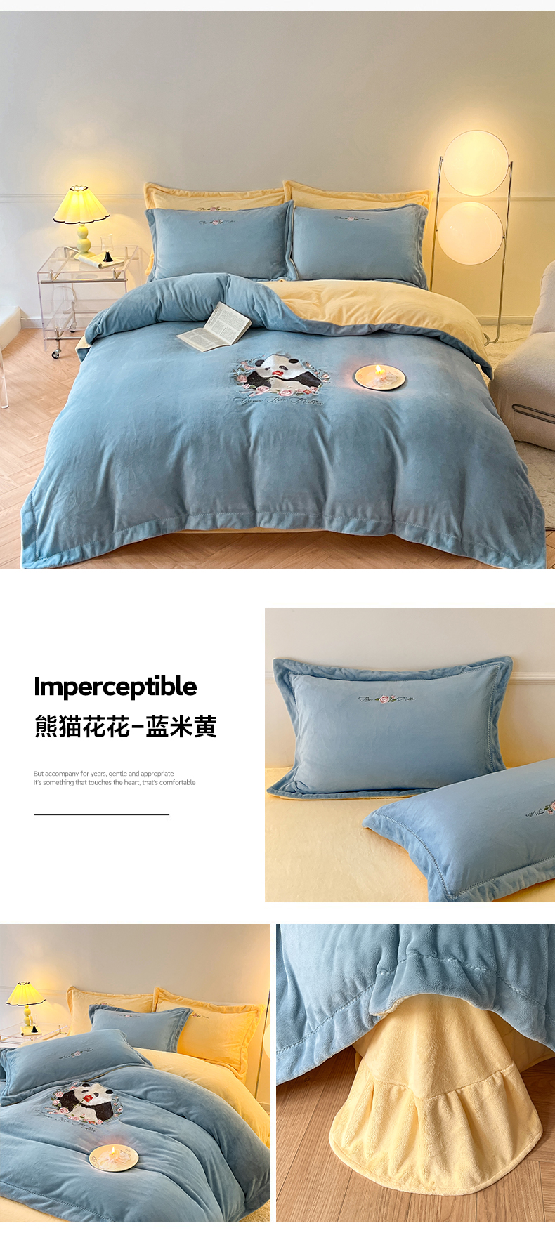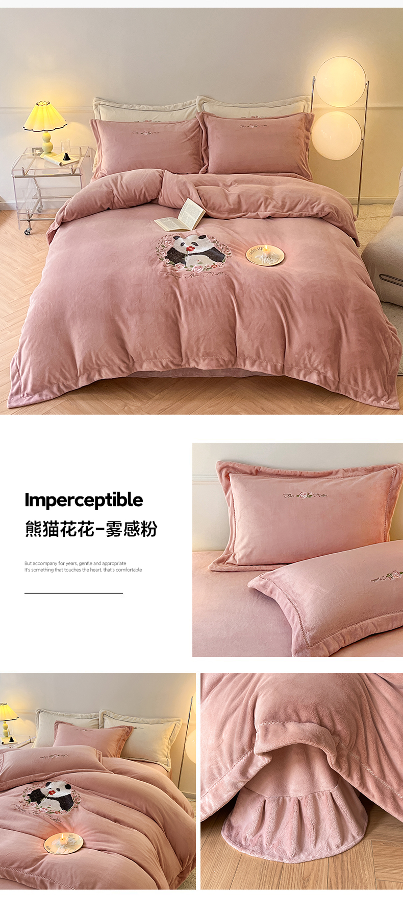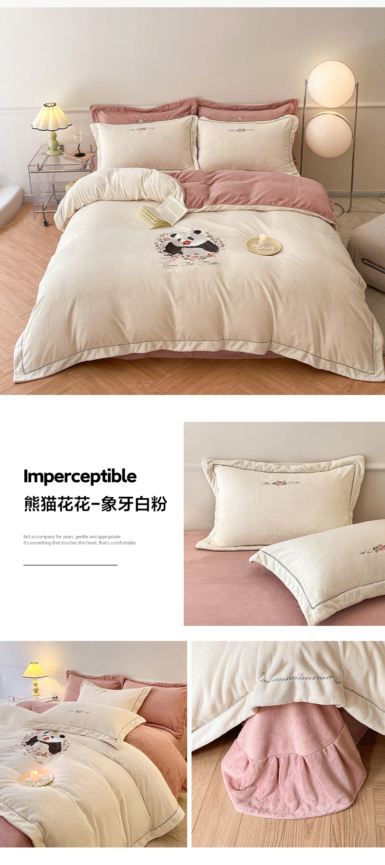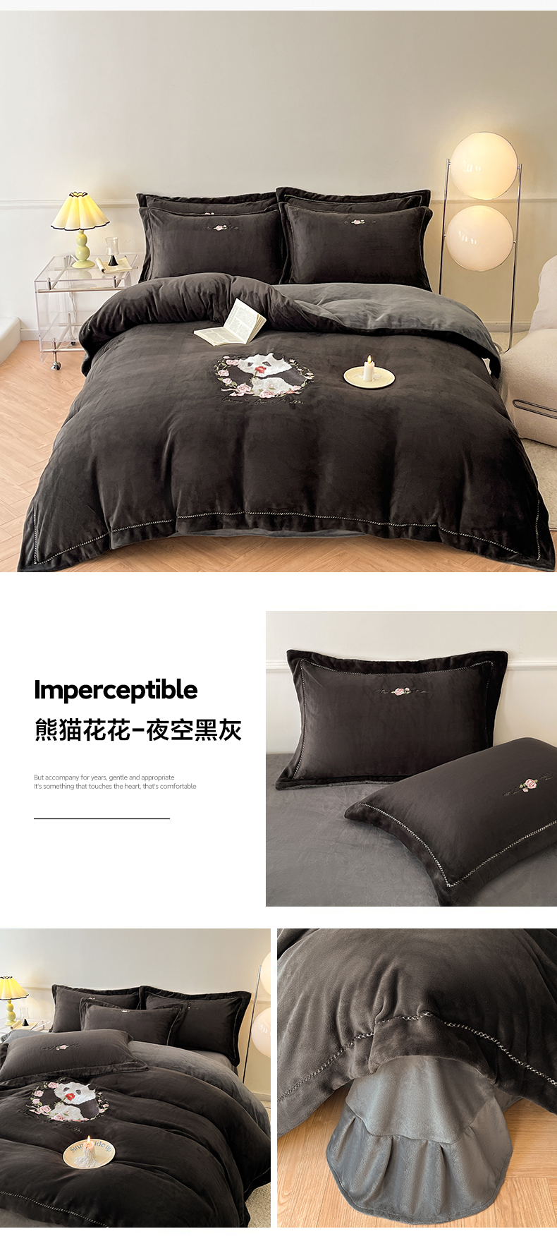 秀色家纺 2025新款专版ins风熊猫花花双面牛奶绒四件套加厚加绒冬季 熊猫花花-夜空黑粉
