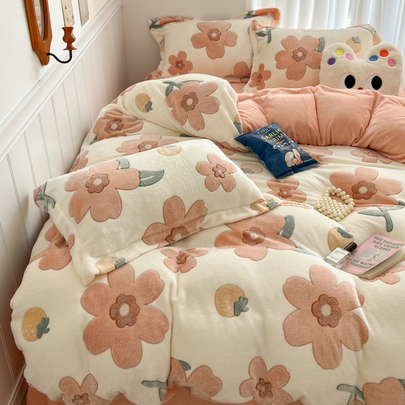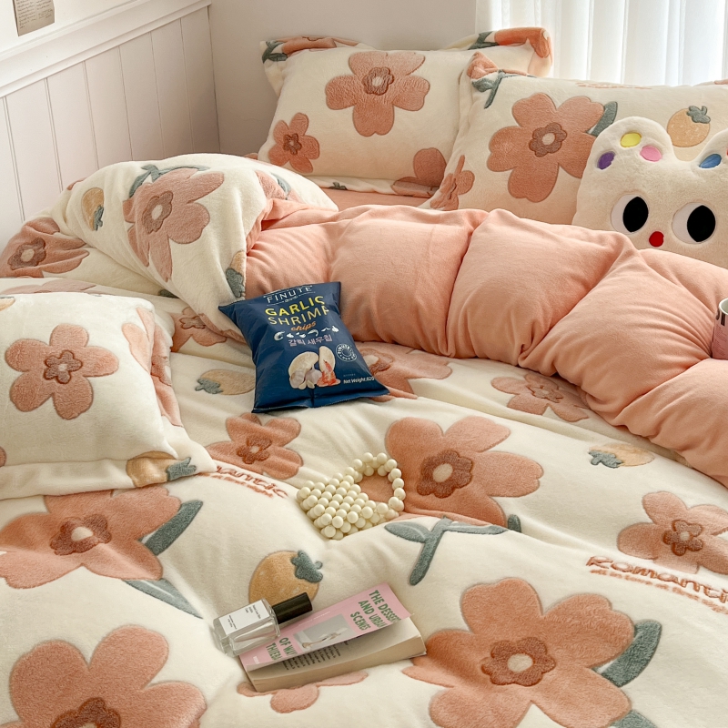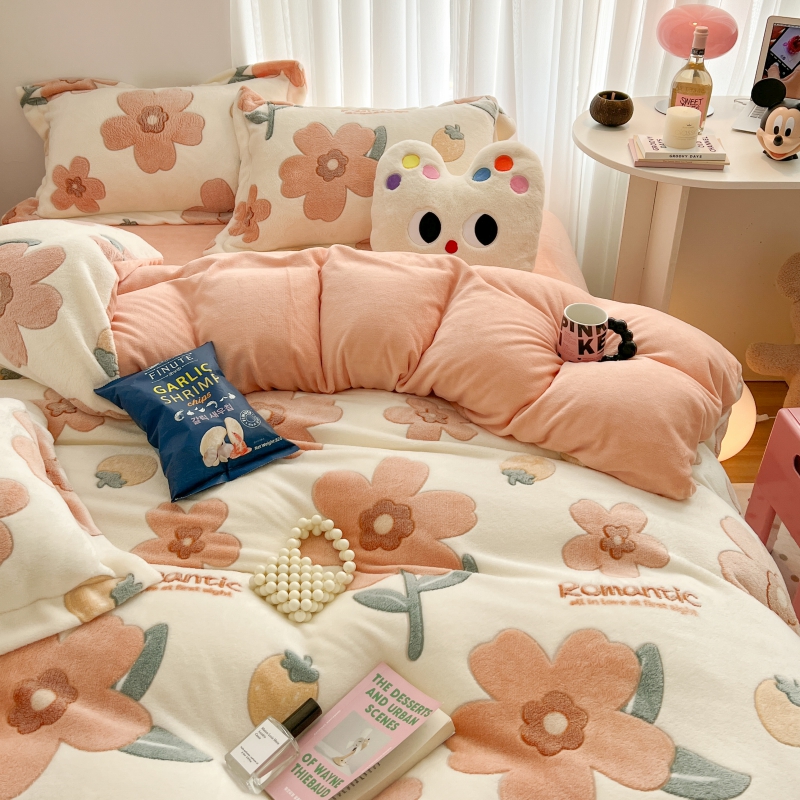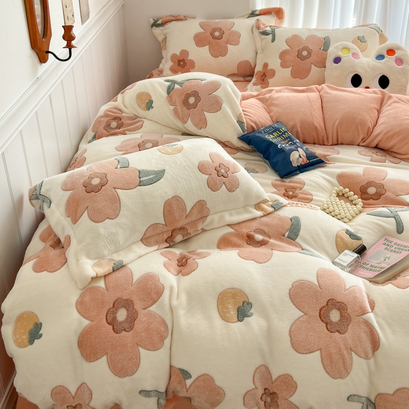 当前位置: 91家纺网 > 商品网购 > 床品套件 > 四件套 > 牛奶绒四件套 > 顾里家纺 2023新款ins韩风∙立体牛奶雪花绒系列四件套 花花草莓