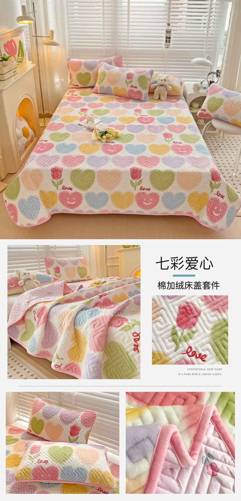 商品名称:羽爱 2024新款棉加绒床盖套件 七彩爱心