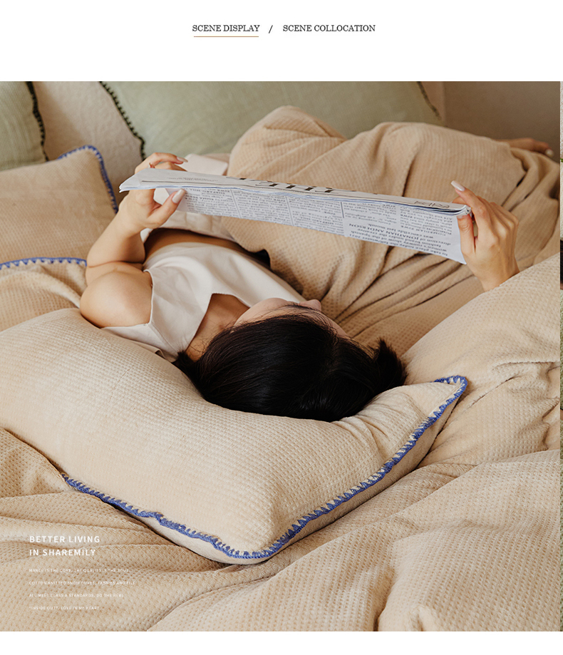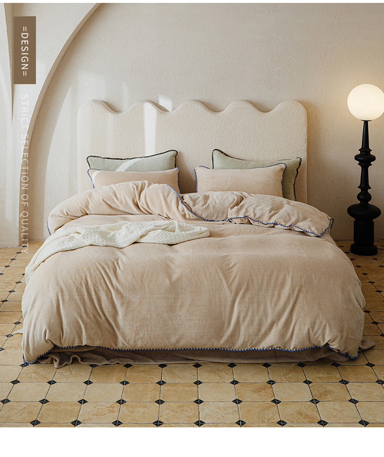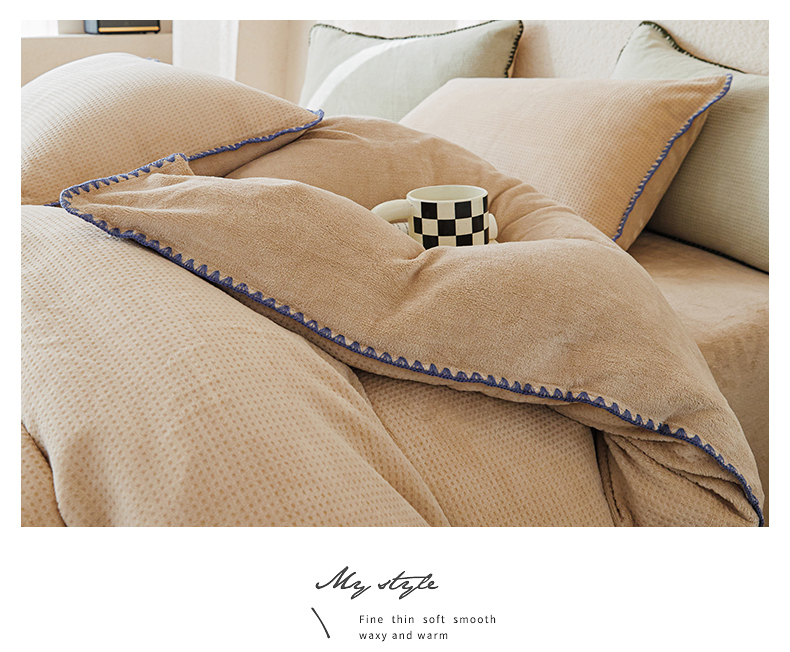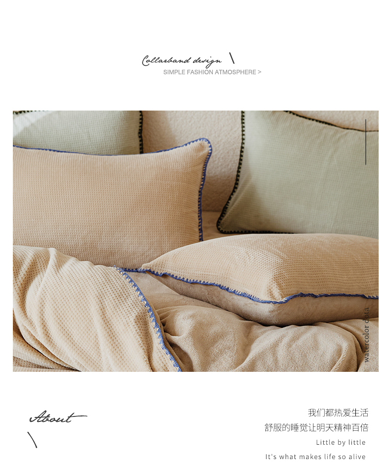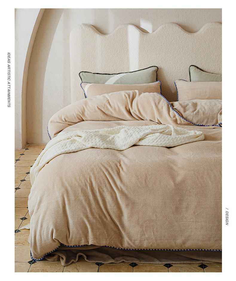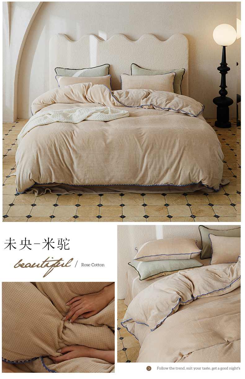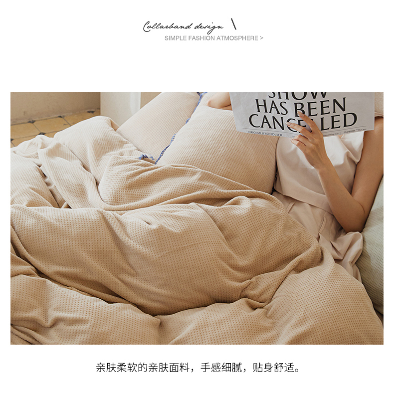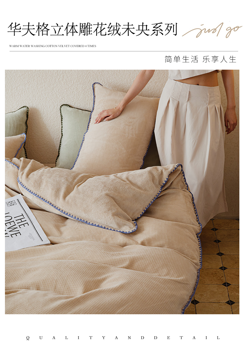 当前位置: 91家纺网 > 商品网购 > 床品套件 > 四件套 > 雕花绒四件套 > 新款华夫格立体雕花绒四件套-未央系列 未央-米驼