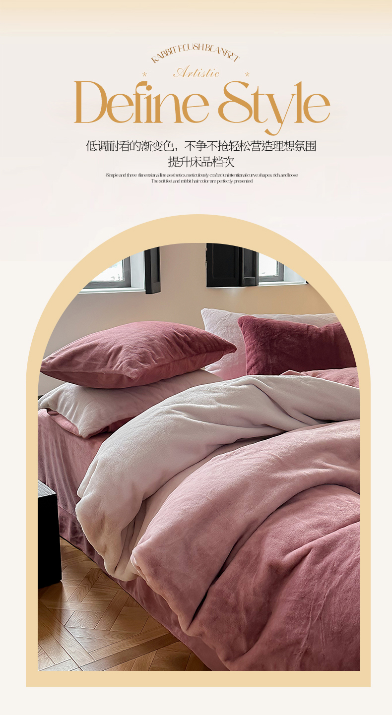 商品名称:2023新款兔绒渐变款四件套-暮光之城 暮光之城 玛雅红