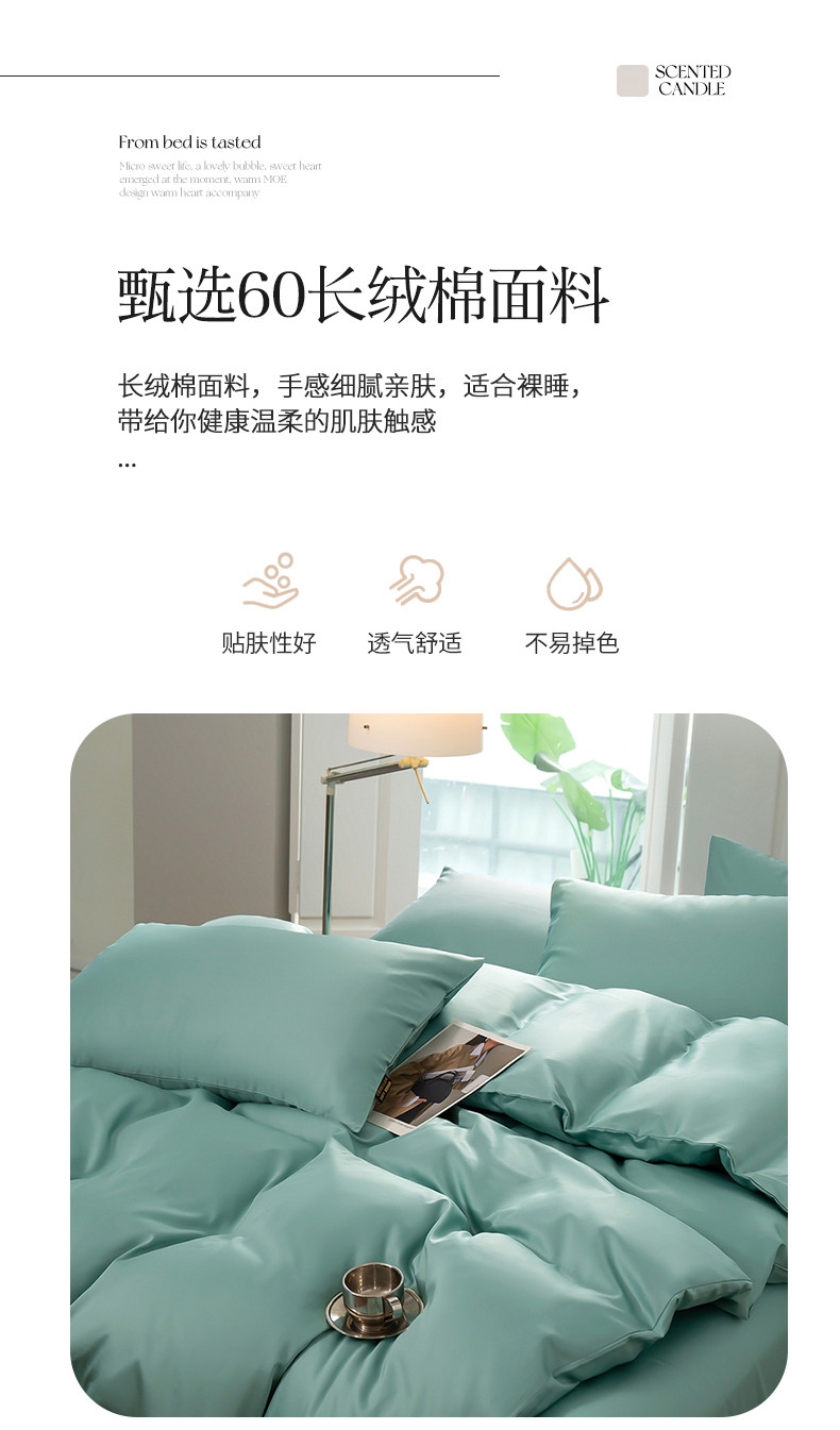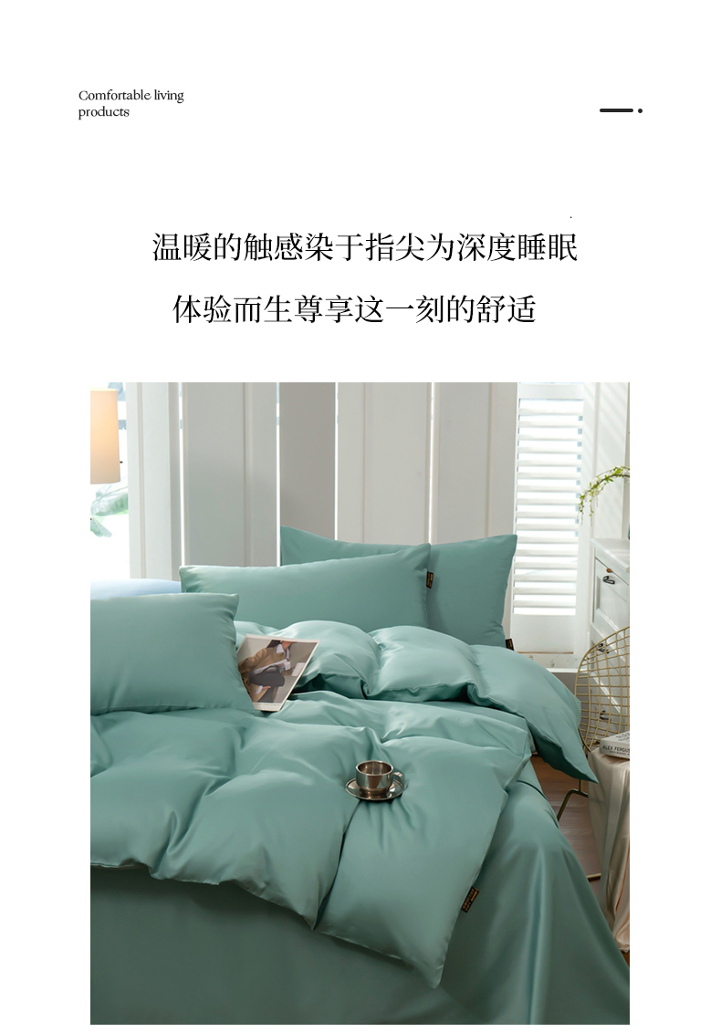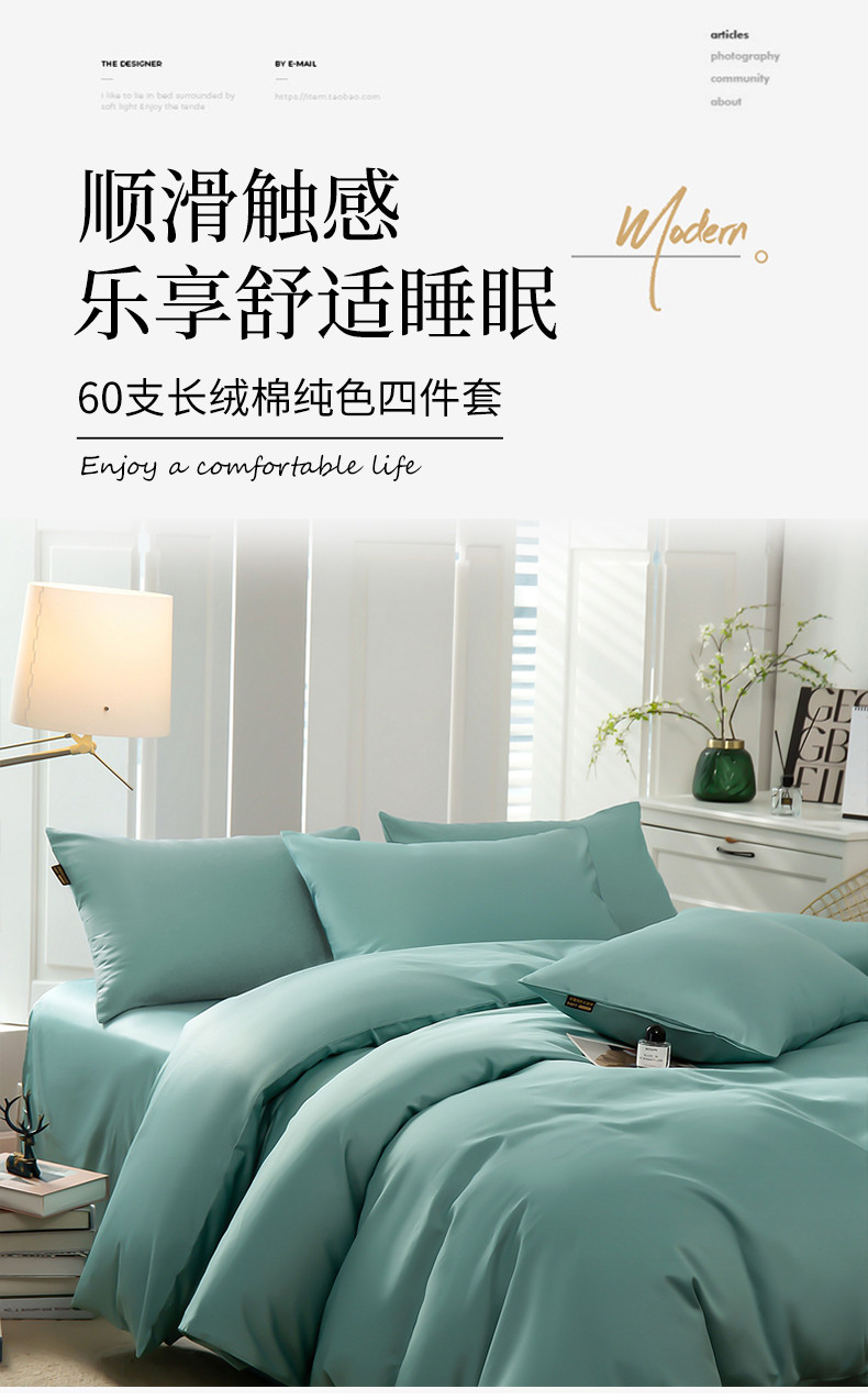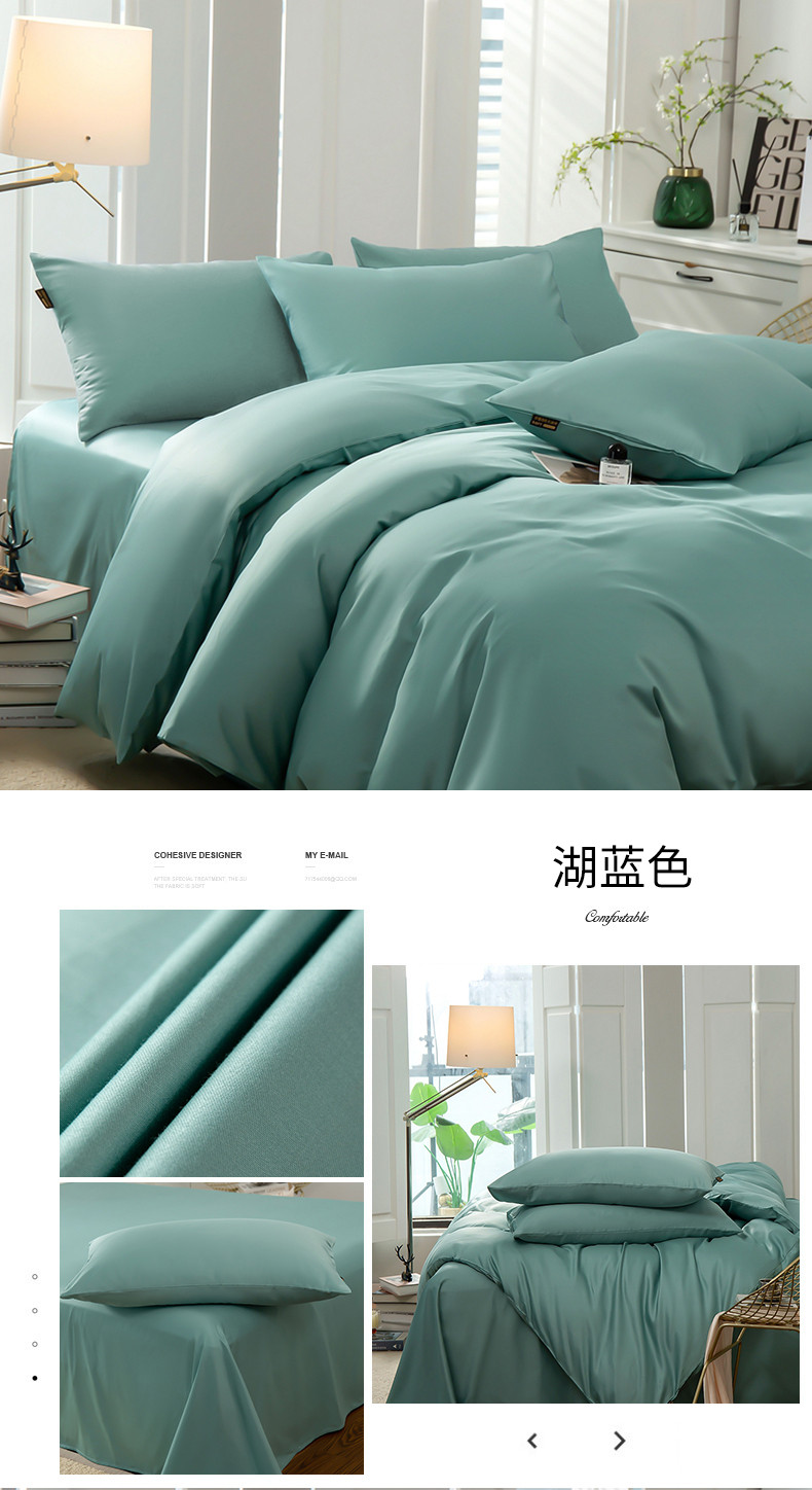 商品名称:莱阁亿 2023新款60支长绒棉纯色四件套 湖蓝色