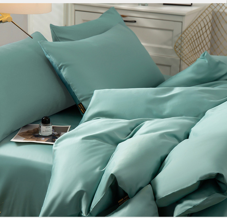 莱阁亿 2023新款60支长绒棉纯色四件套 湖蓝色