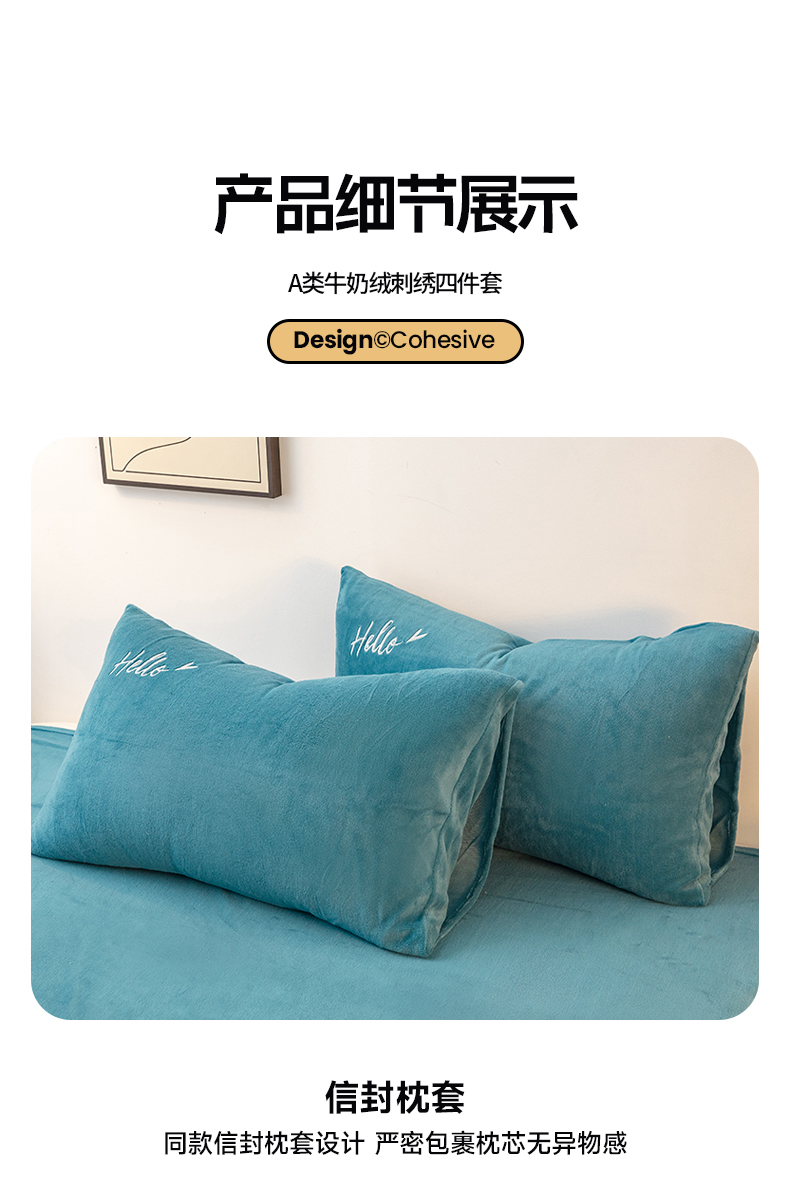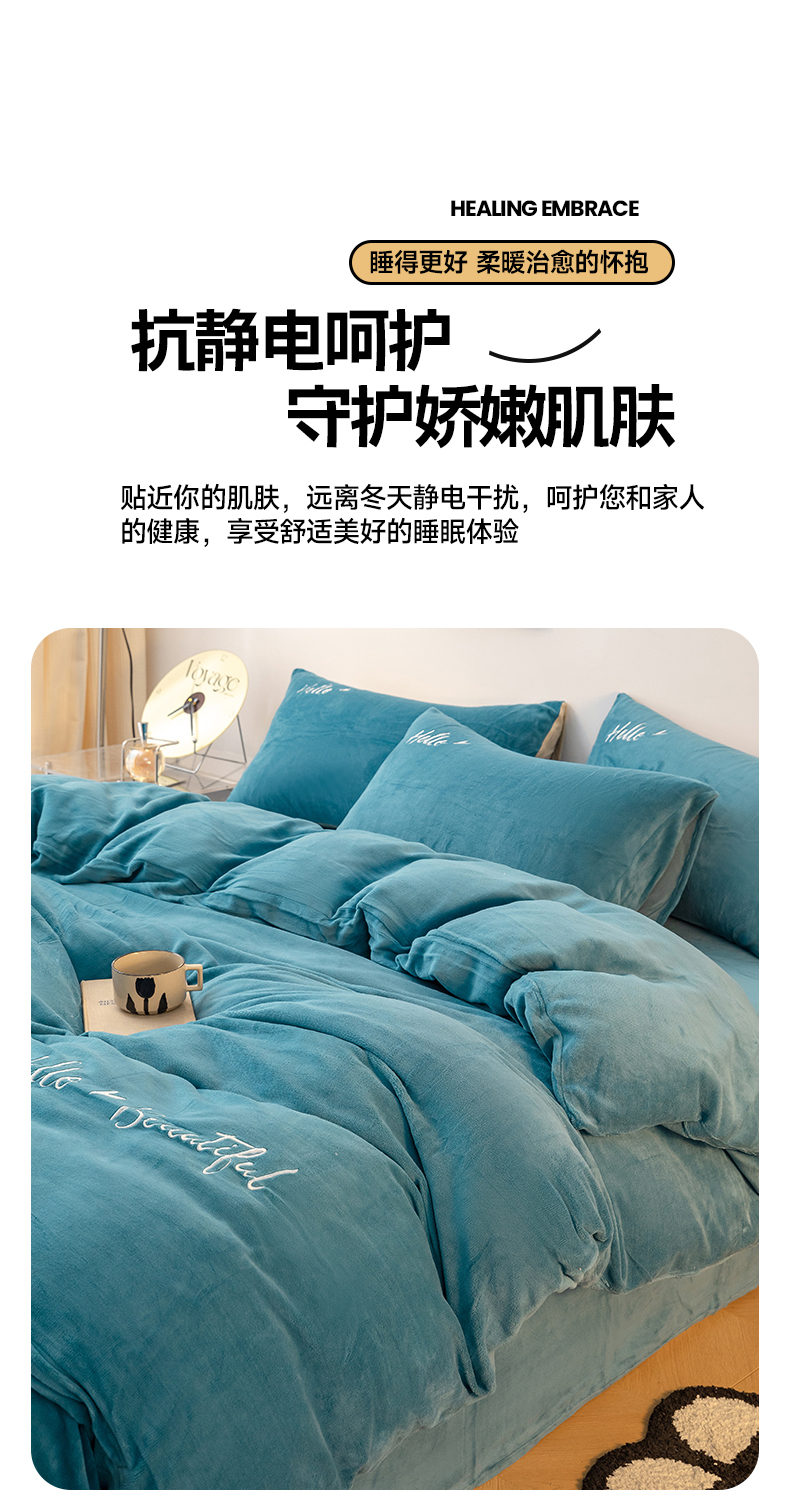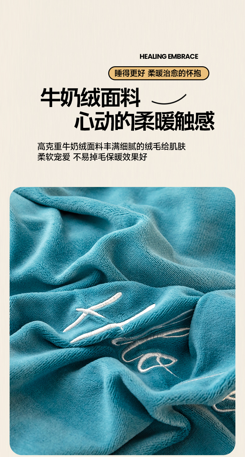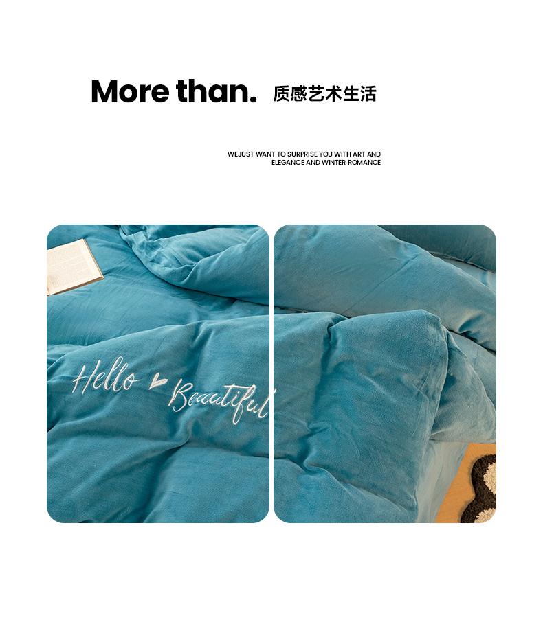 当前位置: 91家纺网 > 商品网购 > 床品套件 > 四件套 > 牛奶绒四件套 > 寐眠 2023新款牛奶绒刺绣四件套 Hello life雾蓝纯色