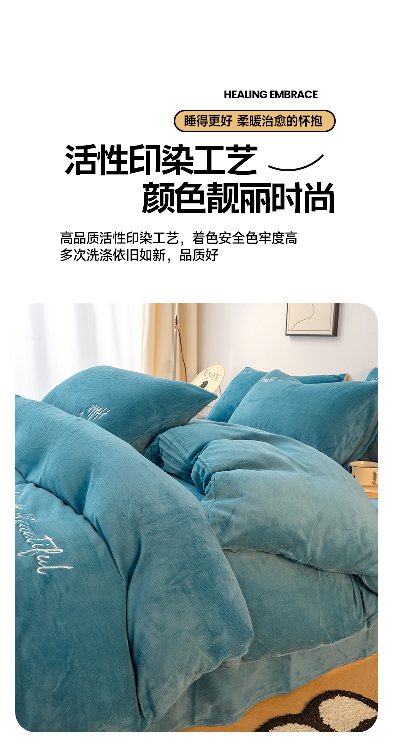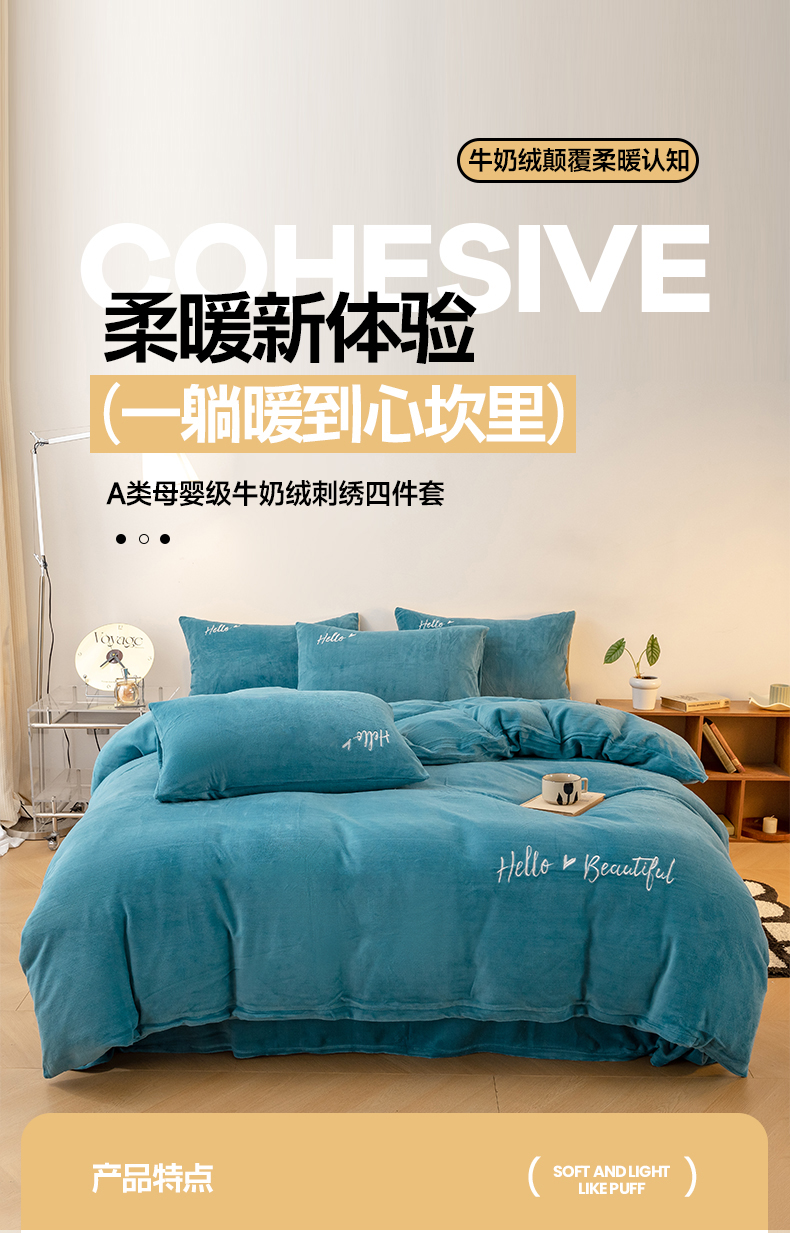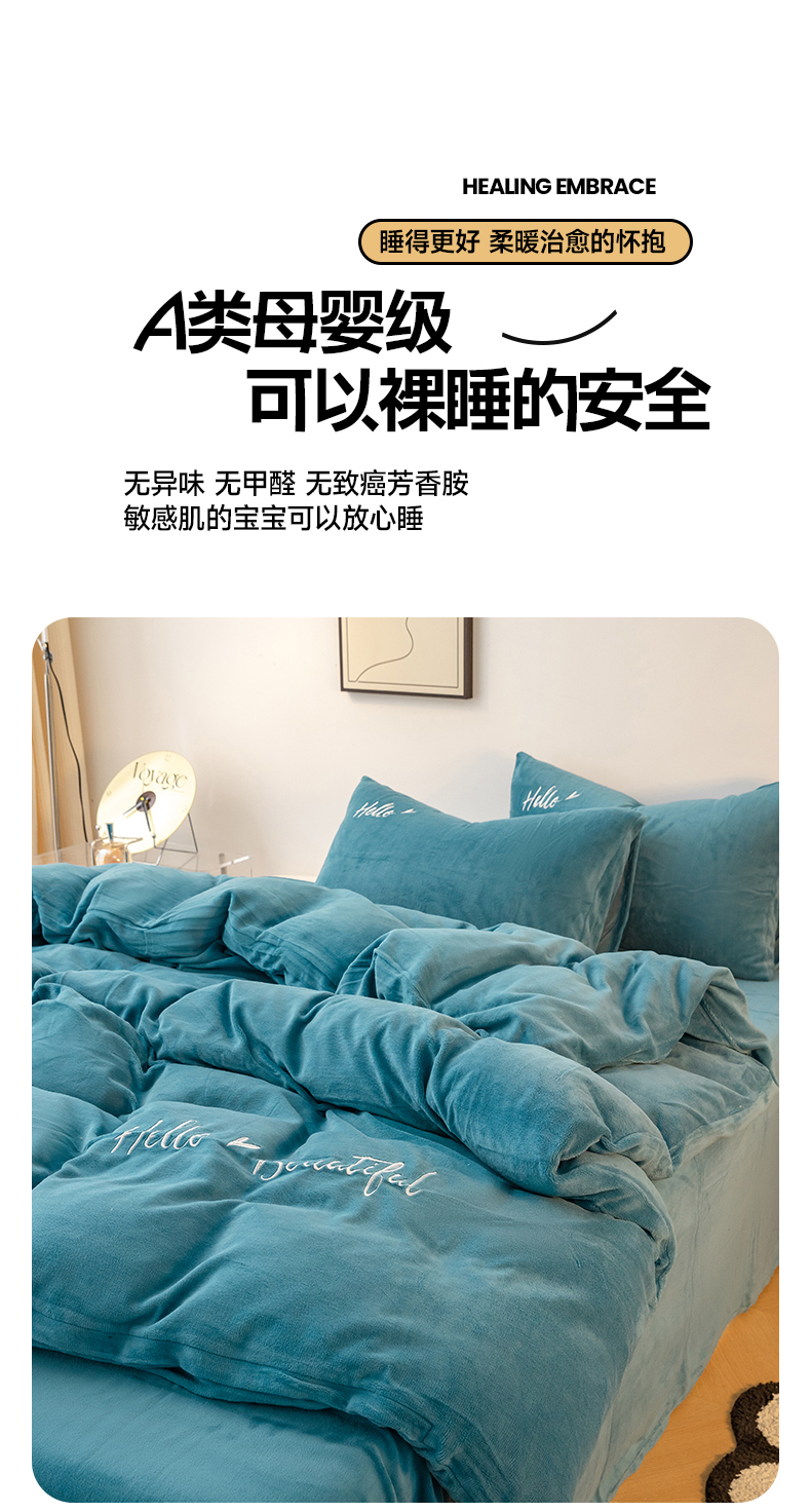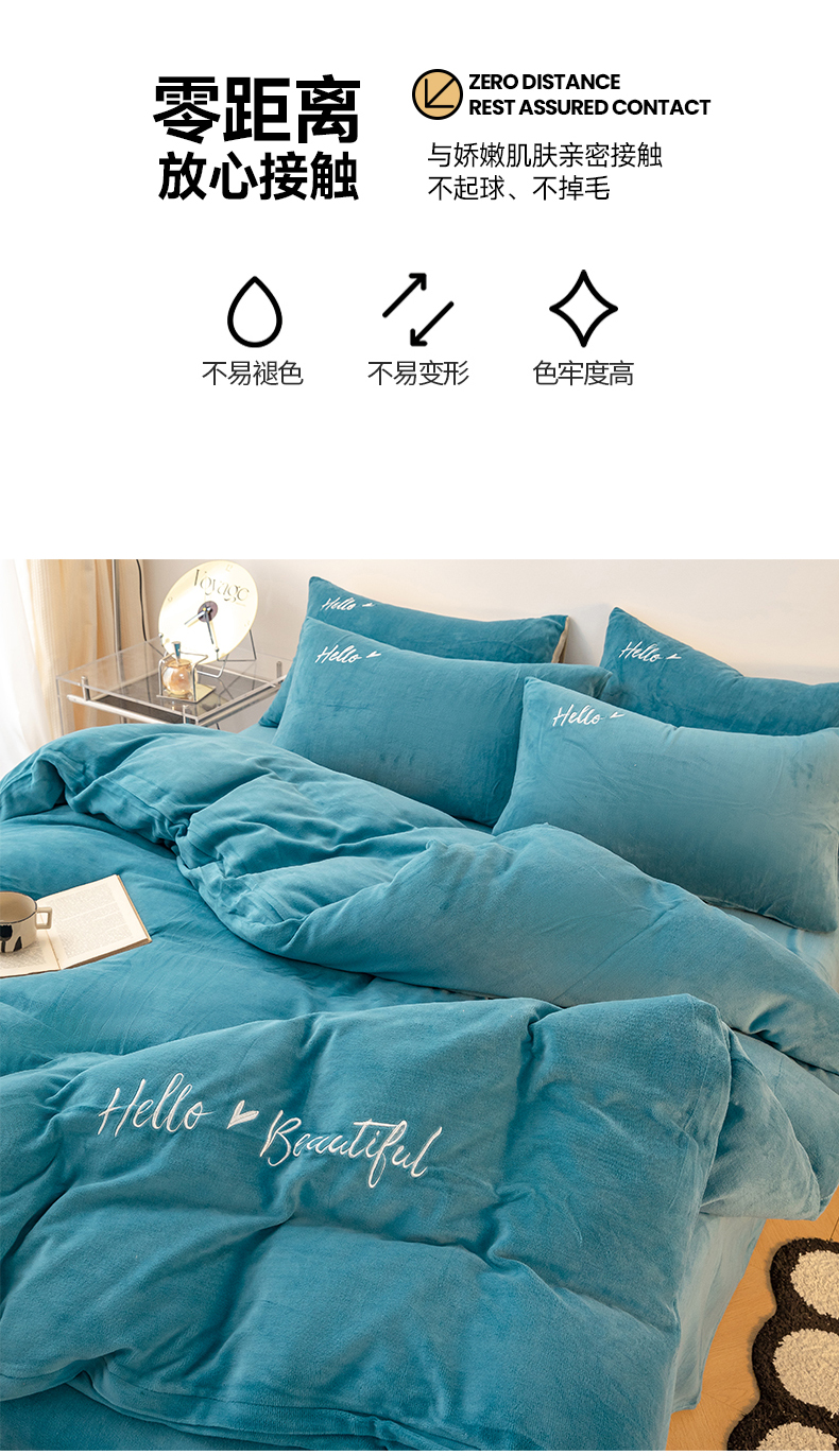 当前位置: 91家纺网 > 商品网购 > 床品套件 > 四件套 > 牛奶绒四件套 > 寐眠 2023新款牛奶绒刺绣四件套 Hello life雾蓝纯色