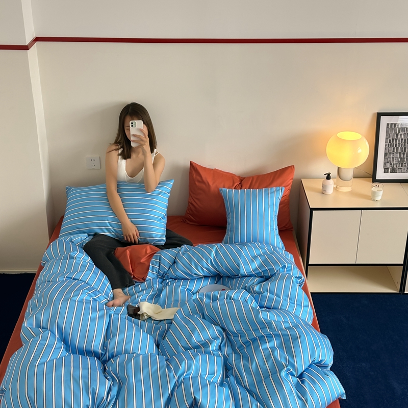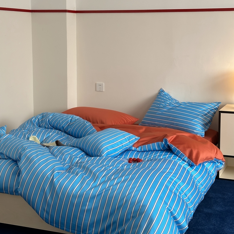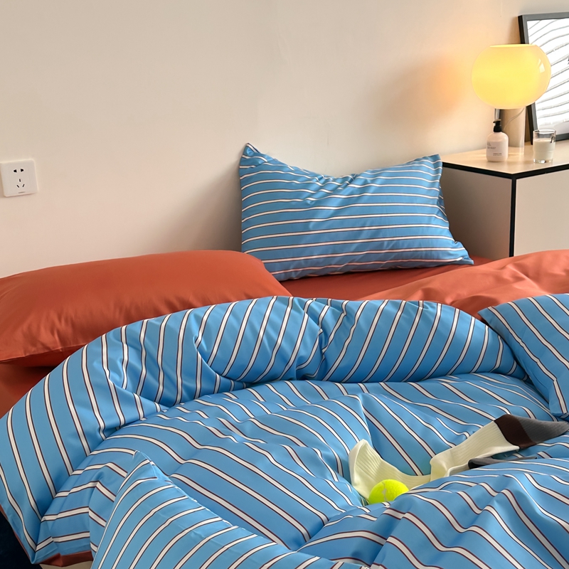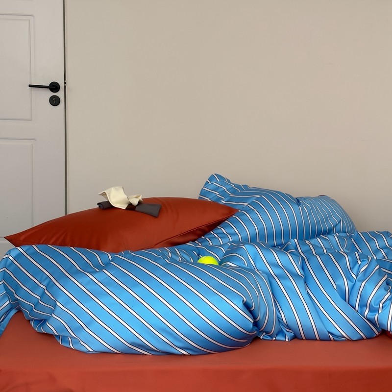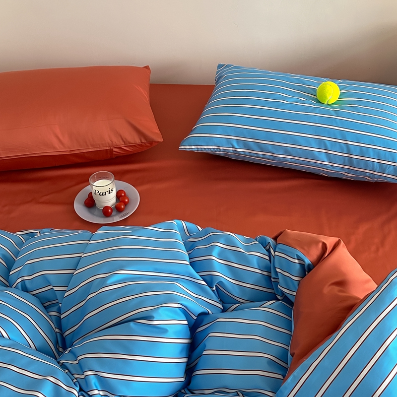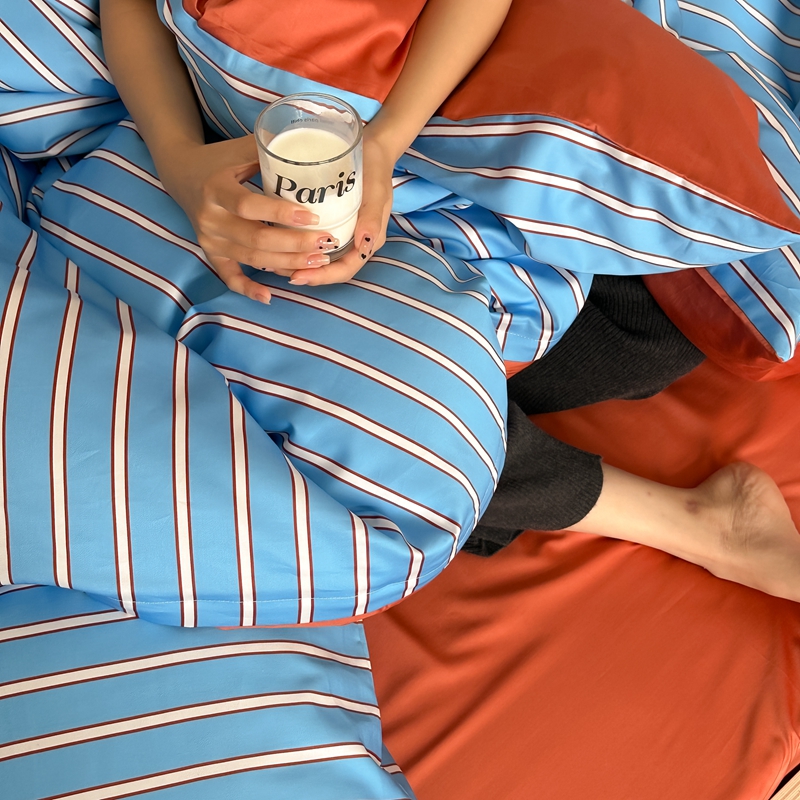 (总)时年2022新款全棉40支13372ins条纹款四件套,复古钴蓝,复古奶绿