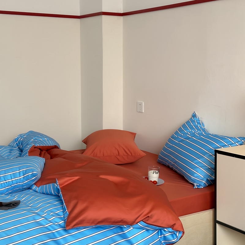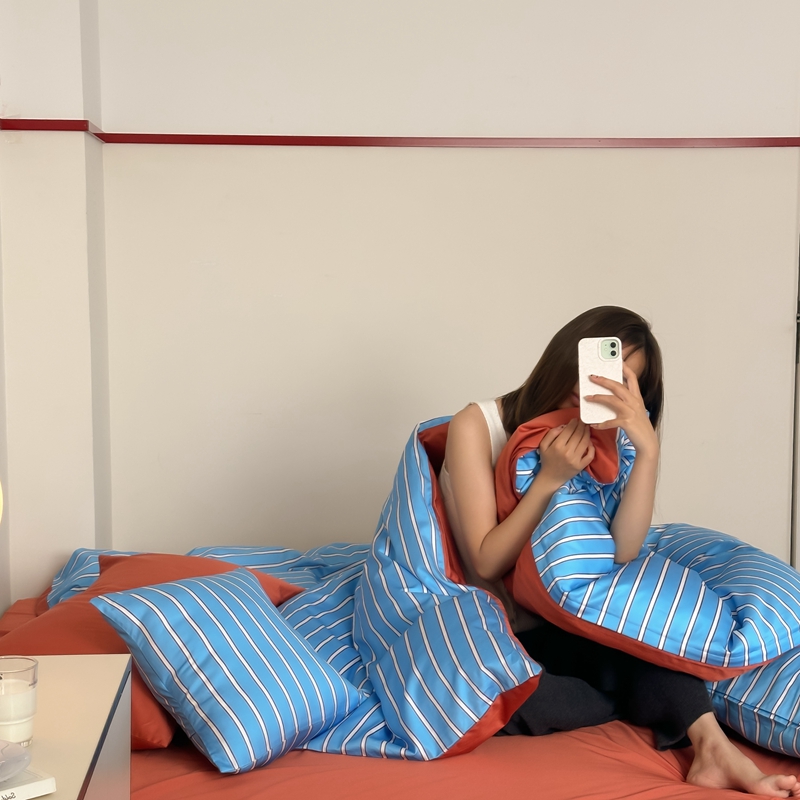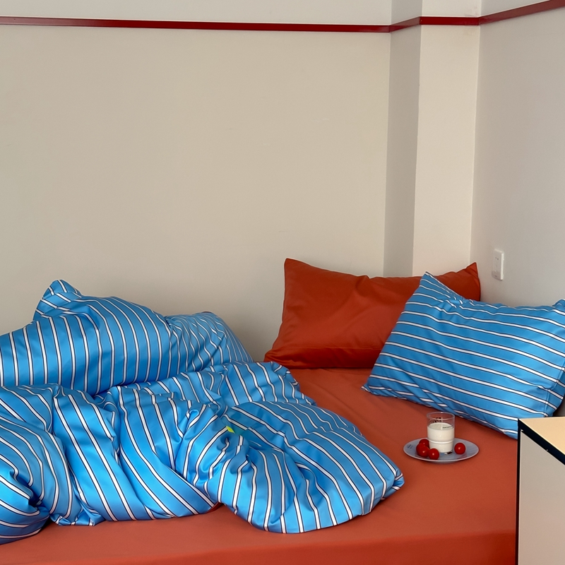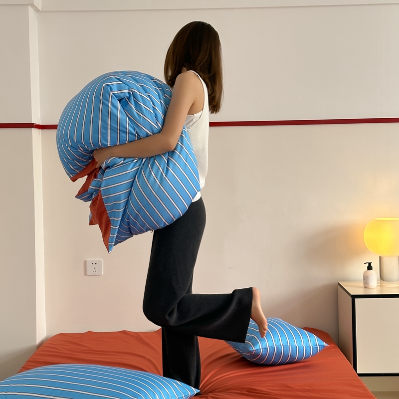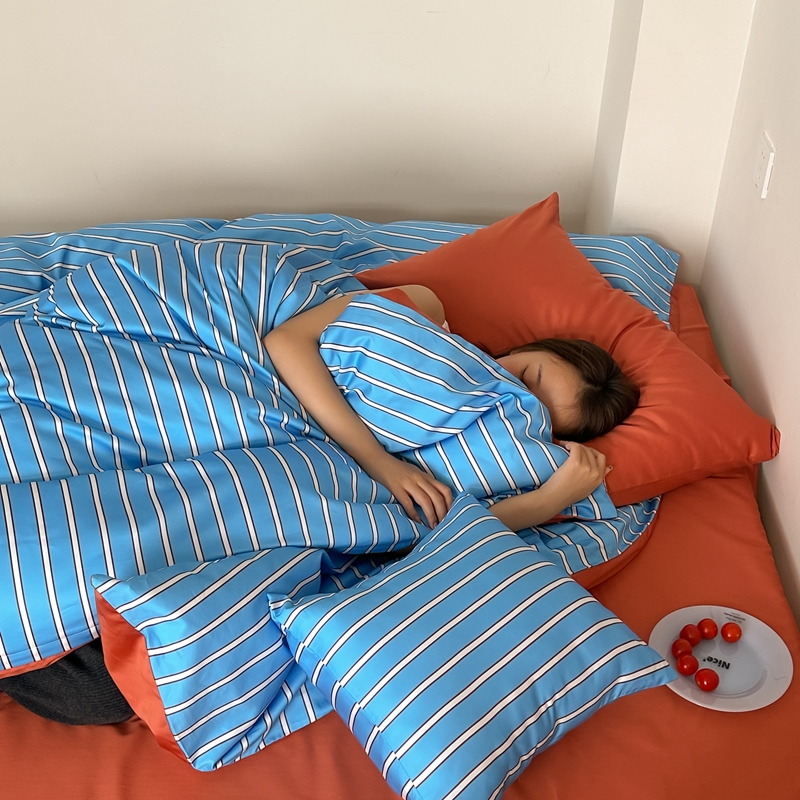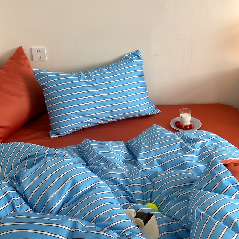 (总)时年2022新款全棉40支13372ins条纹款四件套,复古钴蓝,复古奶绿
