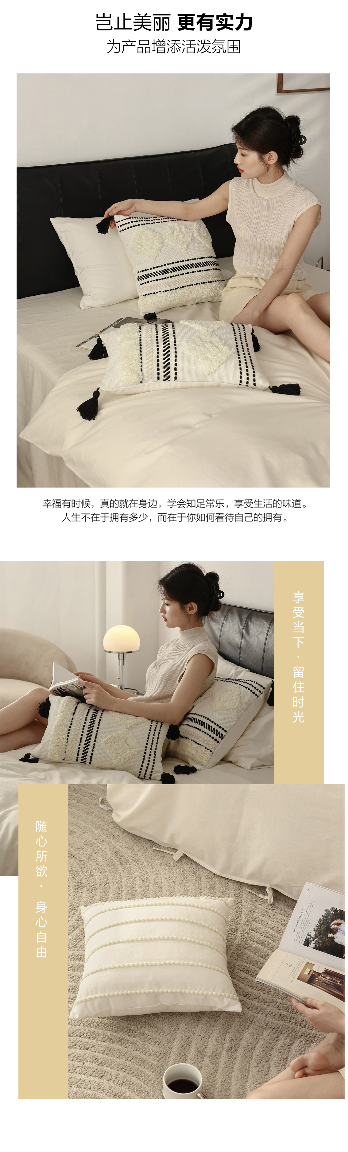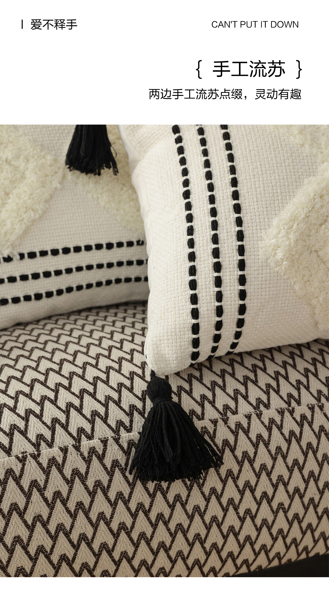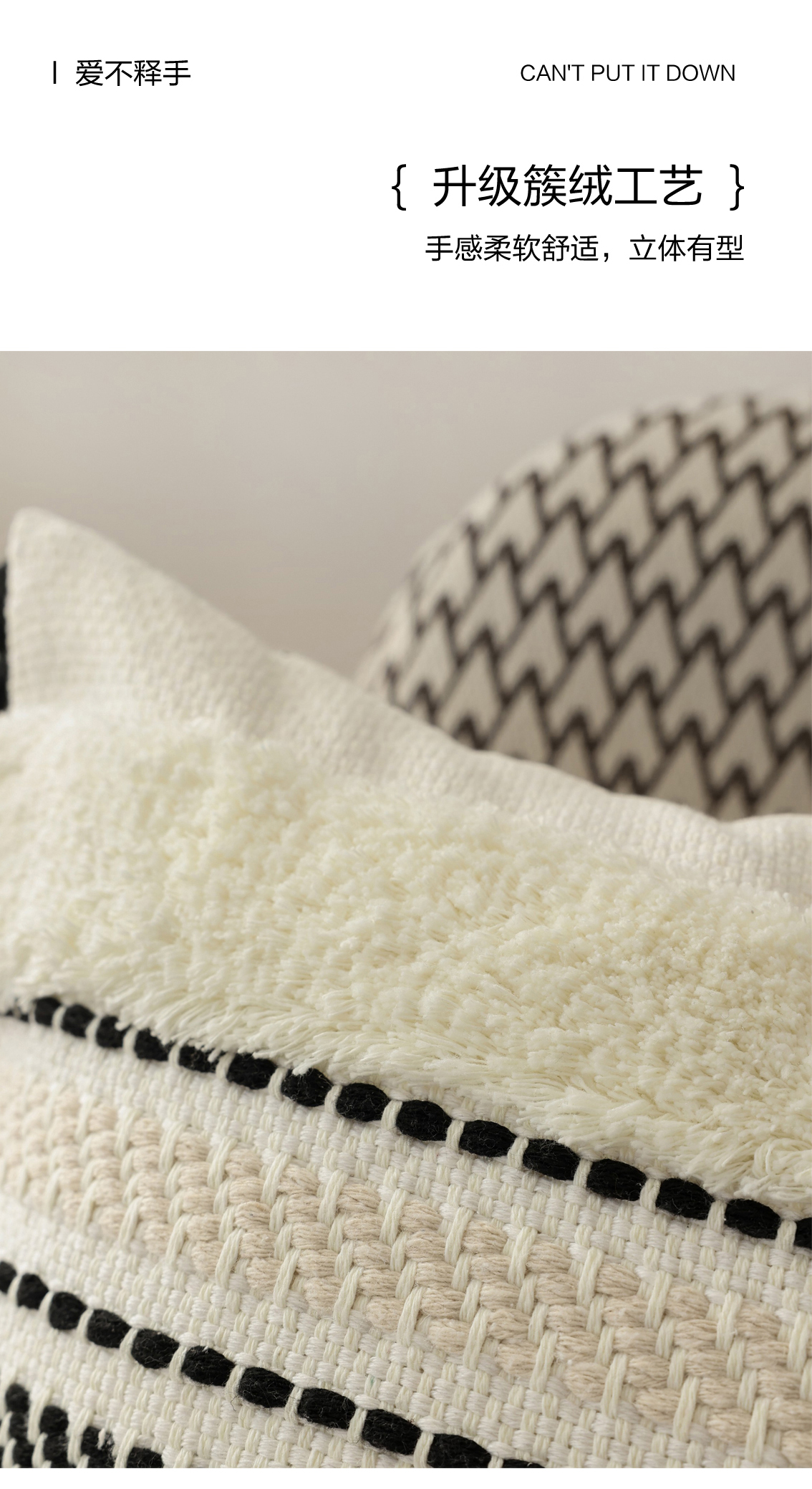 (总)美茉家居 2023新款黑白流苏簇绒抱枕