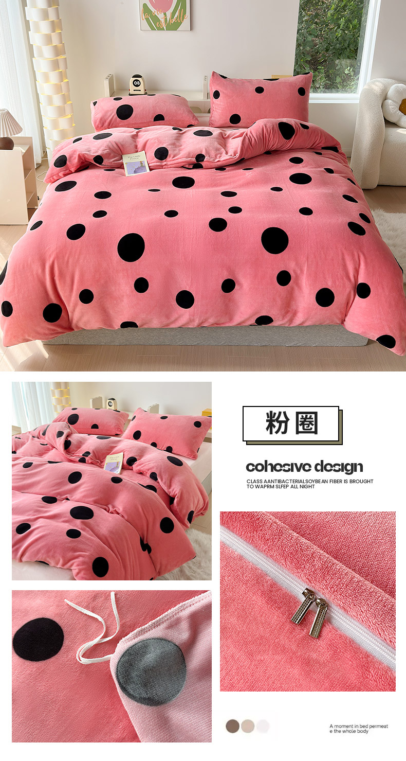 商品名称:怡家居 2023新款高克重牛奶绒印花四件套 粉圈