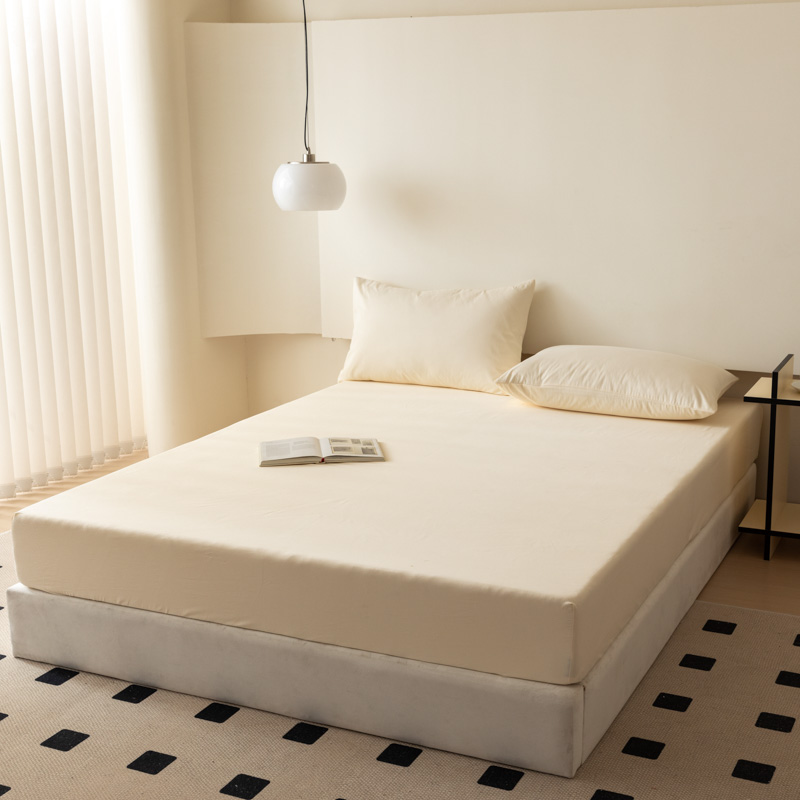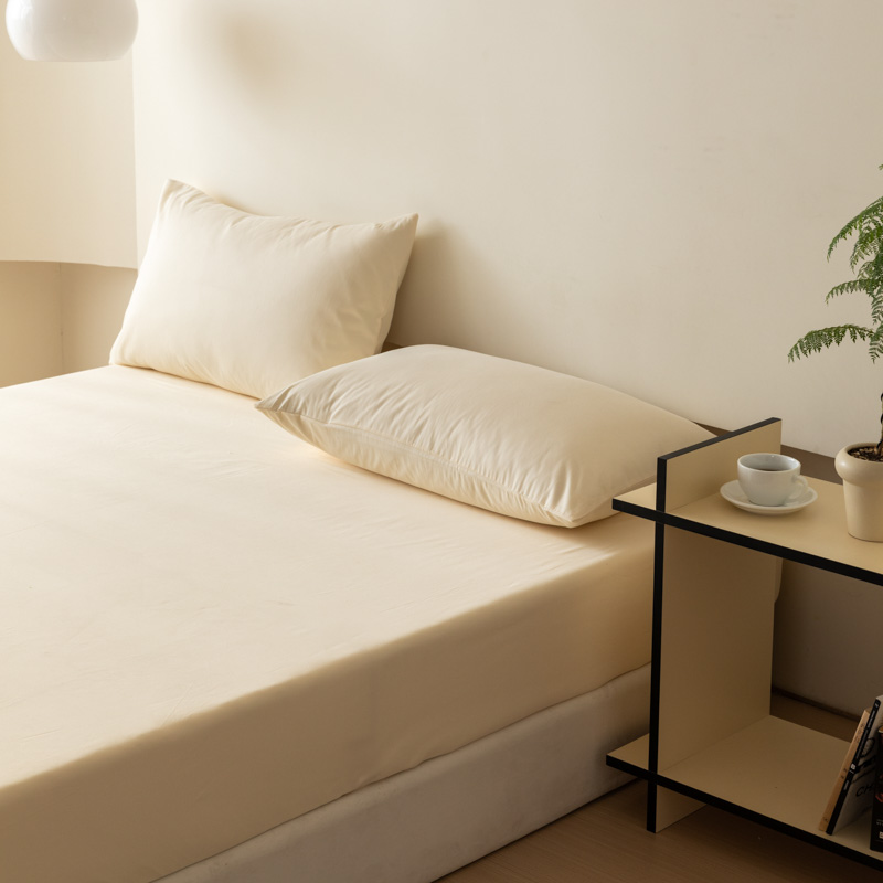 怡家居 2023新款全棉100支磨毛纯色单品床笠 奶昔白