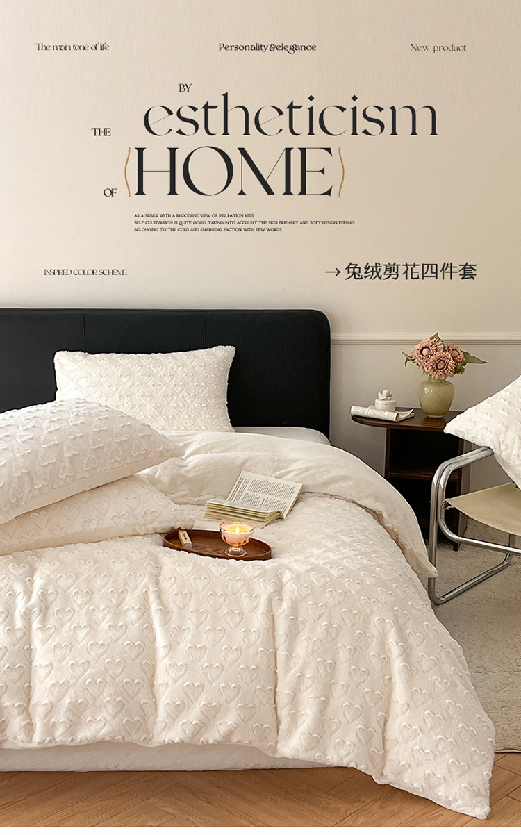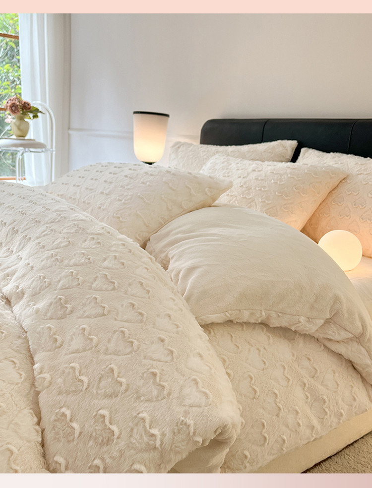 (总)慕色 2023新款兔绒爱心剪花四件套--暖心系列