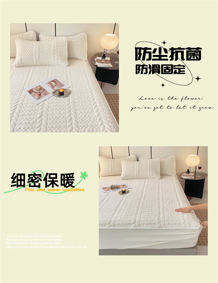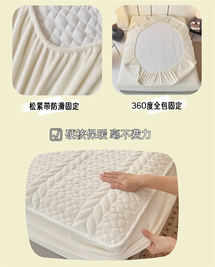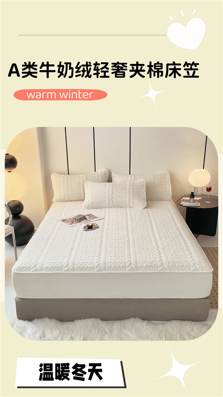 • 91家纺网 家纺一手货源 找家纺 梦舒羽 2025牛奶绒轻奢夹棉床笠三件套床盖床罩床护垫床垫保护罩 轻奢-象牙白