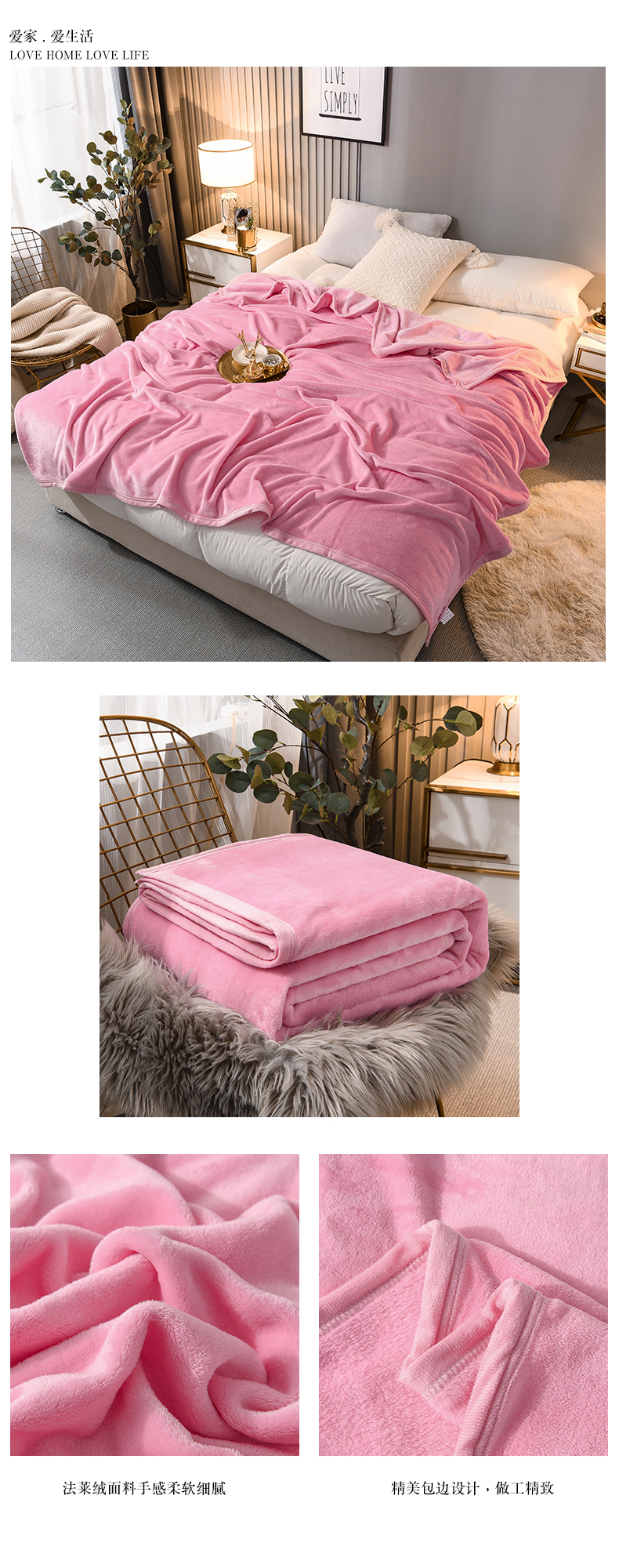 商品名称:仟人梦 2024新款纯色法莱绒毛毯多功能毛毯 粉色