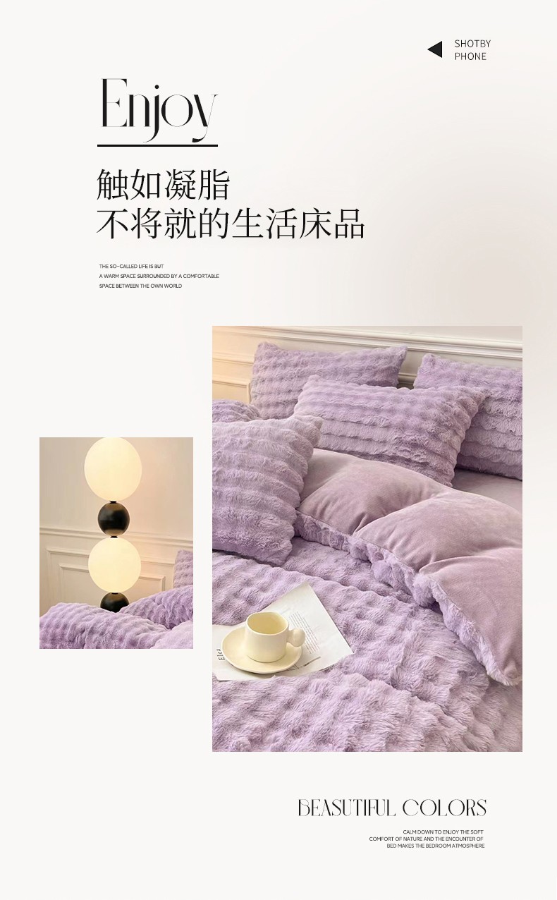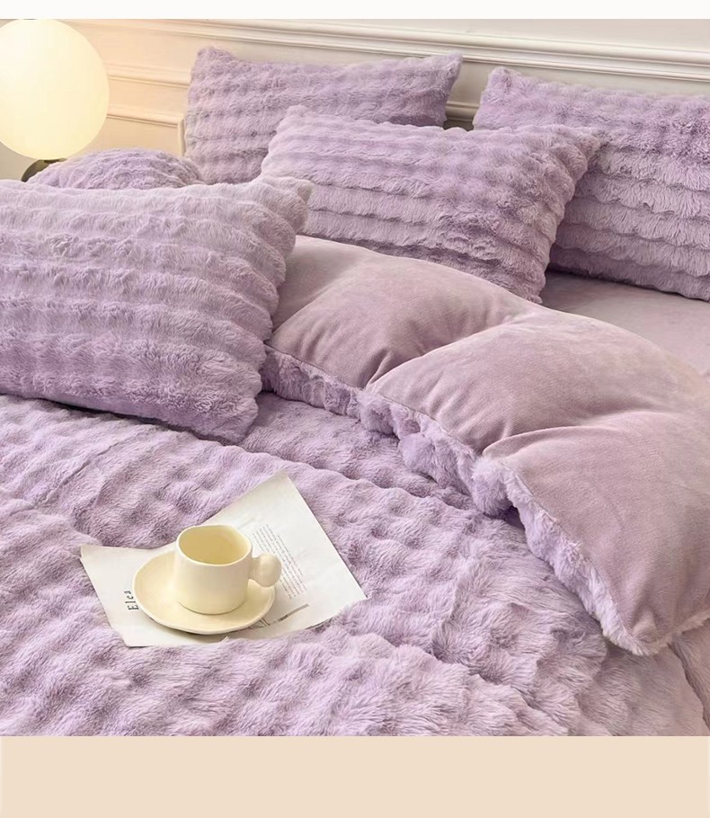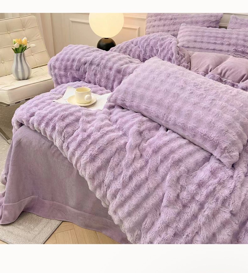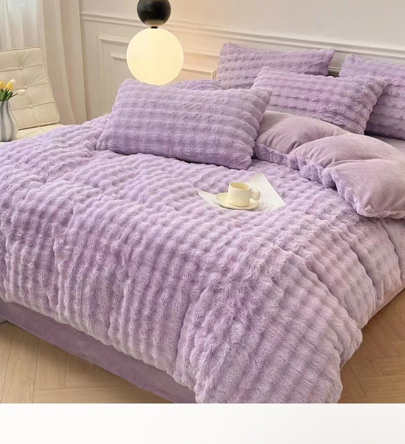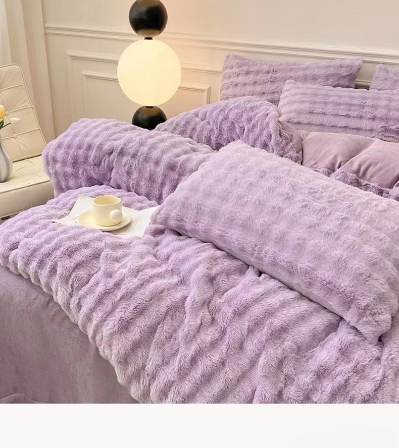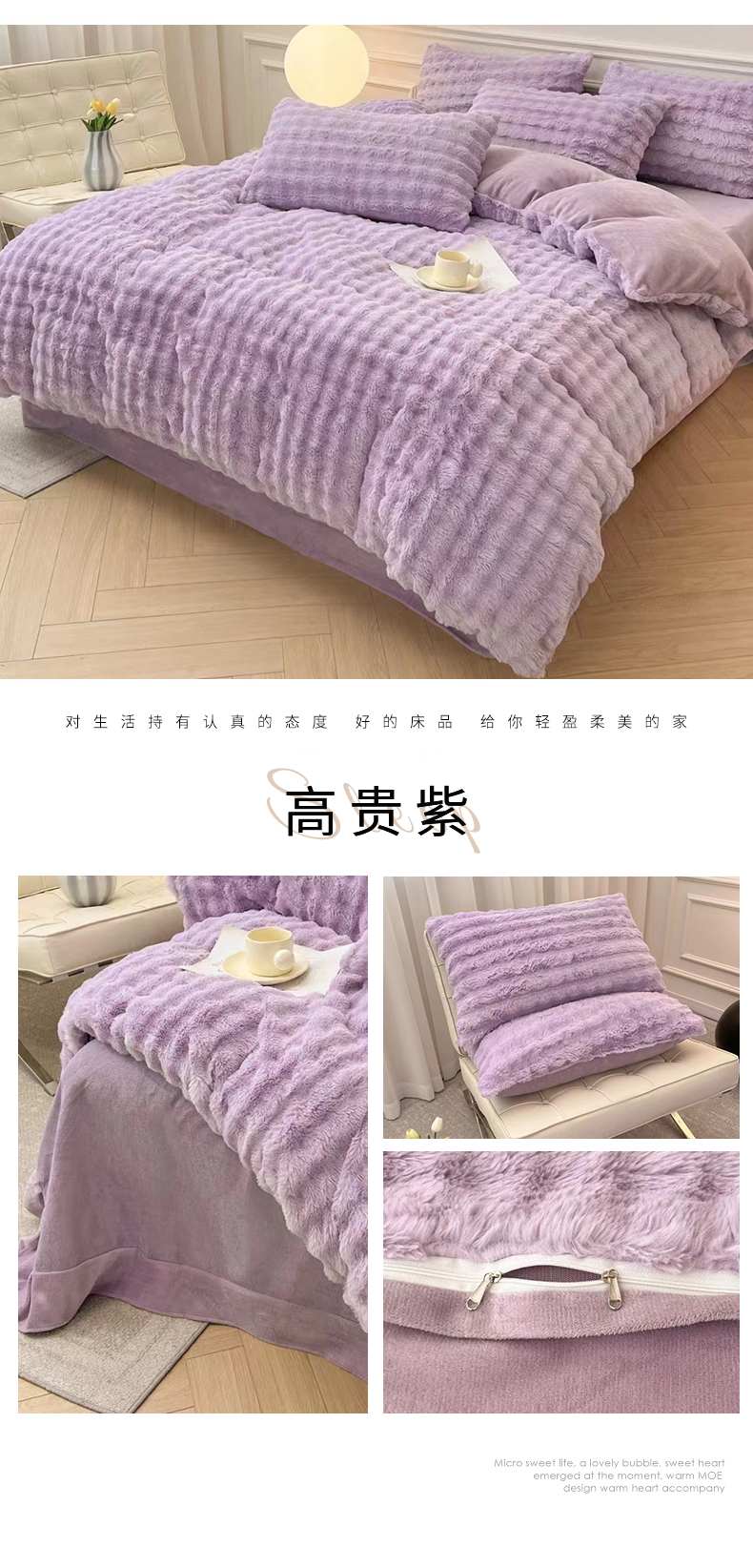 畅畅家纺 2023新款加厚AB版大泡泡绒皮草兔毛四件套 大泡泡高贵紫
