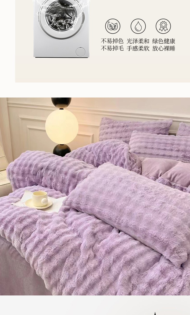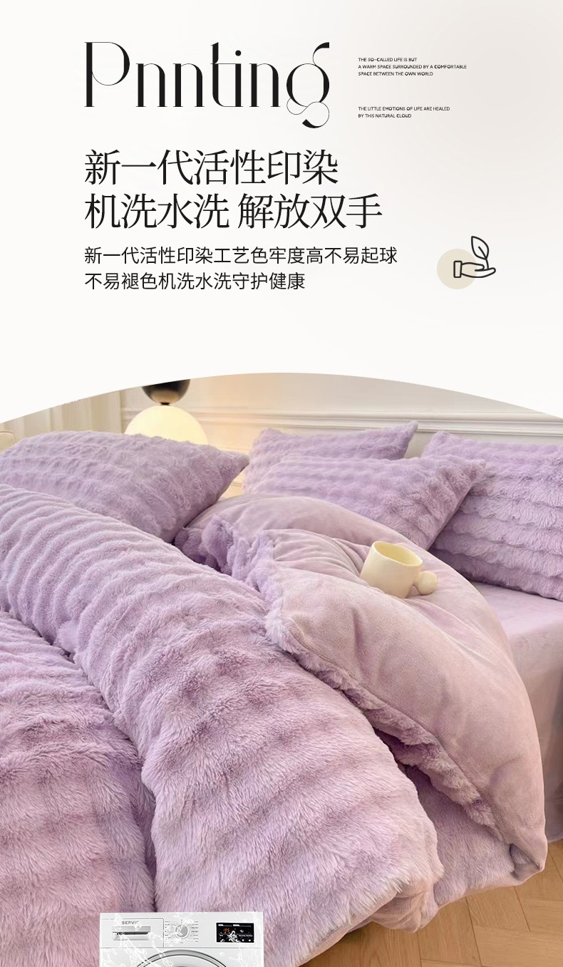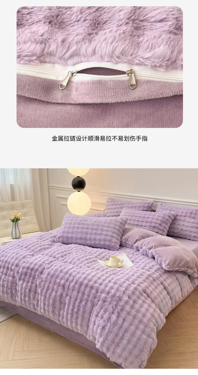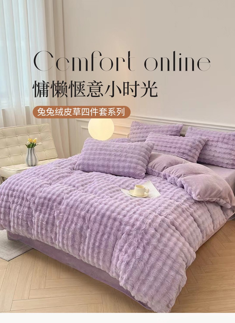 商品名称:畅畅家纺 2023新款加厚AB版大泡泡绒皮草兔毛四件套 大泡泡高贵紫