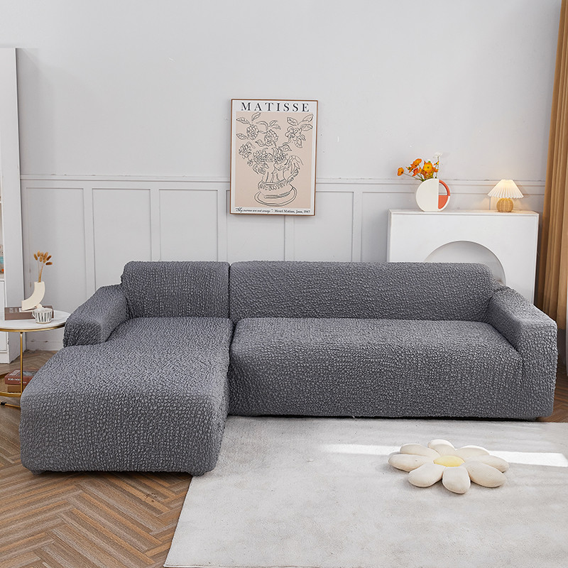 丝绮鹿 2023新款日式皱皱布沙发套贵妃图 摩登浅灰