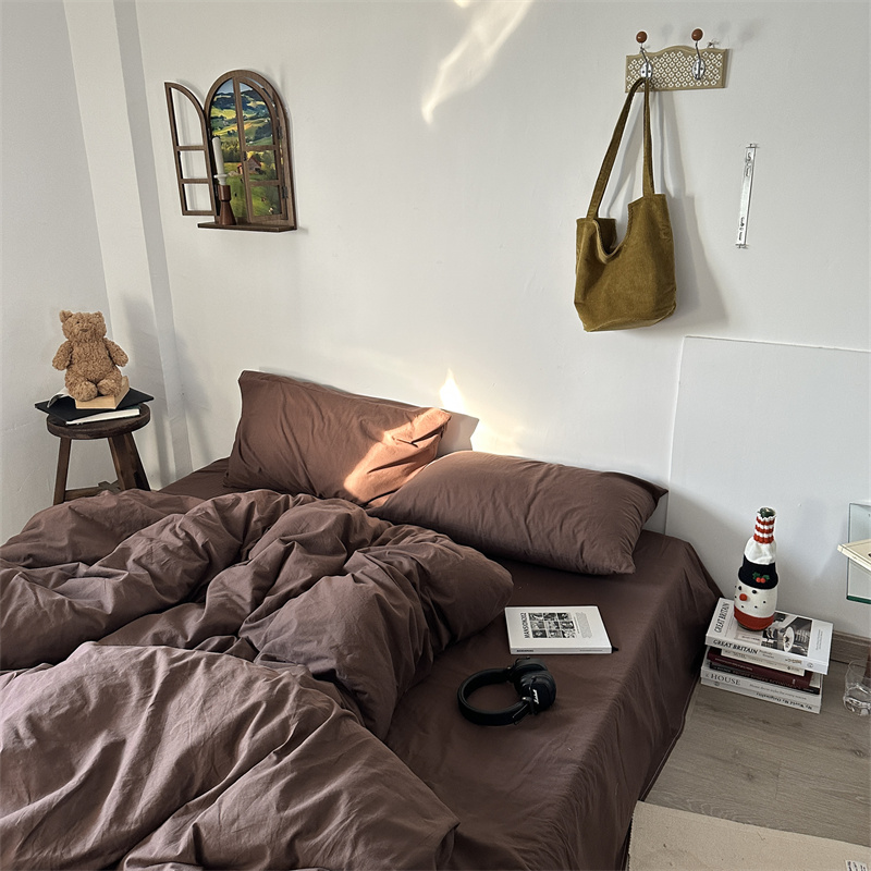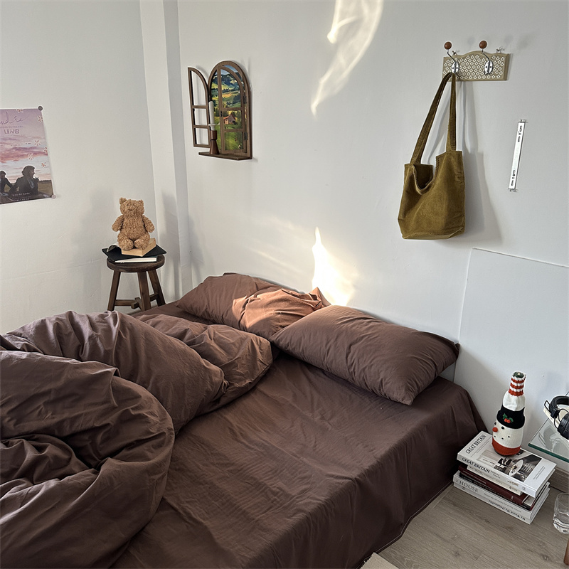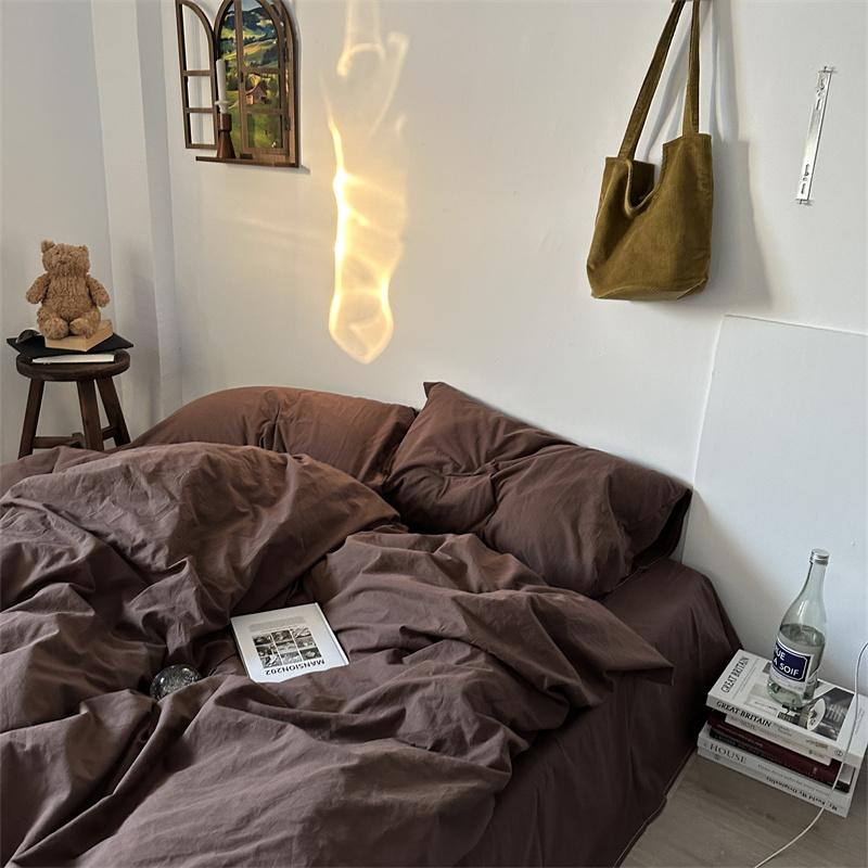 当前位置: 91家纺网 > 商品网购 > 床品套件 > 四件套 > 水洗棉四件套 > (总)恋恋三季 2024新款水洗棉混搭深色系黑标版纯色摩卡四件套-风格二
