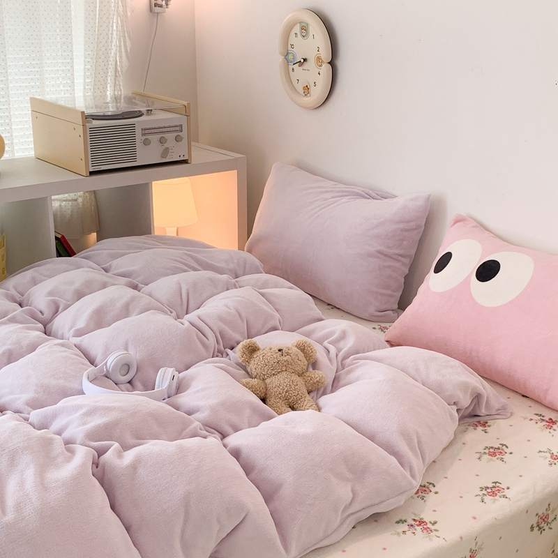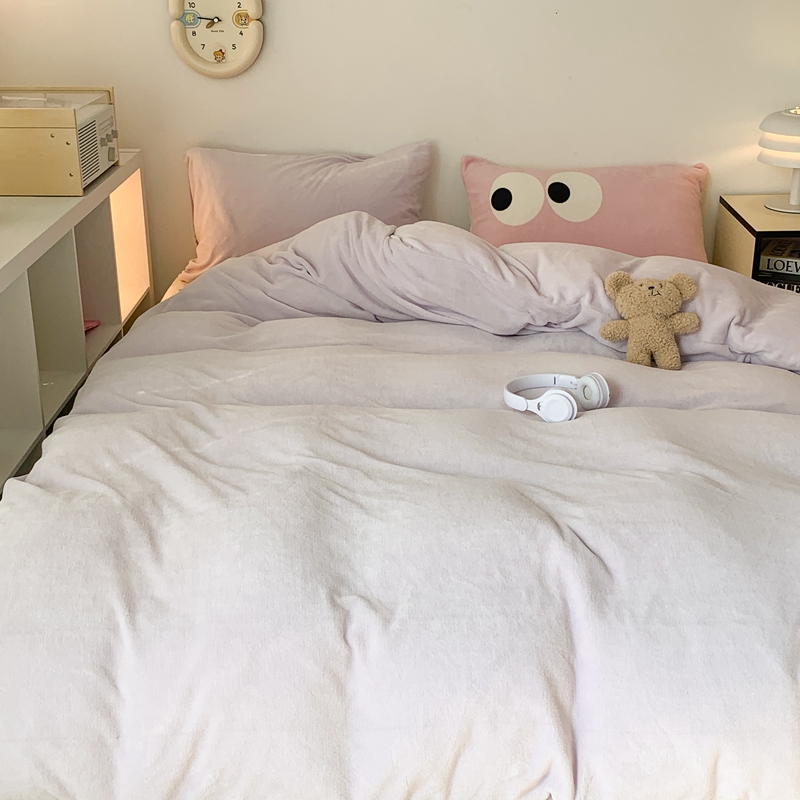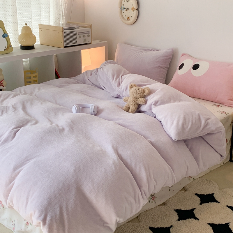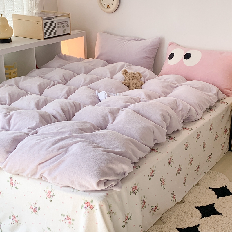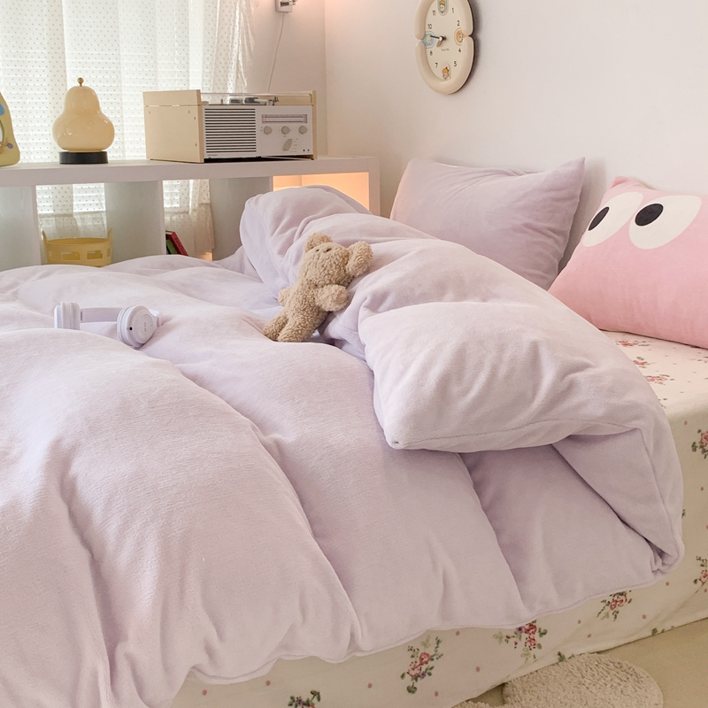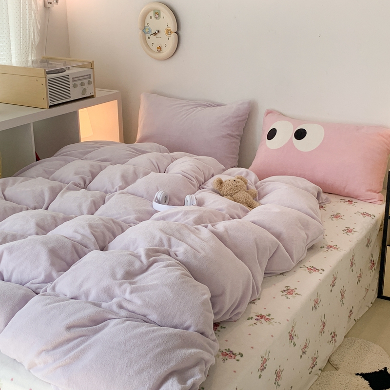 昔可家纺 2023新款混搭牛奶绒四件套 奶酥紫