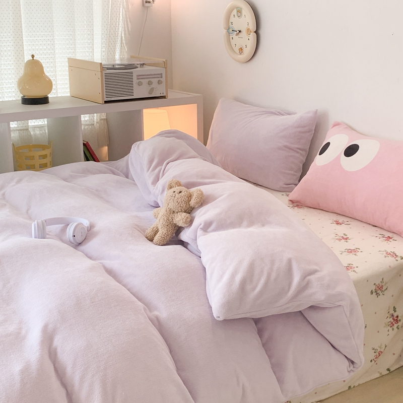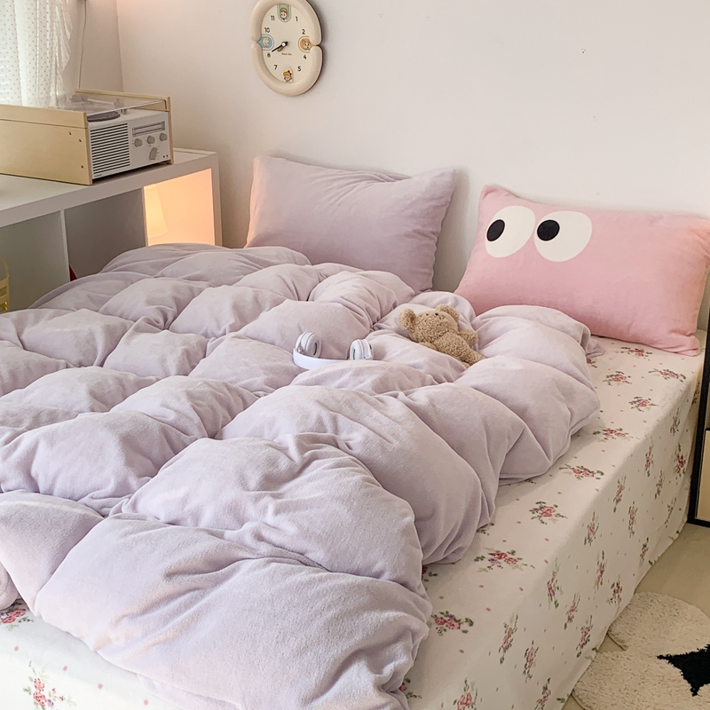 商品名称:昔可家纺 2023新款混搭牛奶绒四件套 奶酥紫