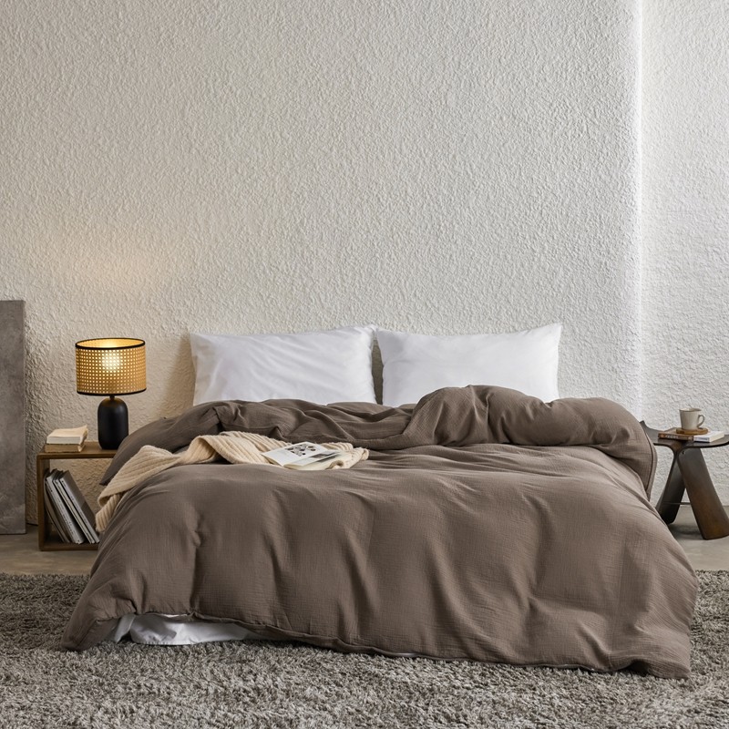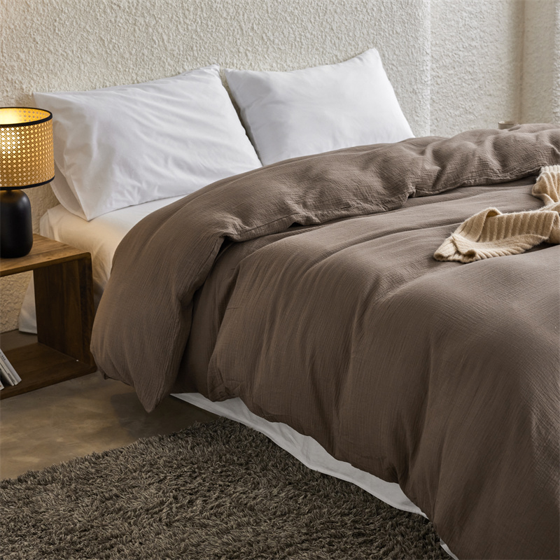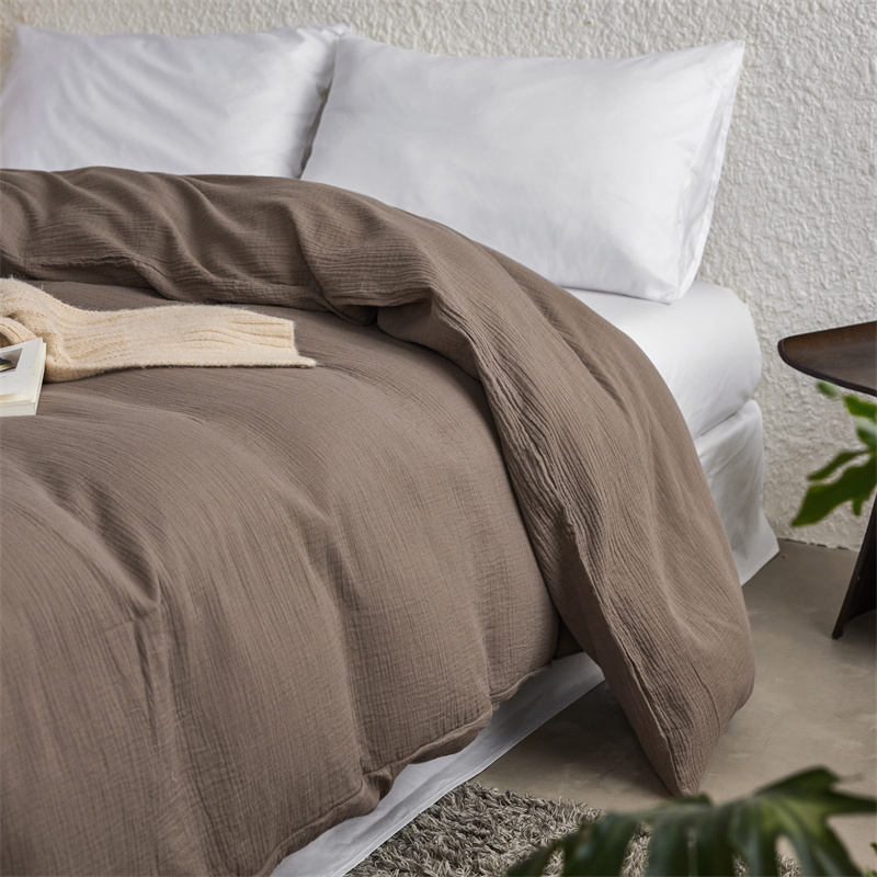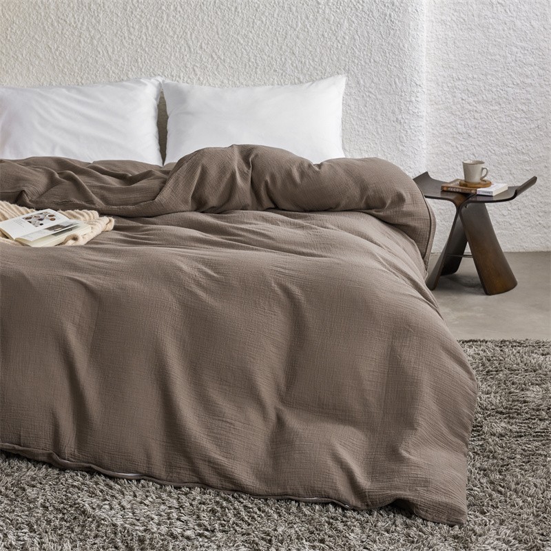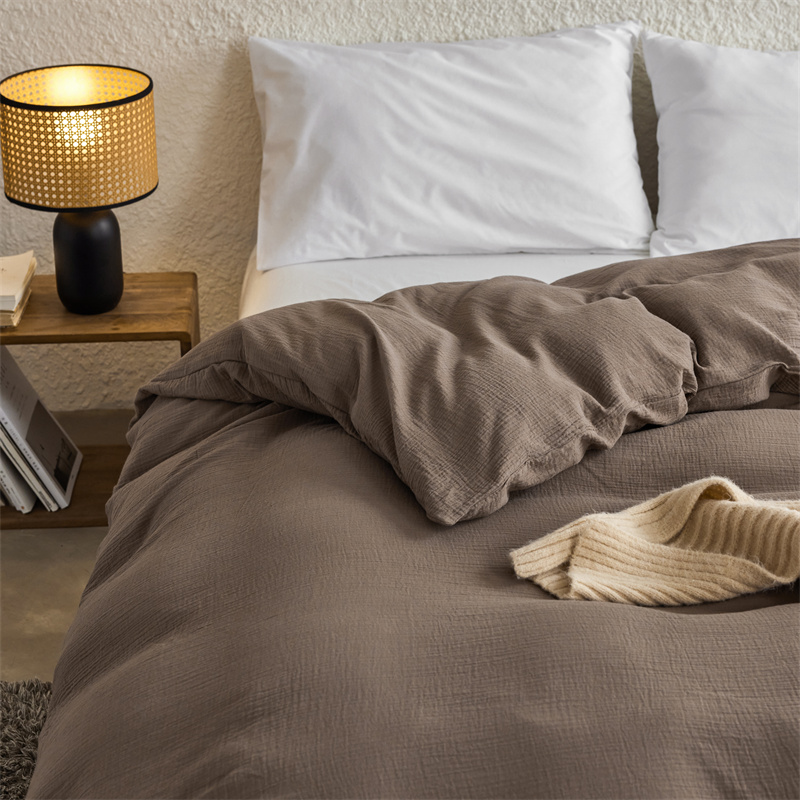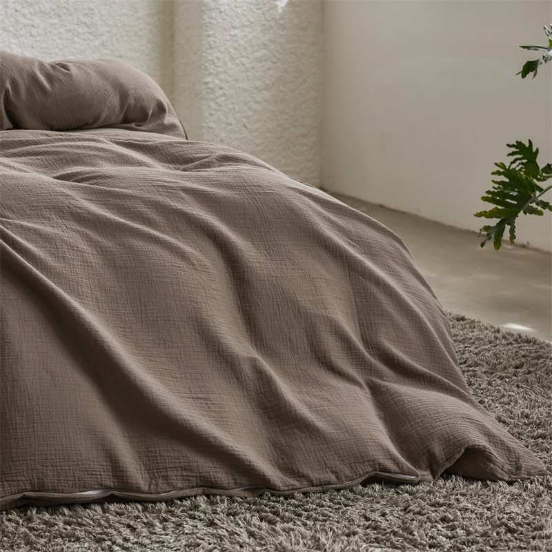 安莱生活2024新款绉纱美拉德色纯色单品被套 糖棕