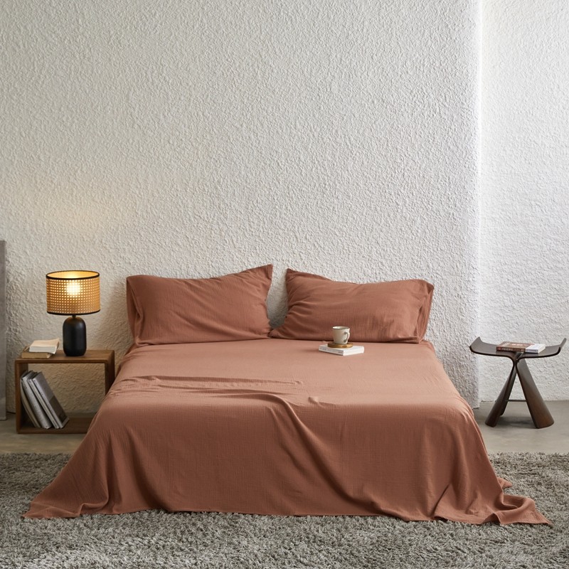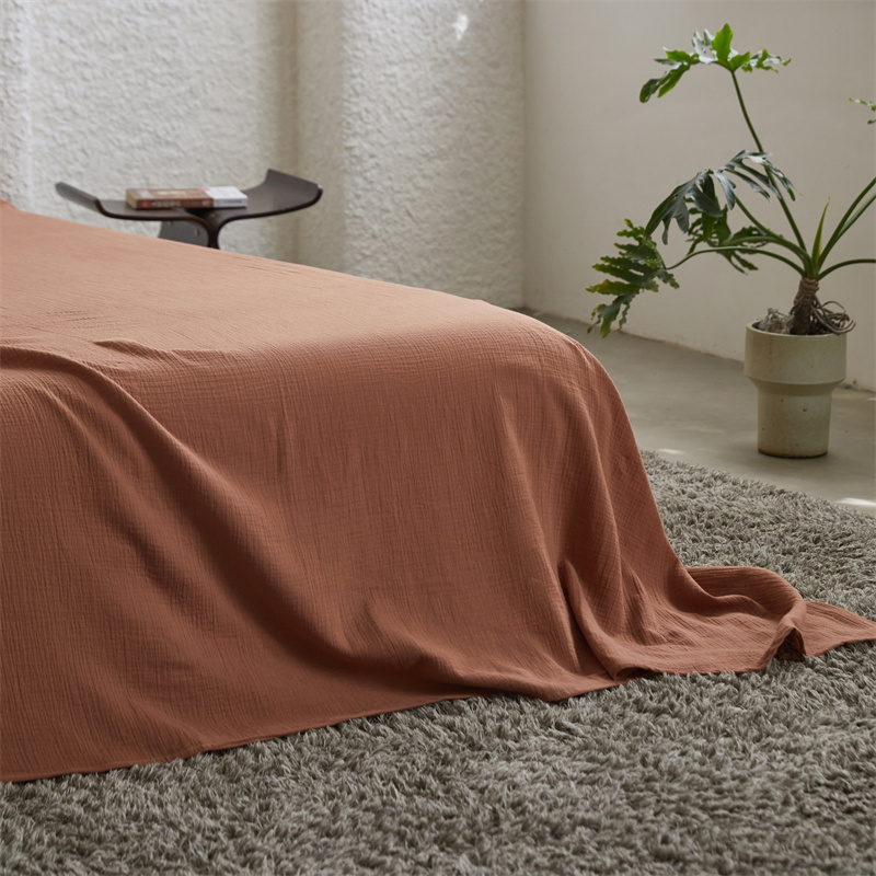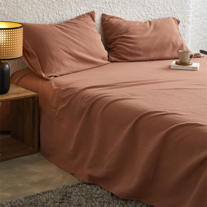 安莱生活2024新款绉纱美拉德色纯色单品床单 太妃