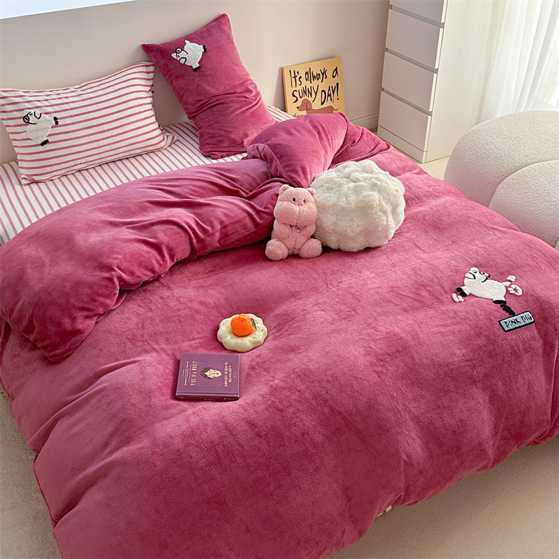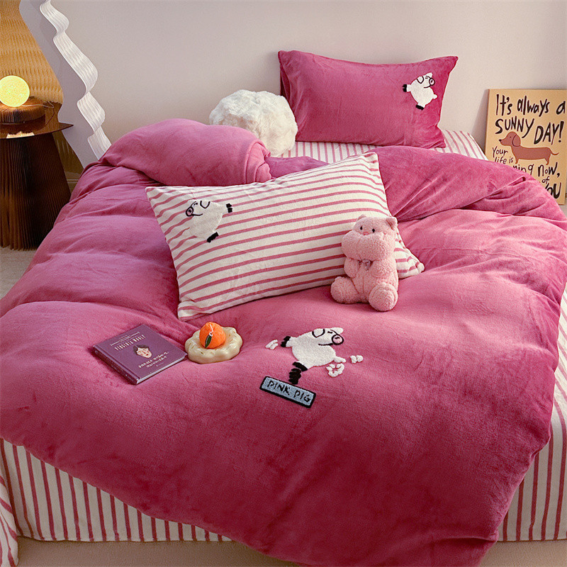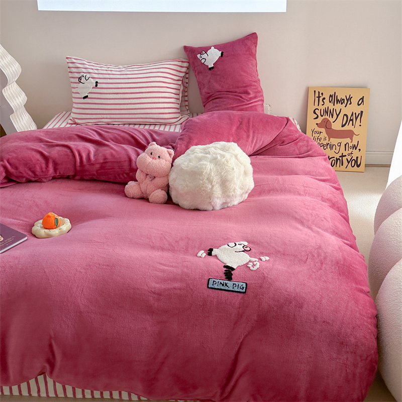 商品名称:柚子YOUTH 2023新款高克重牛奶绒毛巾绣四件套 粉红猪