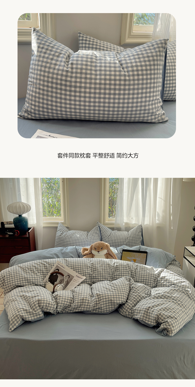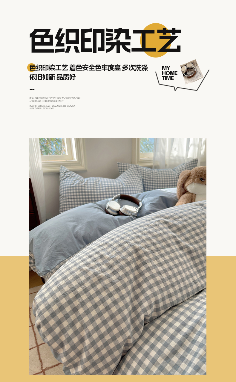商品名称:雅居纺家纺 2024新款色织水洗棉四件套 蓝小格