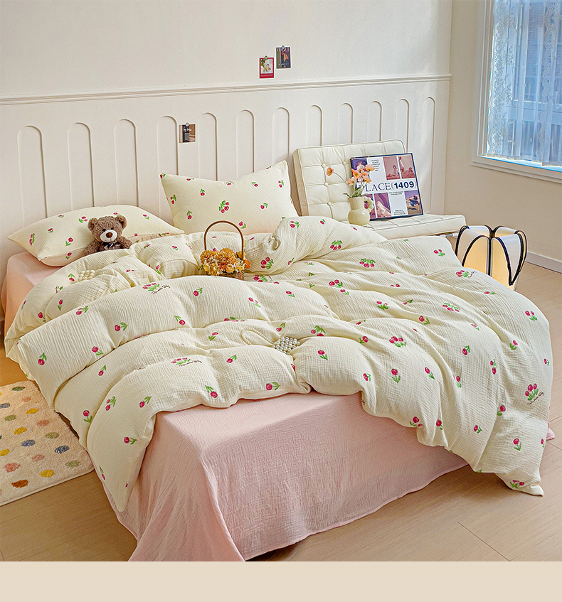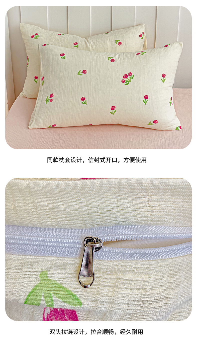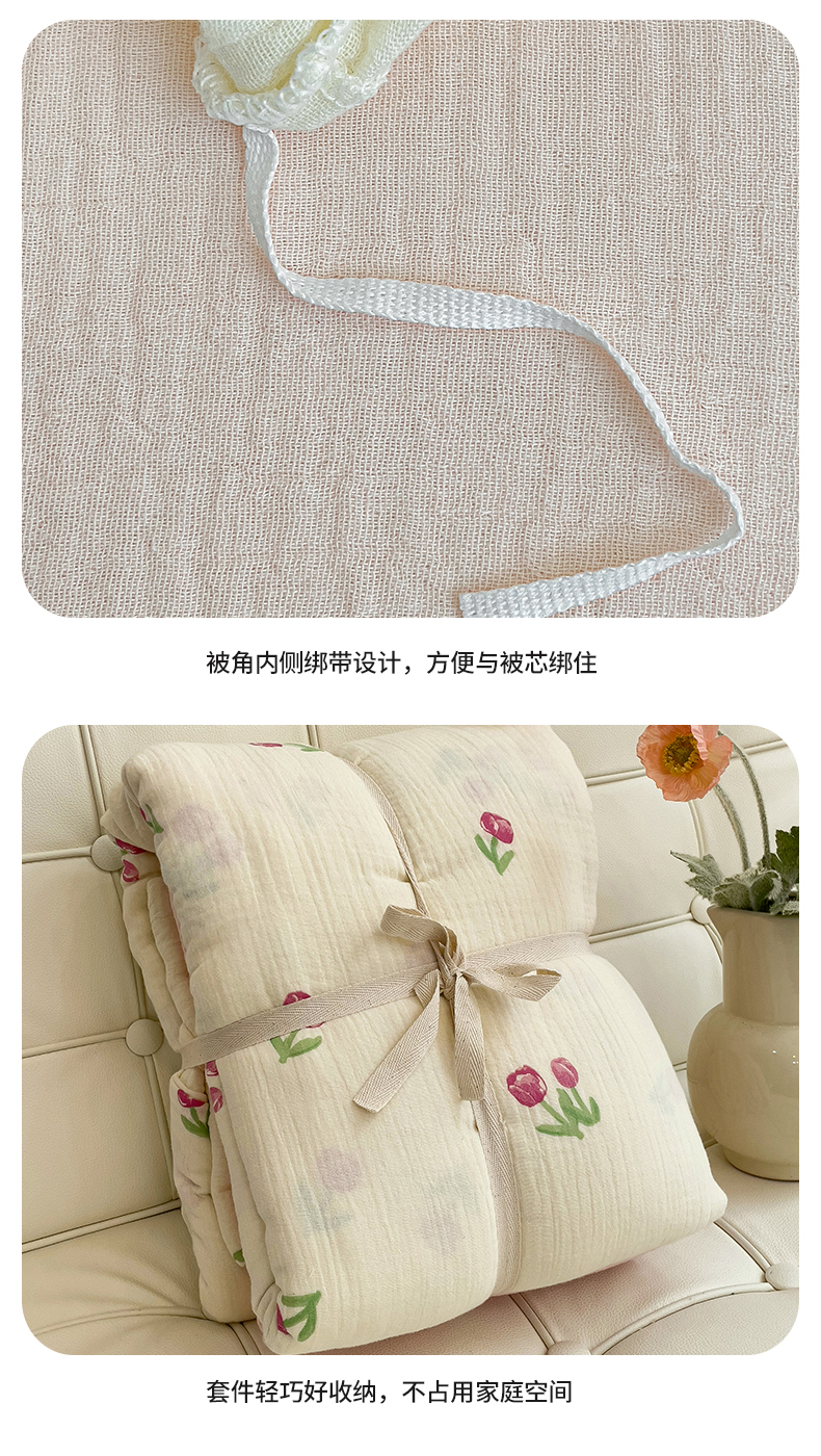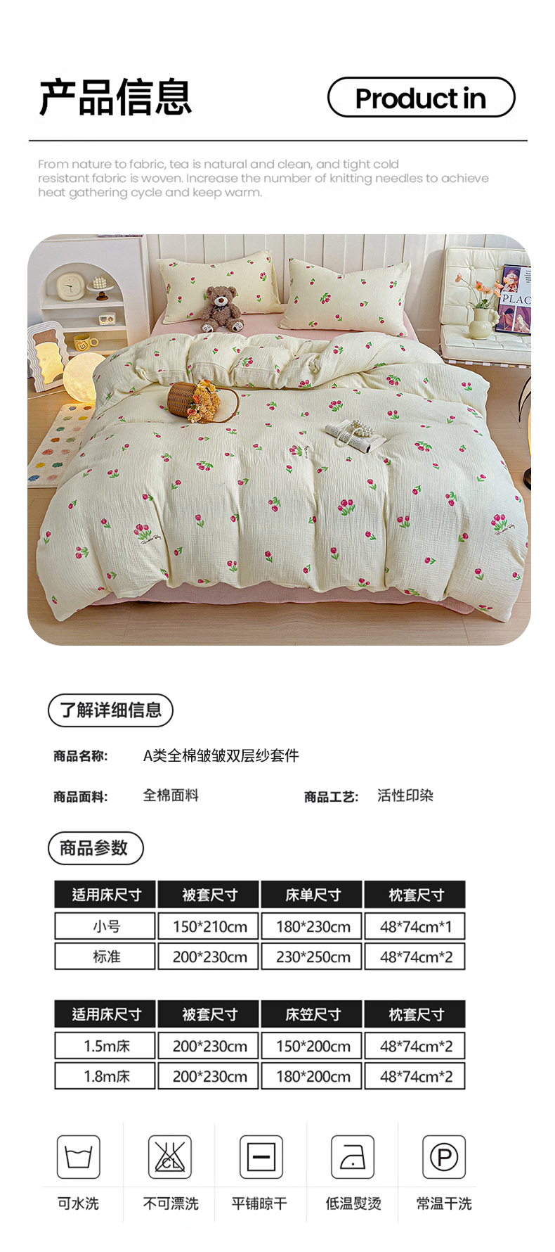 商品名称:珺柔家纺 2024新款全棉皱皱双层纱印花四件套 粉色郁金香