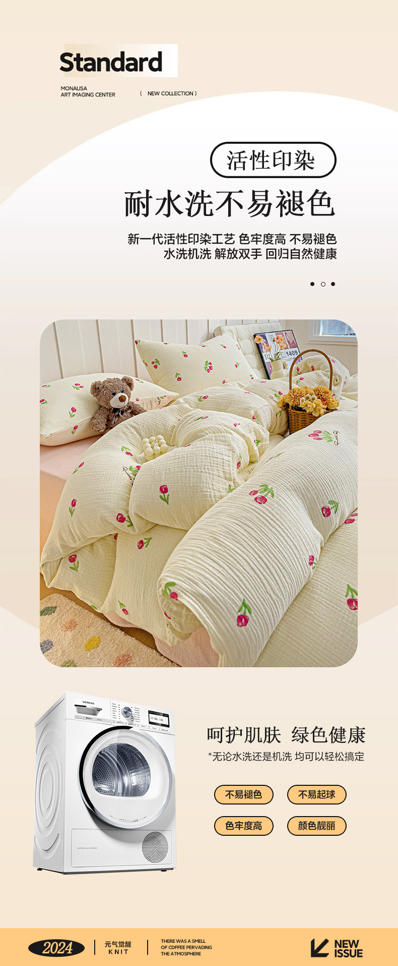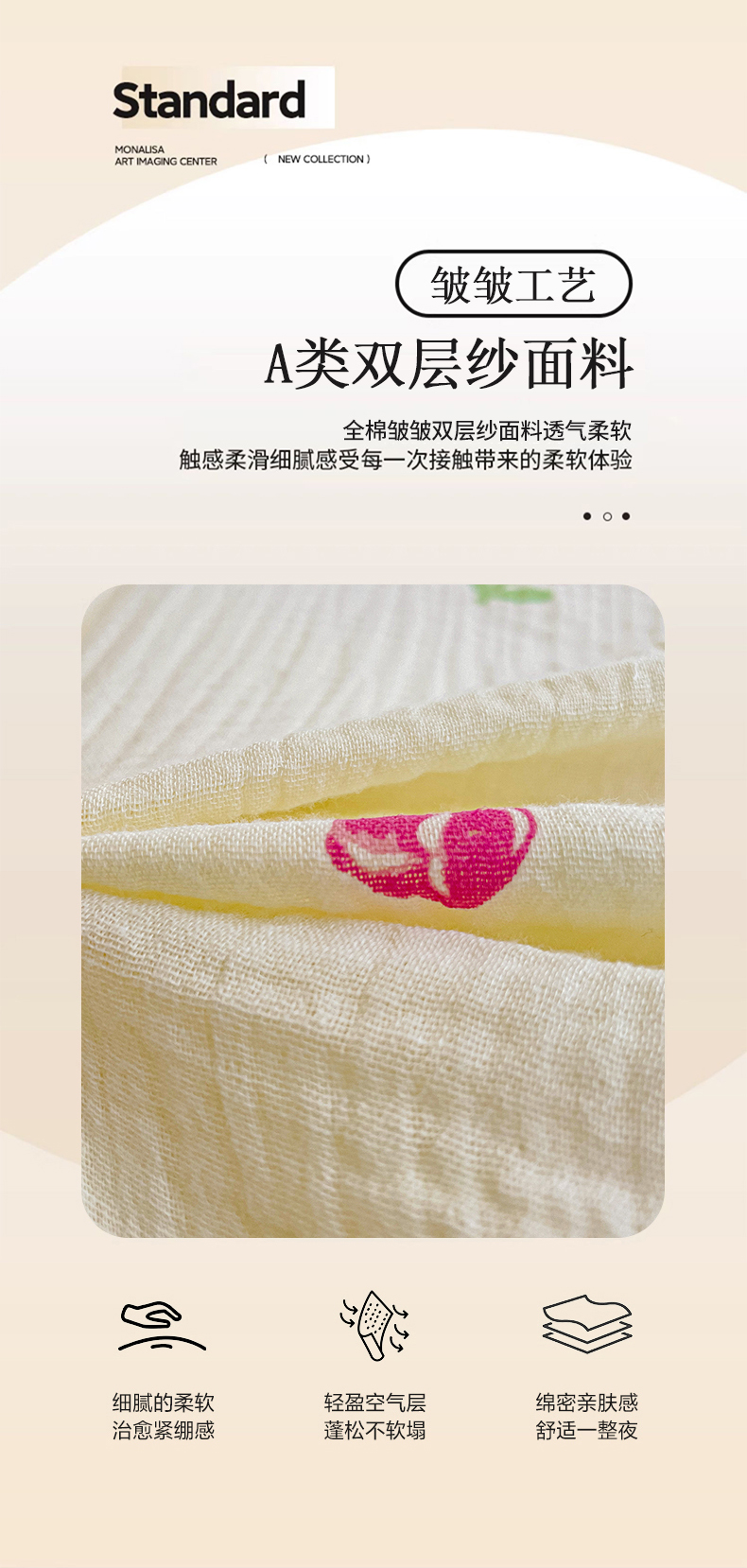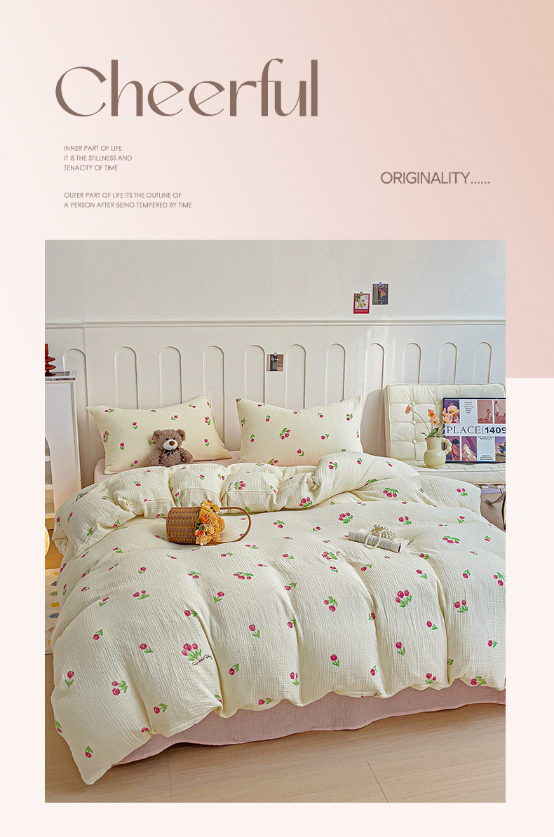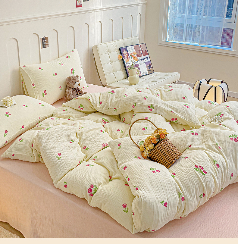 商品名称:珺柔家纺 2024新款全棉皱皱双层纱印花四件套 粉色郁金香